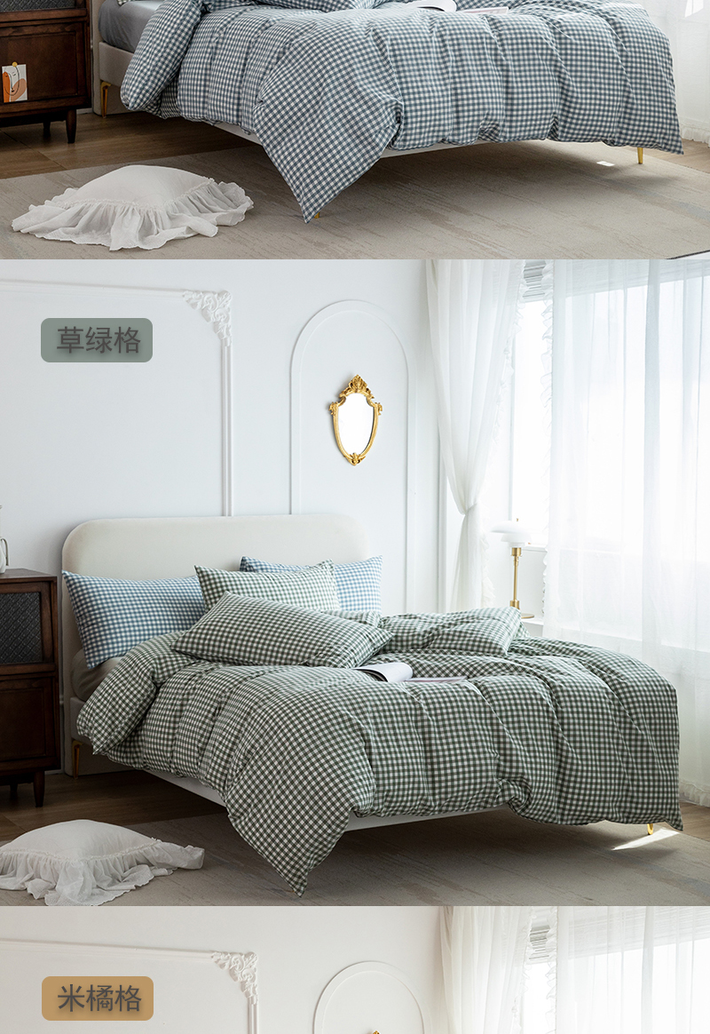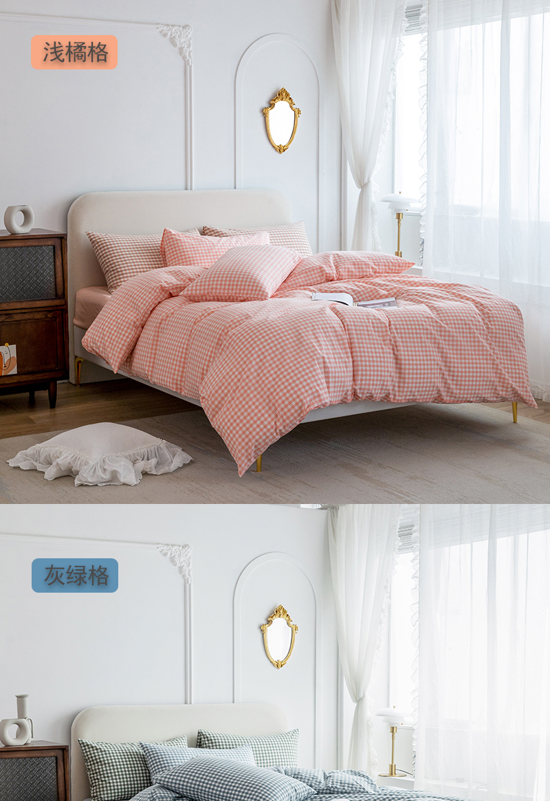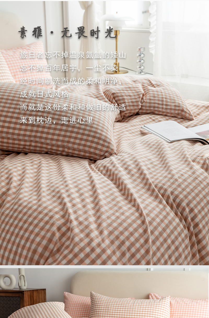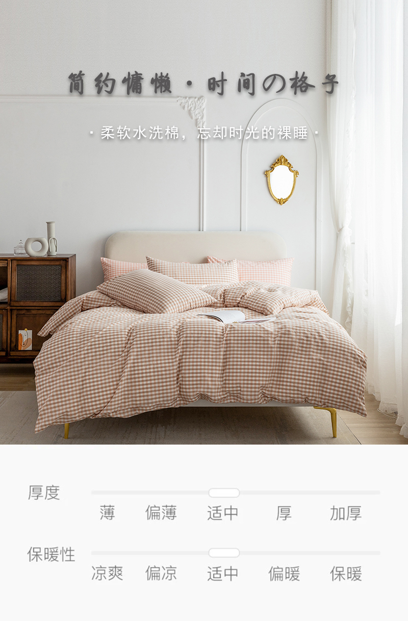【品名】【恩宜贝】方格系列水洗棉四件套