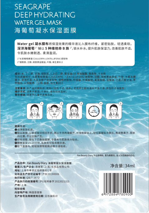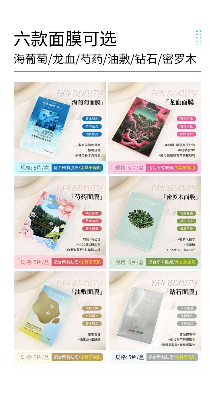 fanbeauty面膜海葡萄面膜补水保湿龙血舒缓芍药大桔面膜fan beauty