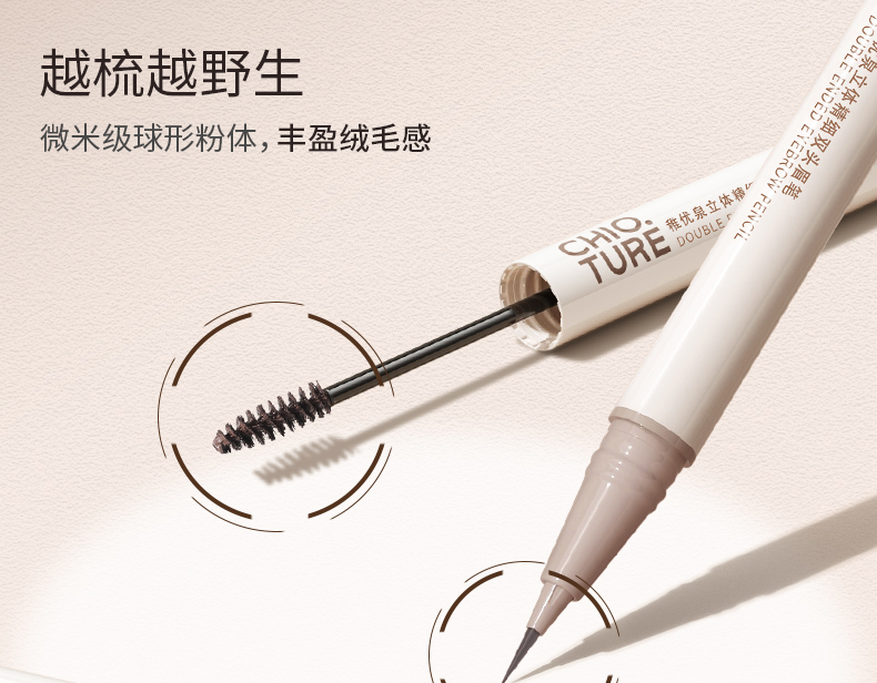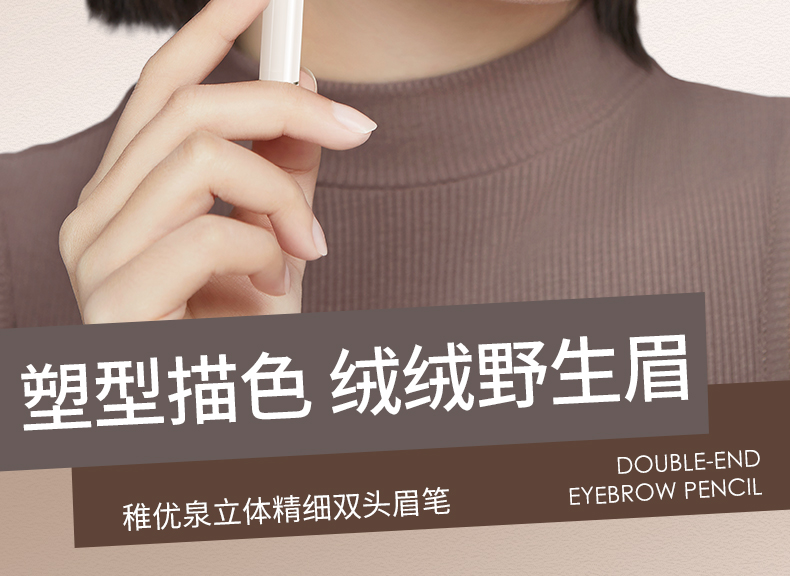 稚优泉双头水眉笔染眉膏防水防汗持久不易脱色极细眉笔自然野生眉