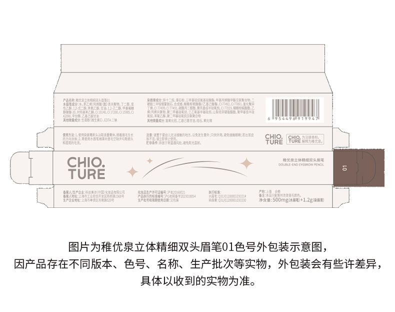 稚优泉(CHIOTURE)双头唇线笔刷裸色口红笔自然丰唇下至笔卧蚕