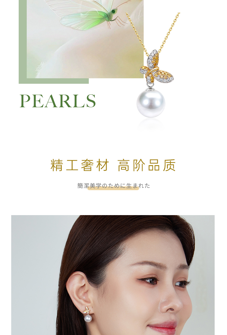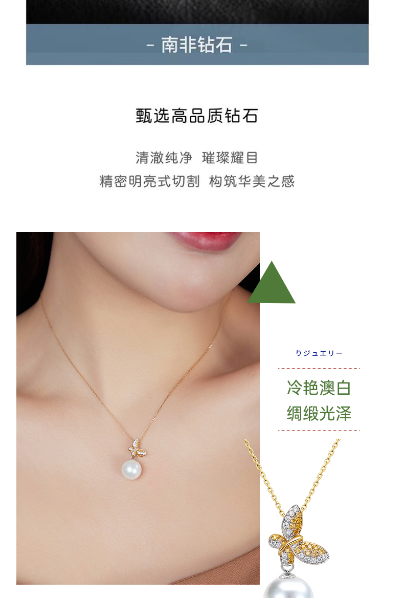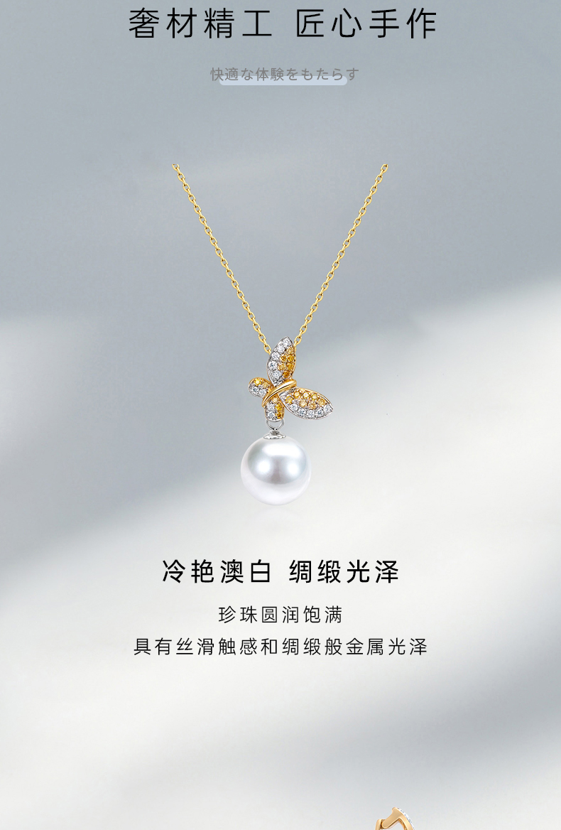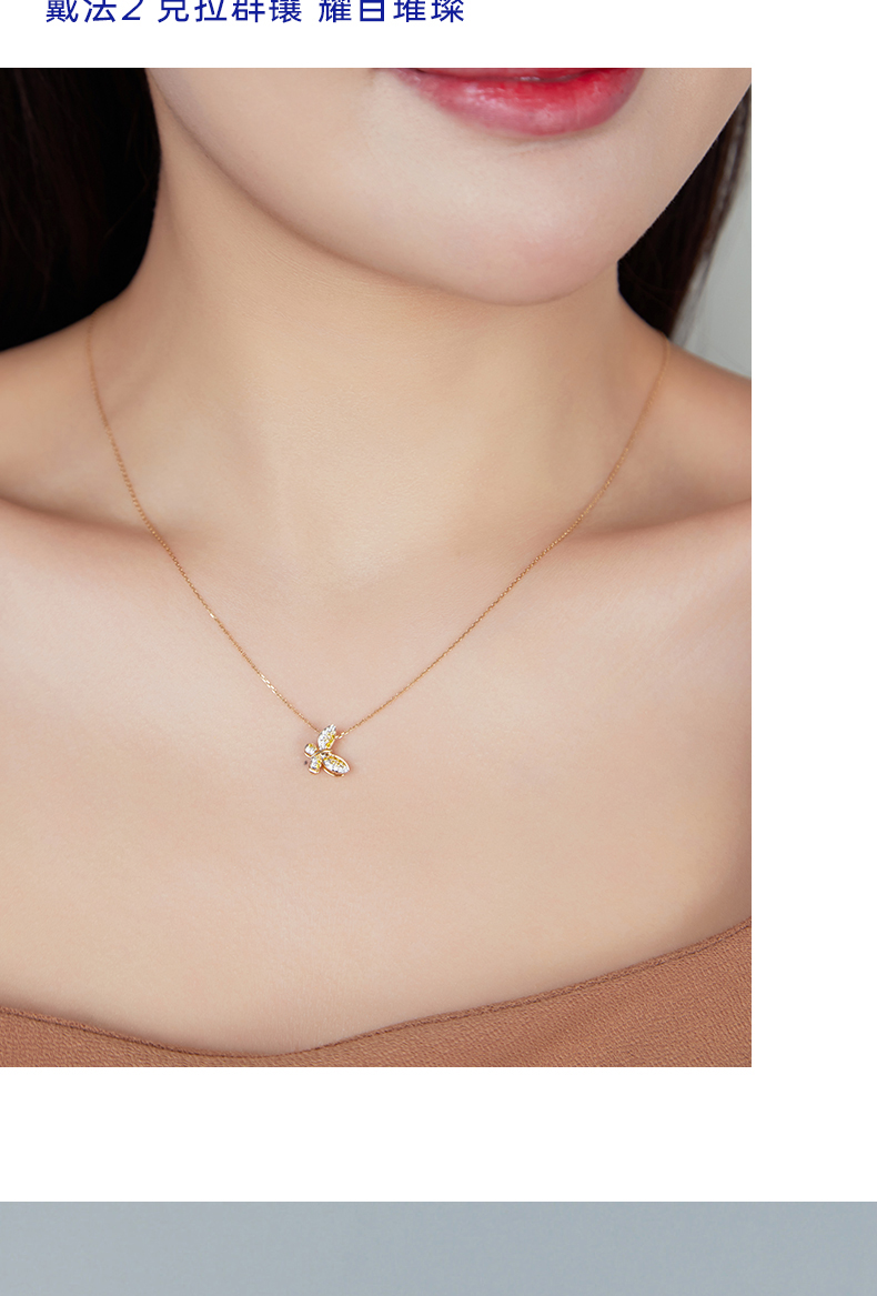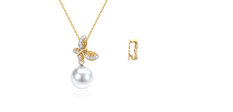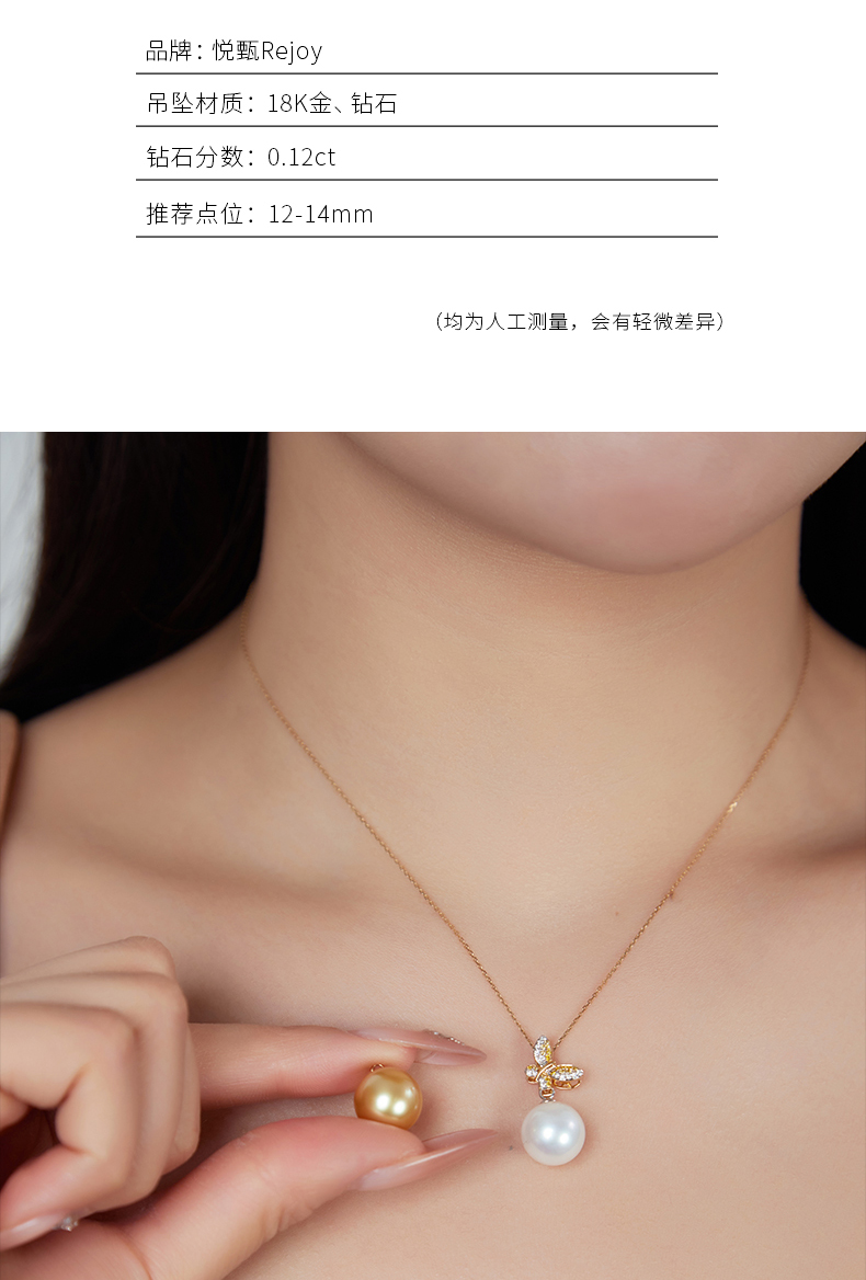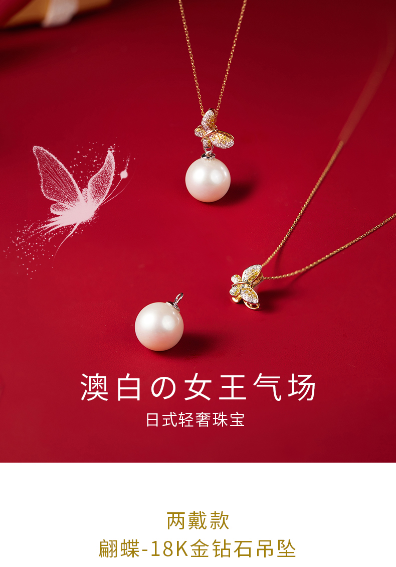 【天猫同款】悦甄 (两戴款 可挂珠)18k金钻石吊坠 翩蝶