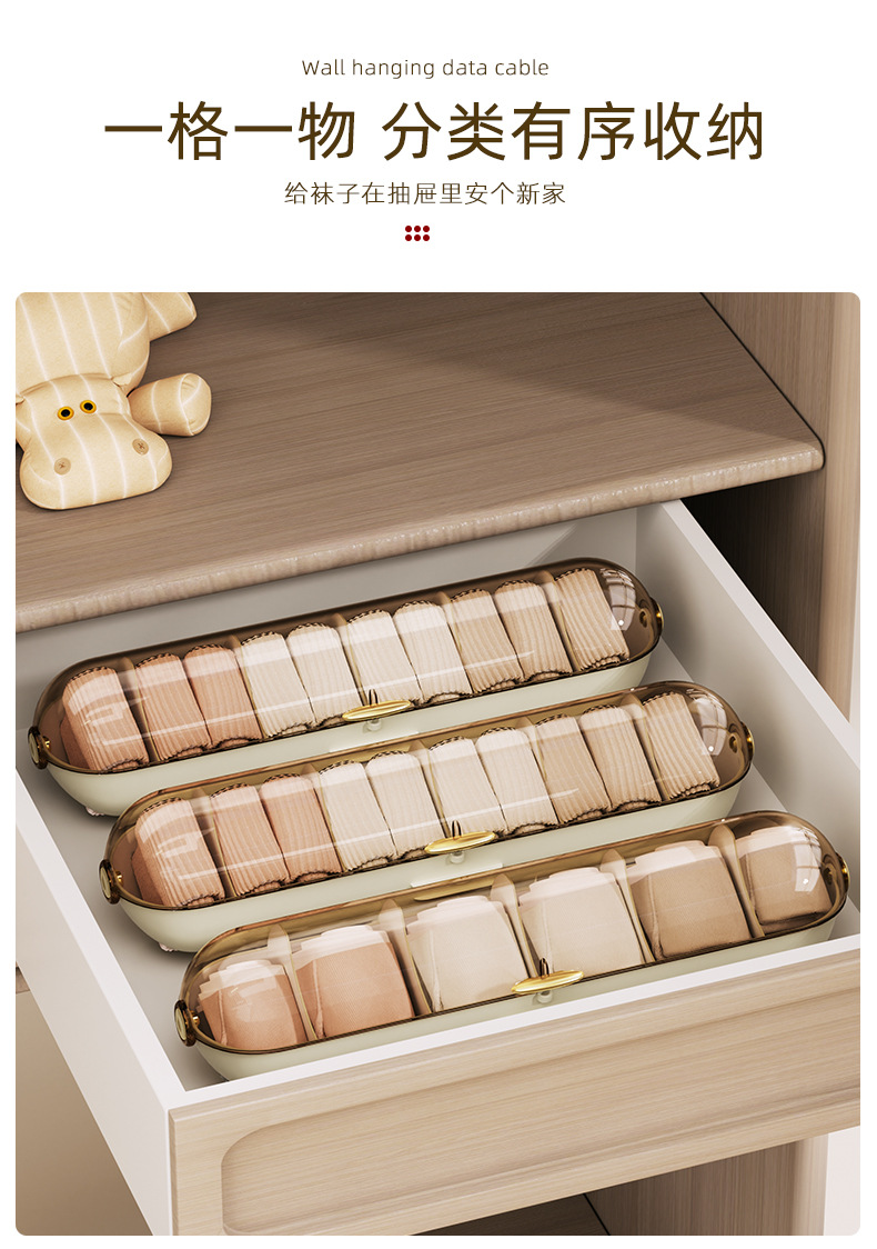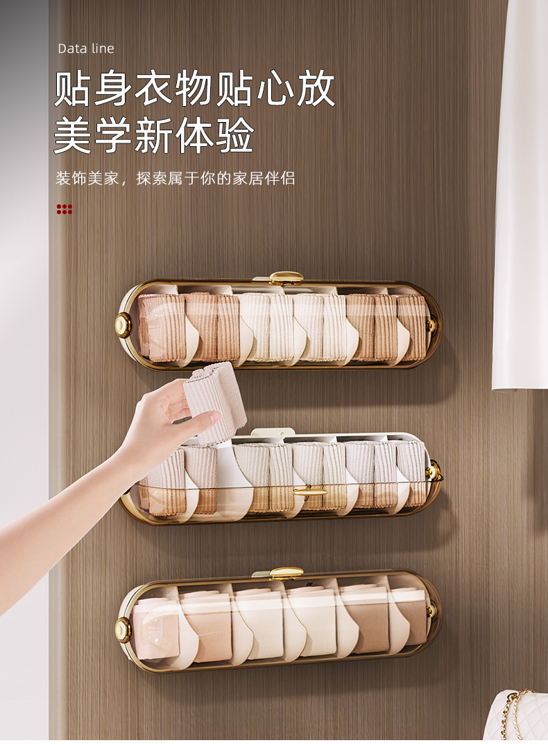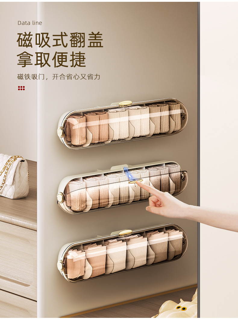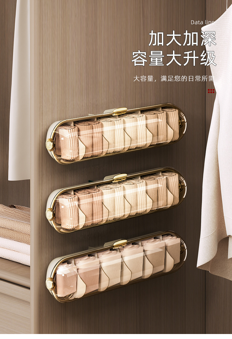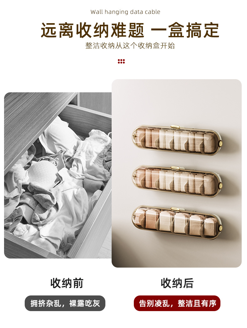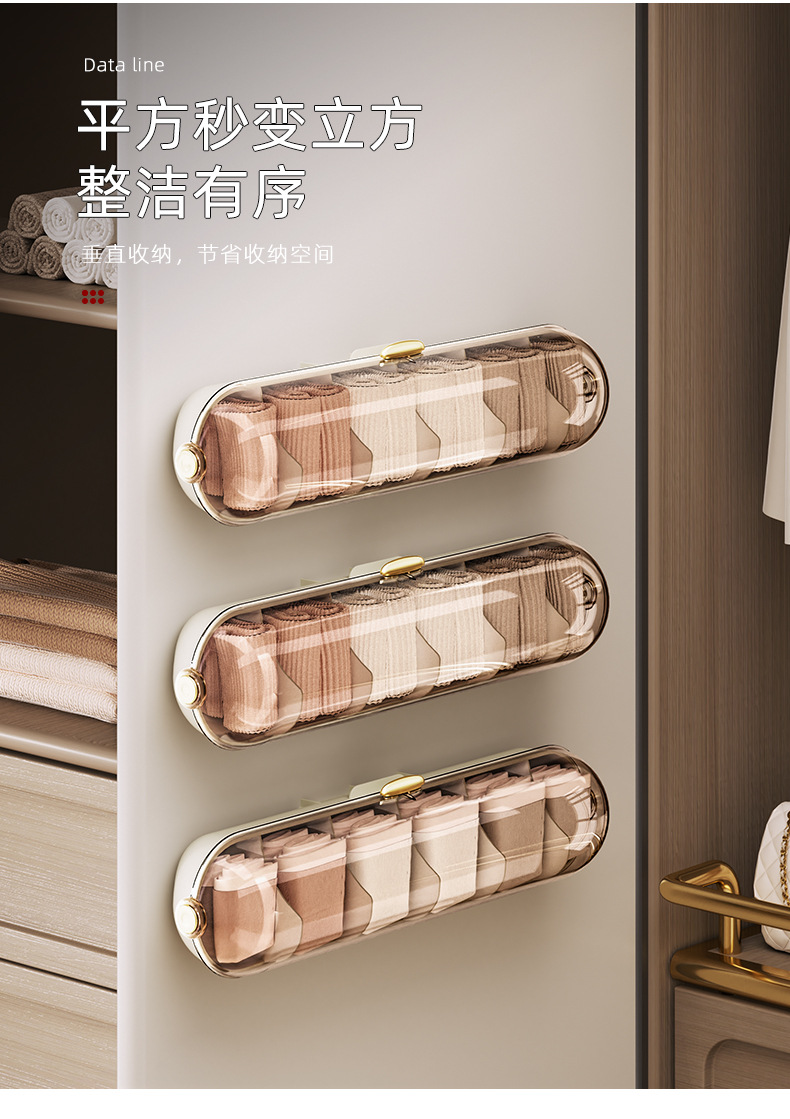 【轻奢防尘内衣收纳整理神器】卧室衣柜壁挂式分格 袜子内裤收纳盒