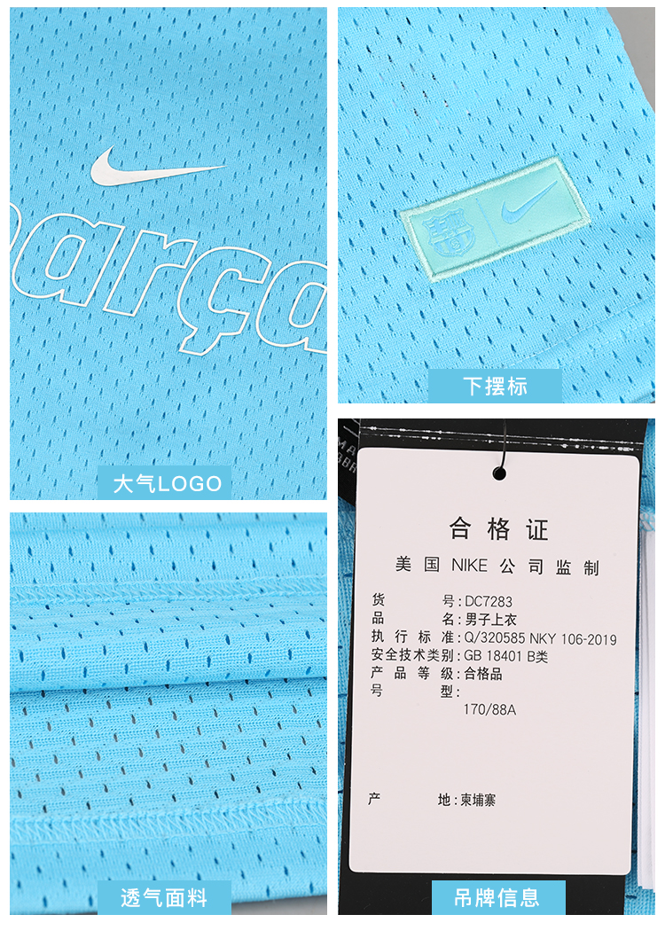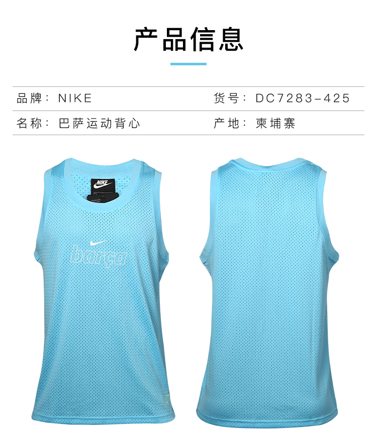 NIKE/耐克巴萨足球训练比赛T恤运动休闲背心男DC7283-425
