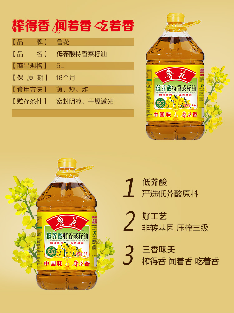 鲁花 压榨特香菜籽油 5L 商品缩略图0 鲁花 压榨特香菜籽油 5L 商品缩略图1
