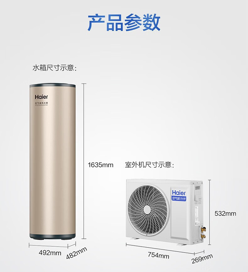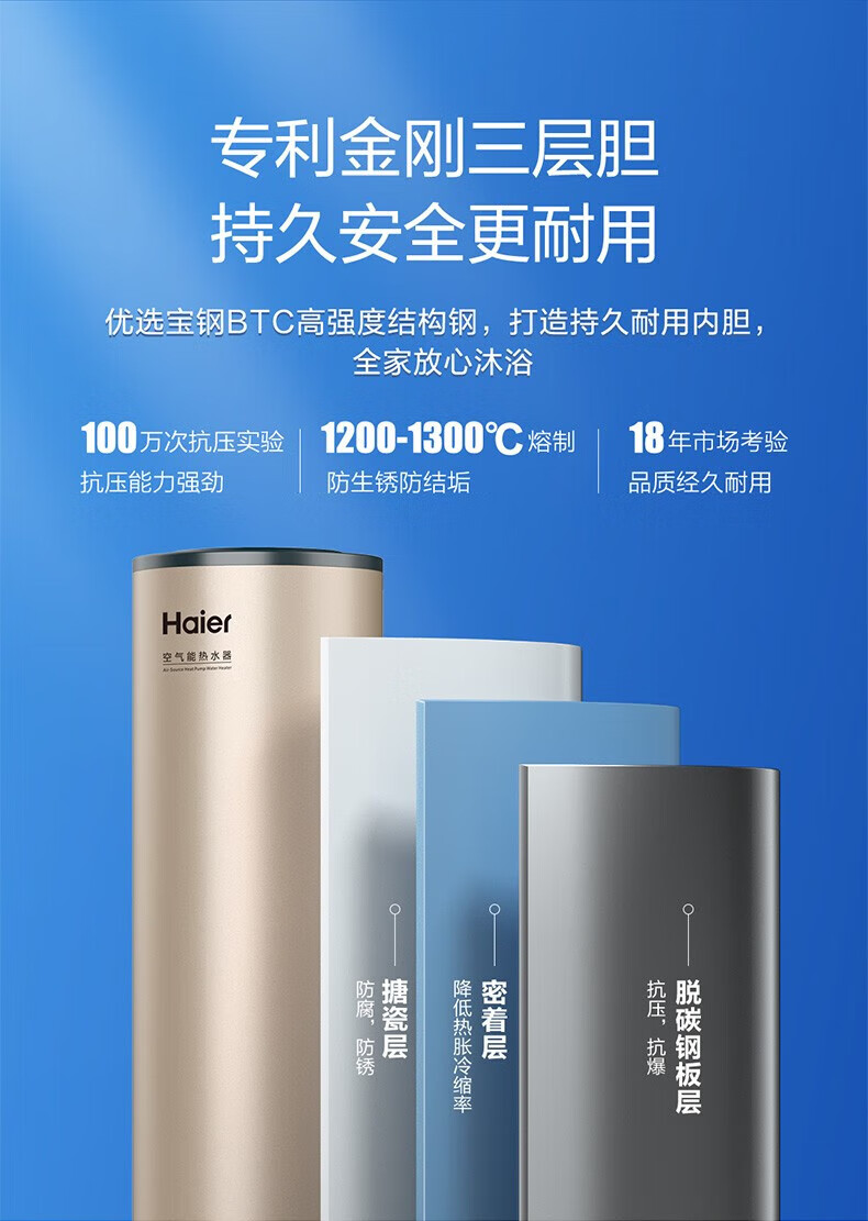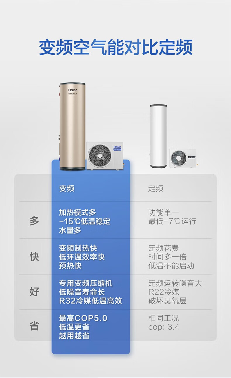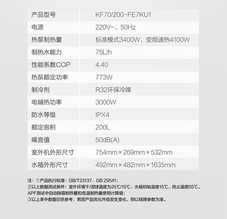 海尔(Haier)空气能热水器200升一级能效电辅升级R32冷媒 KF70/200-FE7KU1