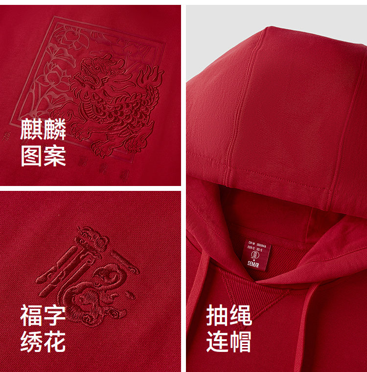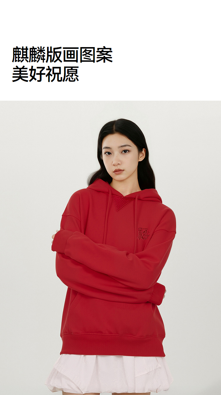 森马张仁华非遗联名卫衣女中长款春季2025新款绣花衣服