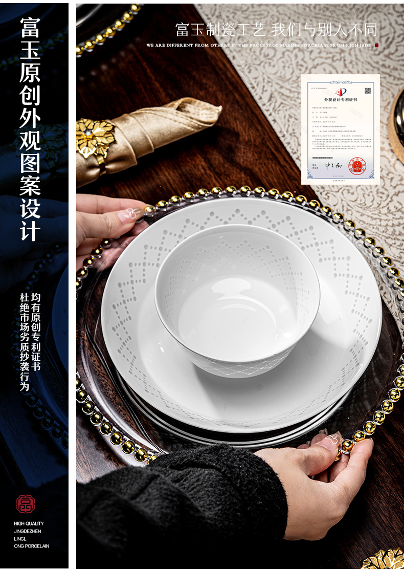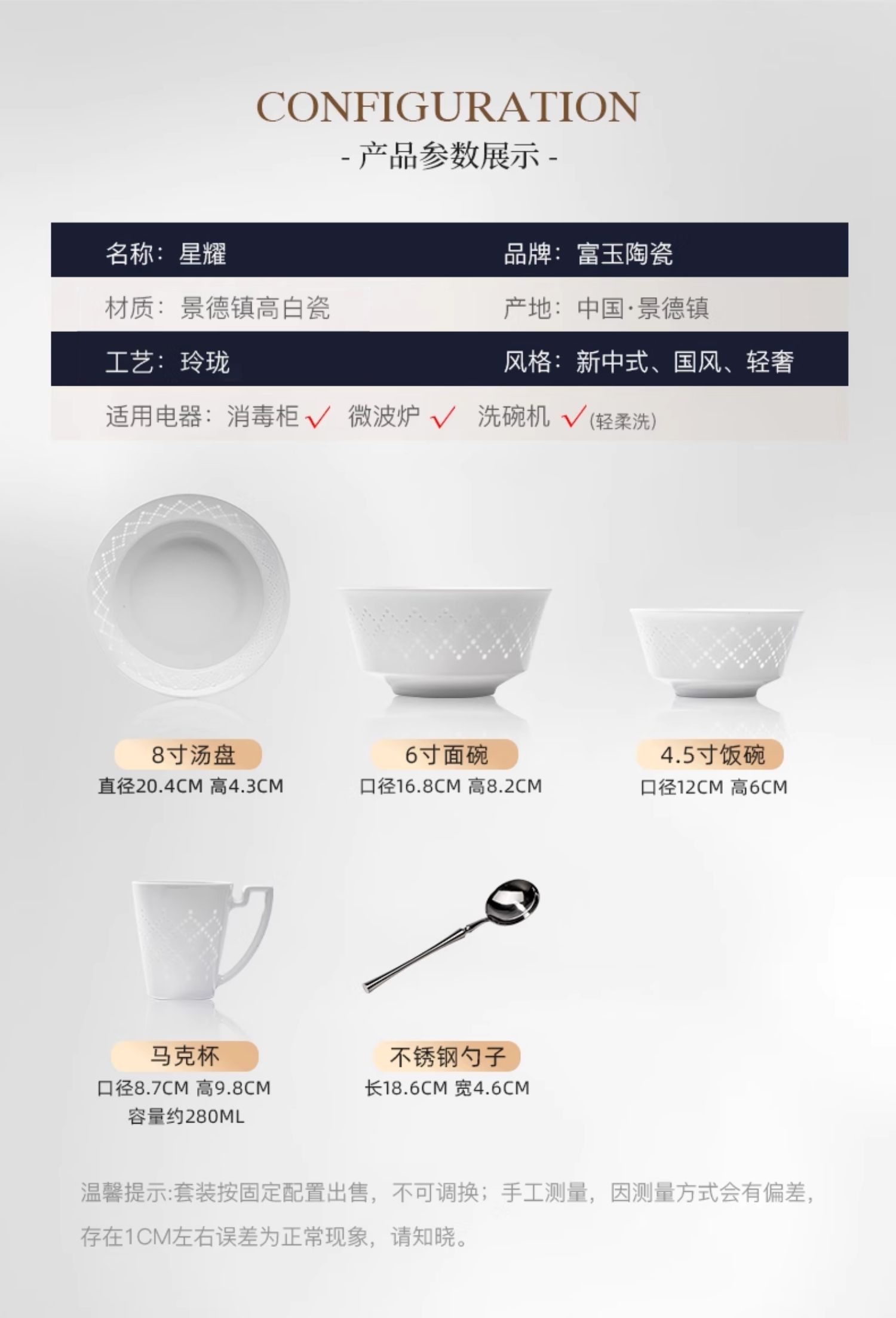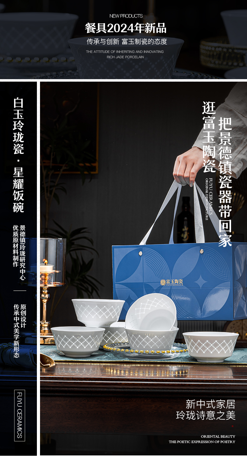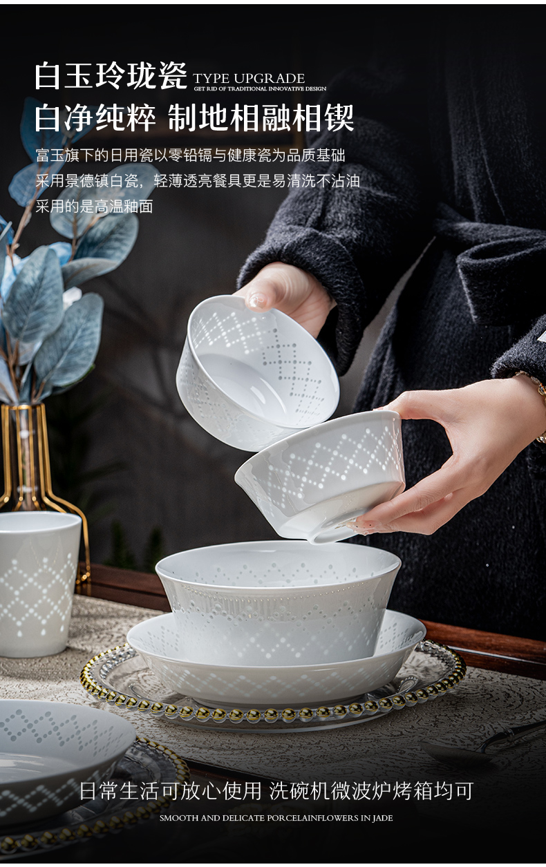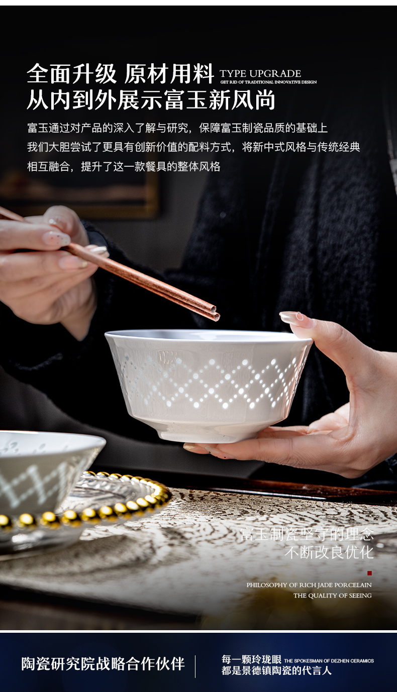 富玉 | 陶瓷景德镇饭碗家用素玲珑星耀餐具