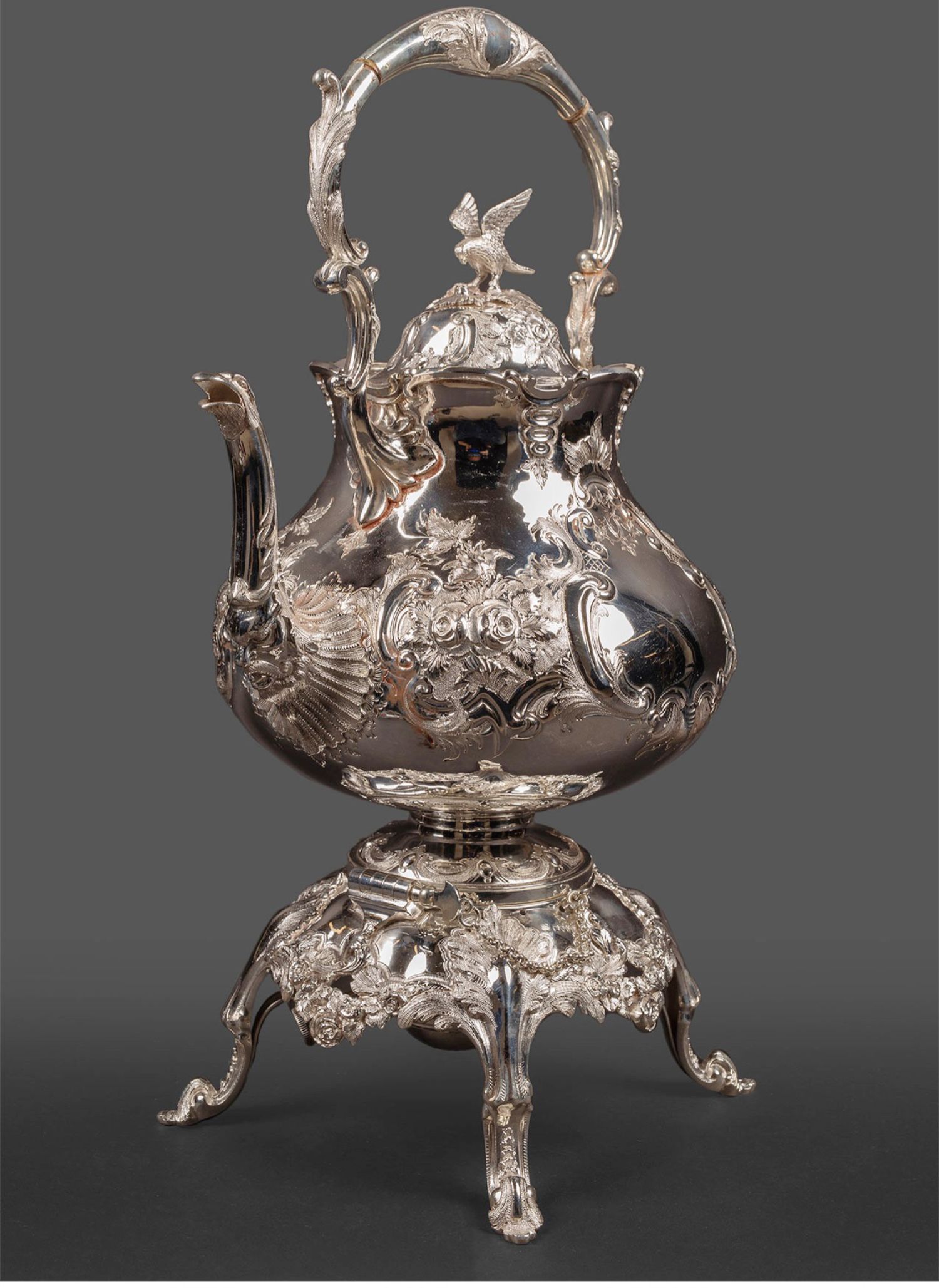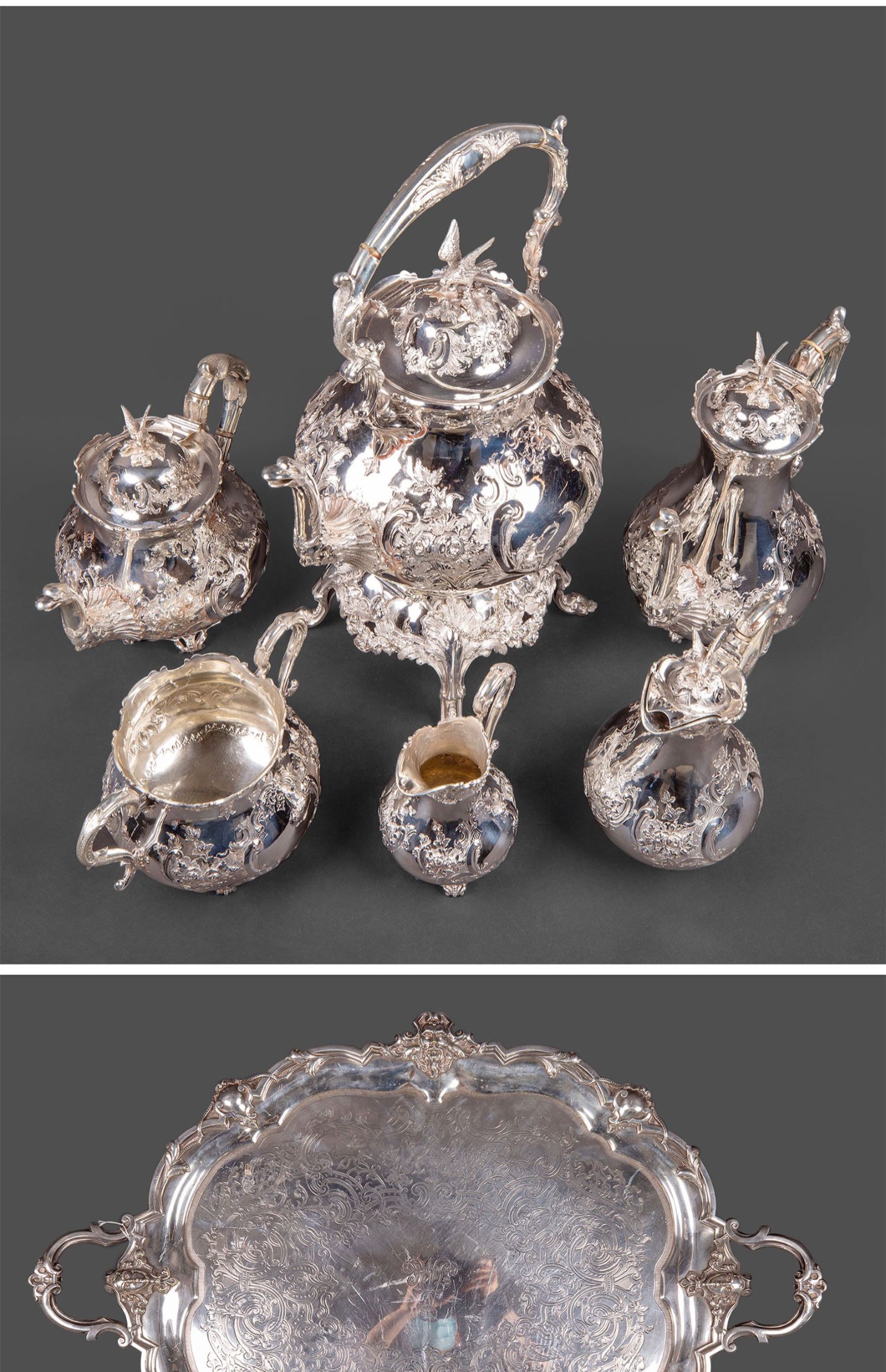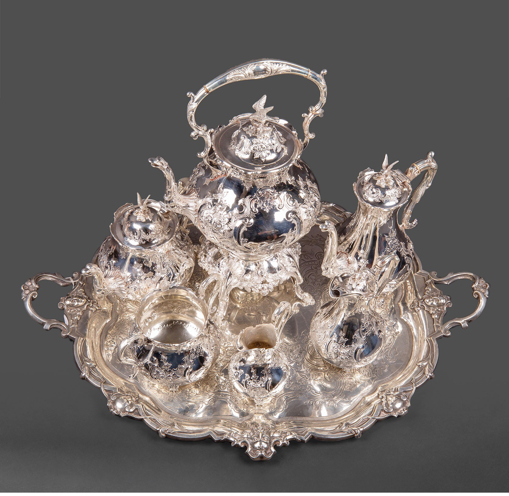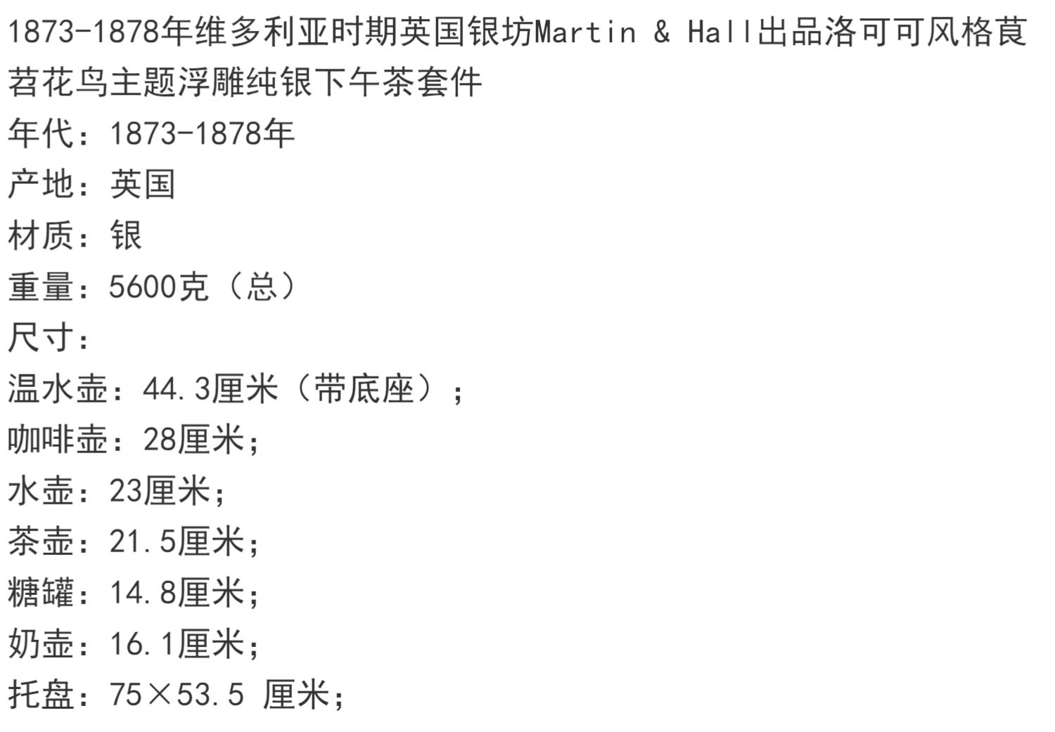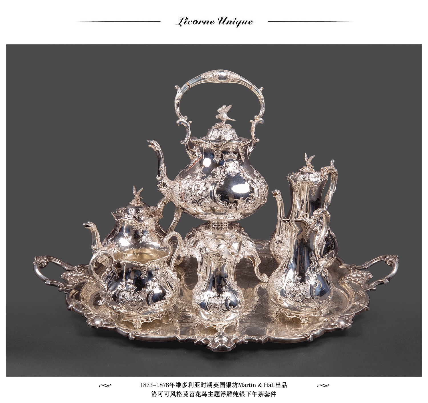 独角鹿西洋古董英国Martin&Hall洛可可风茛苕纯银茶具下午茶套装