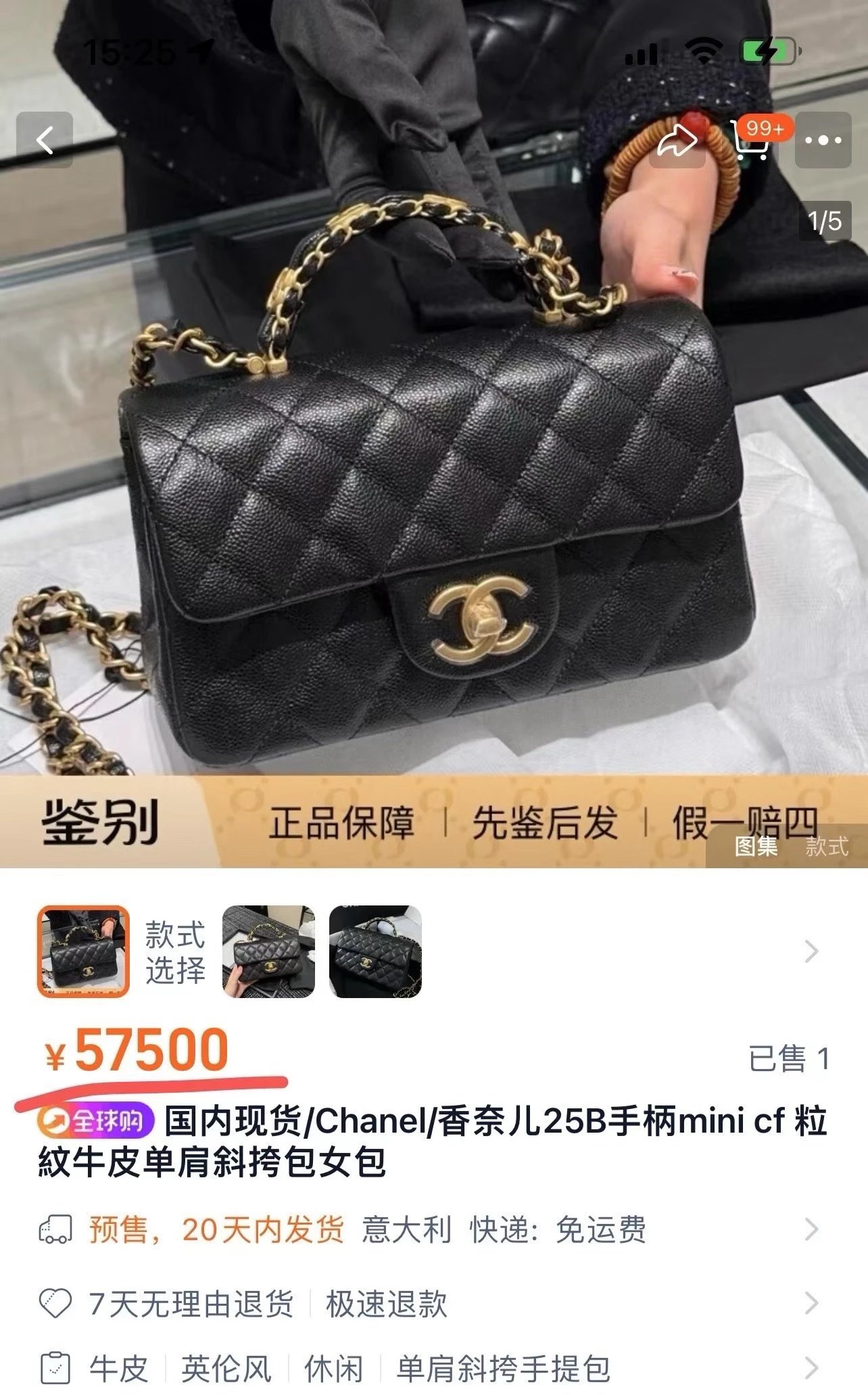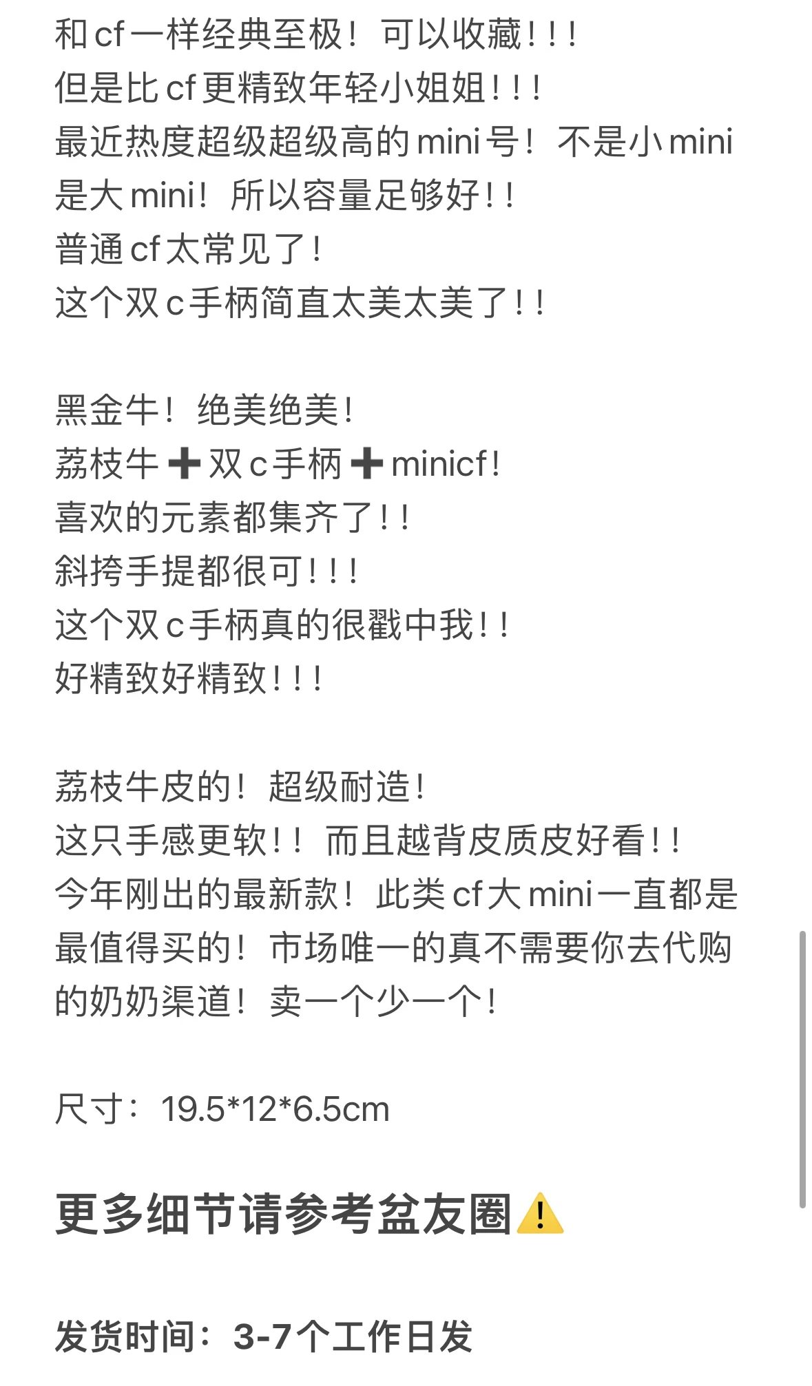 年度重磅 25b手柄minicf 意大利进口元皮 手提斜挎包