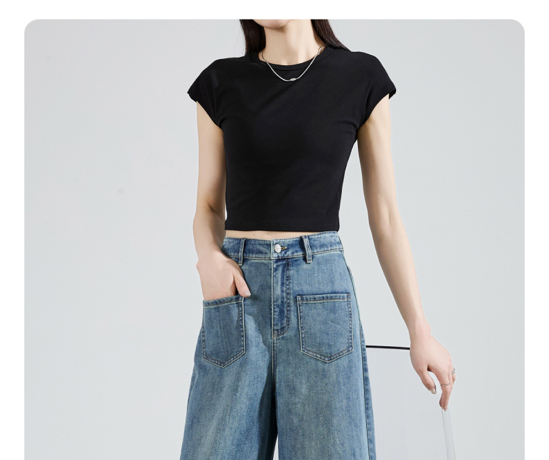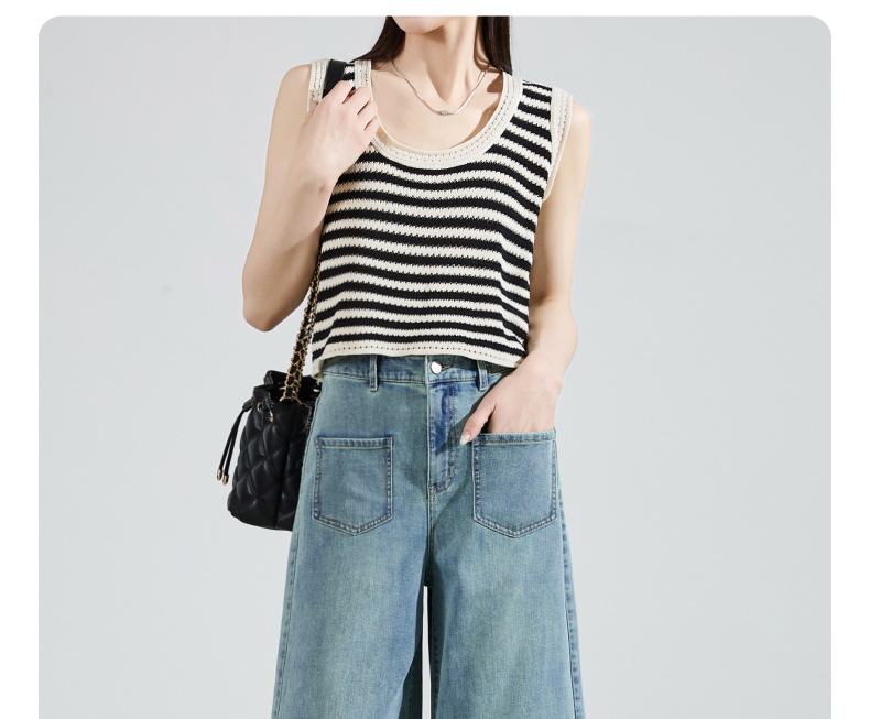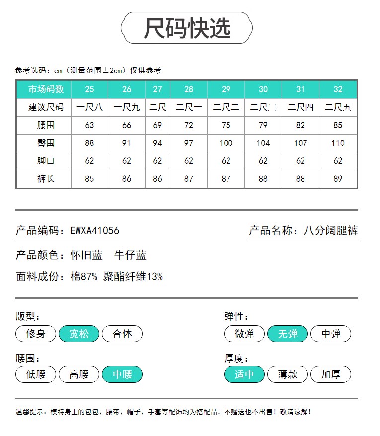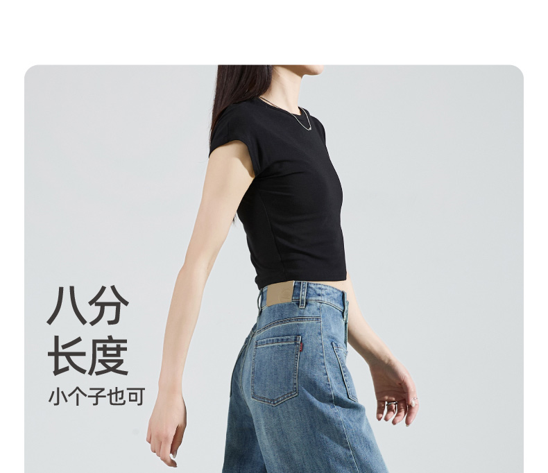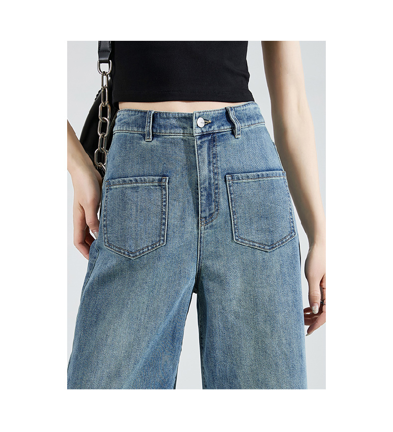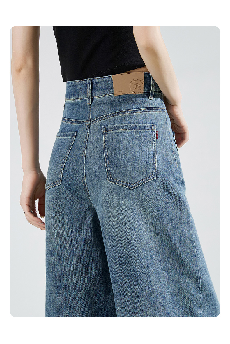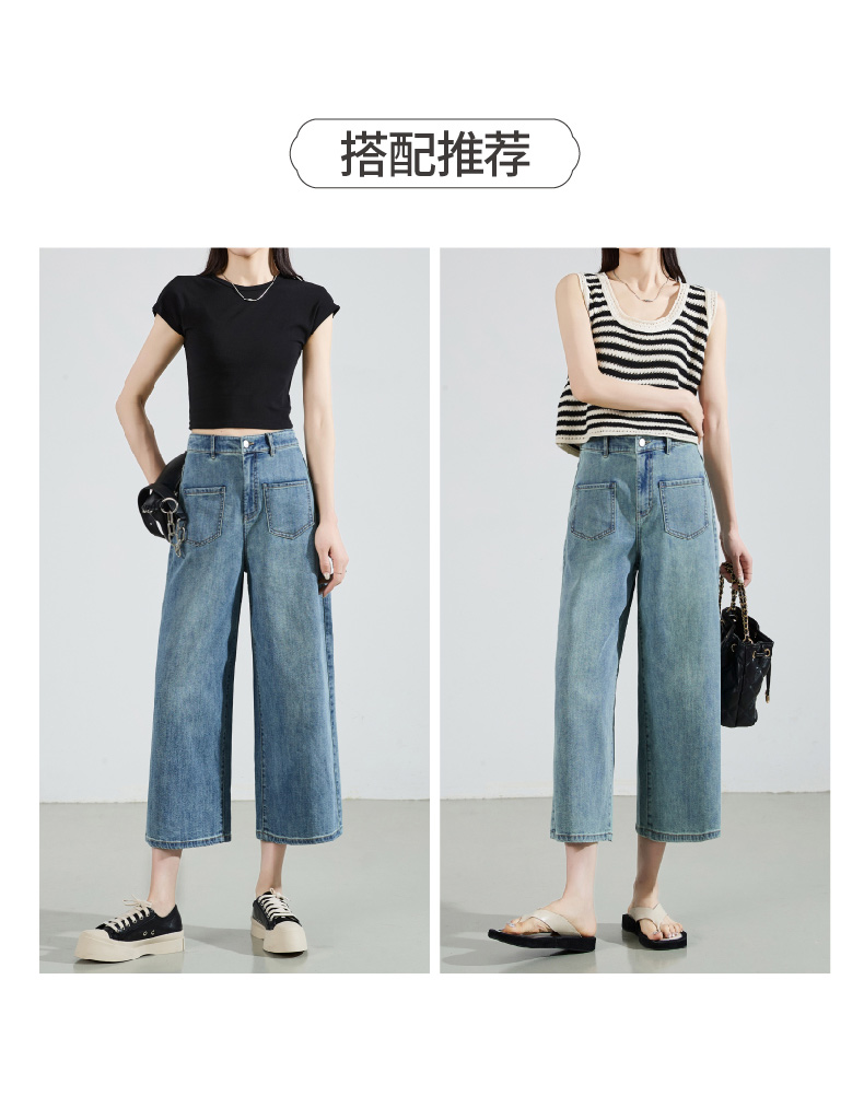 【八分牛仔阔腿裤】逸阳夏款复古宽松显瘦小个子裤子1056