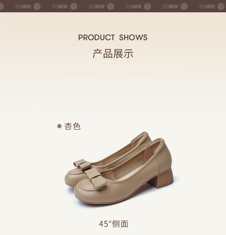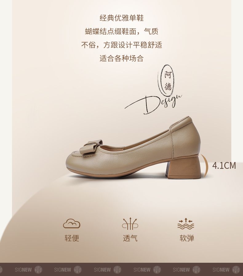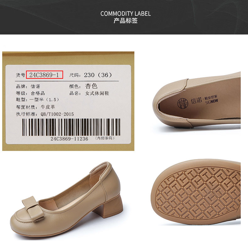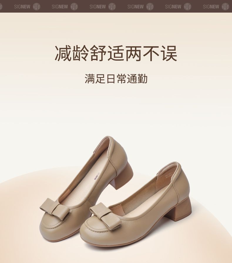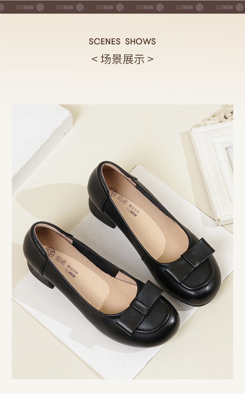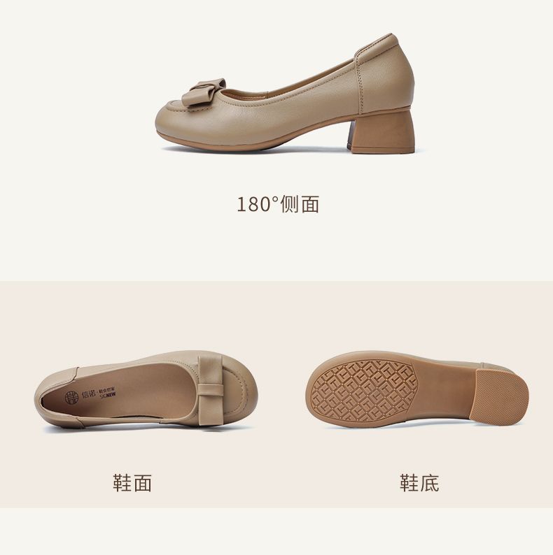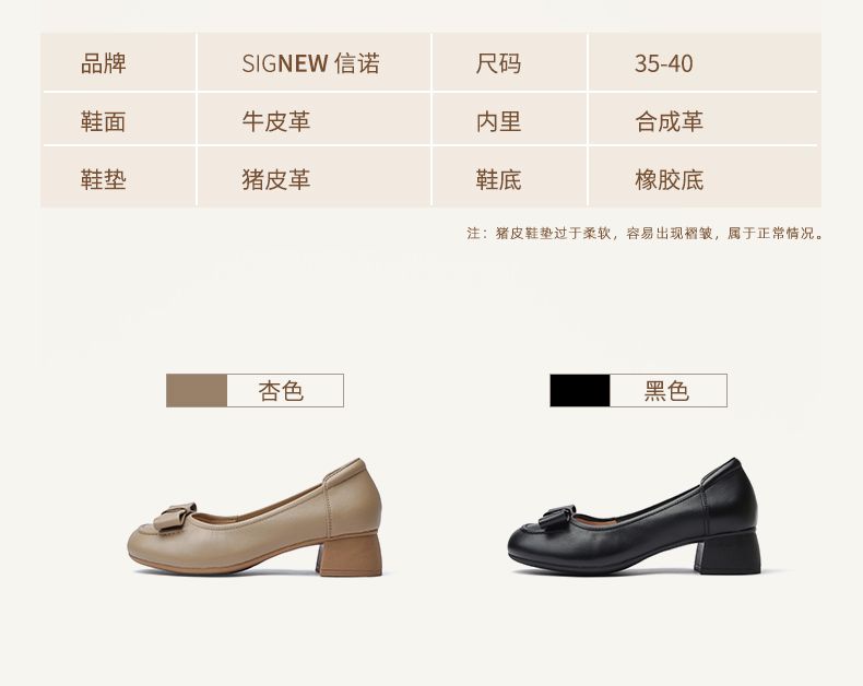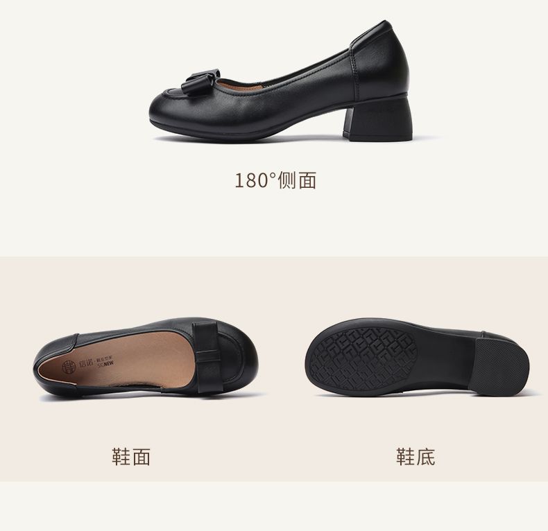 信诺真皮舒适高跟鞋女单鞋2024新款春季中年大头妈妈鞋中粗跟皮鞋24C3869-1