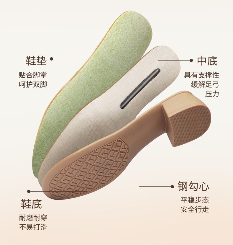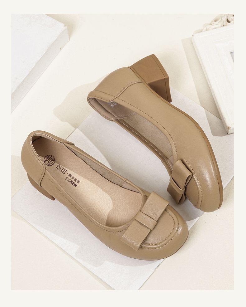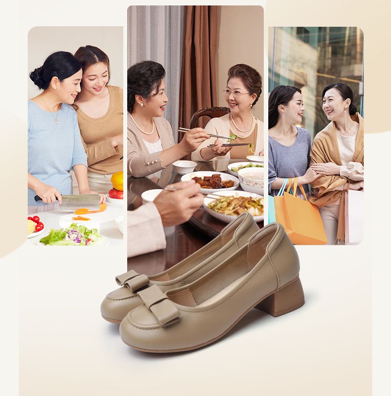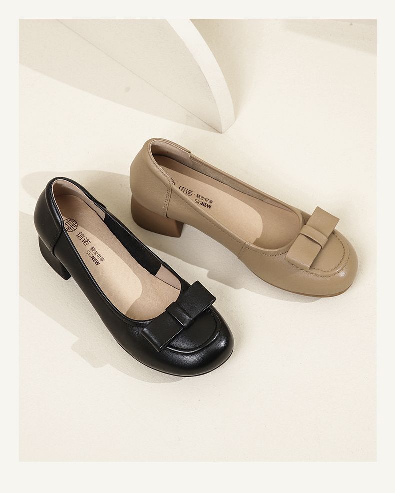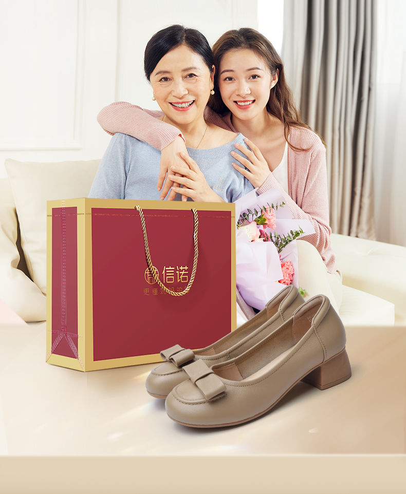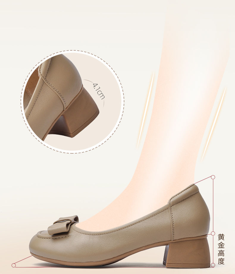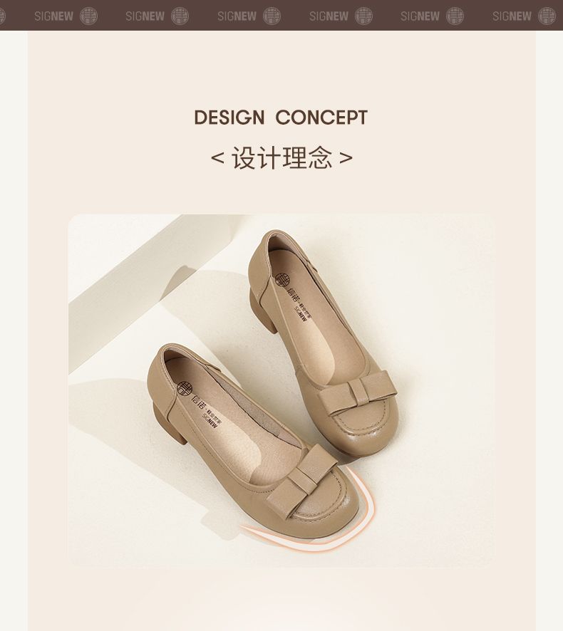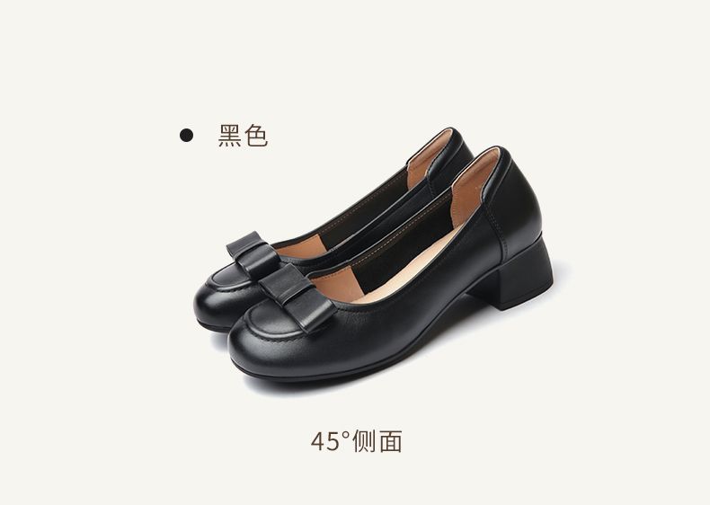 信诺真皮舒适高跟鞋女单鞋2024新款春季中年大头妈妈鞋中粗跟皮鞋24C3869-1
