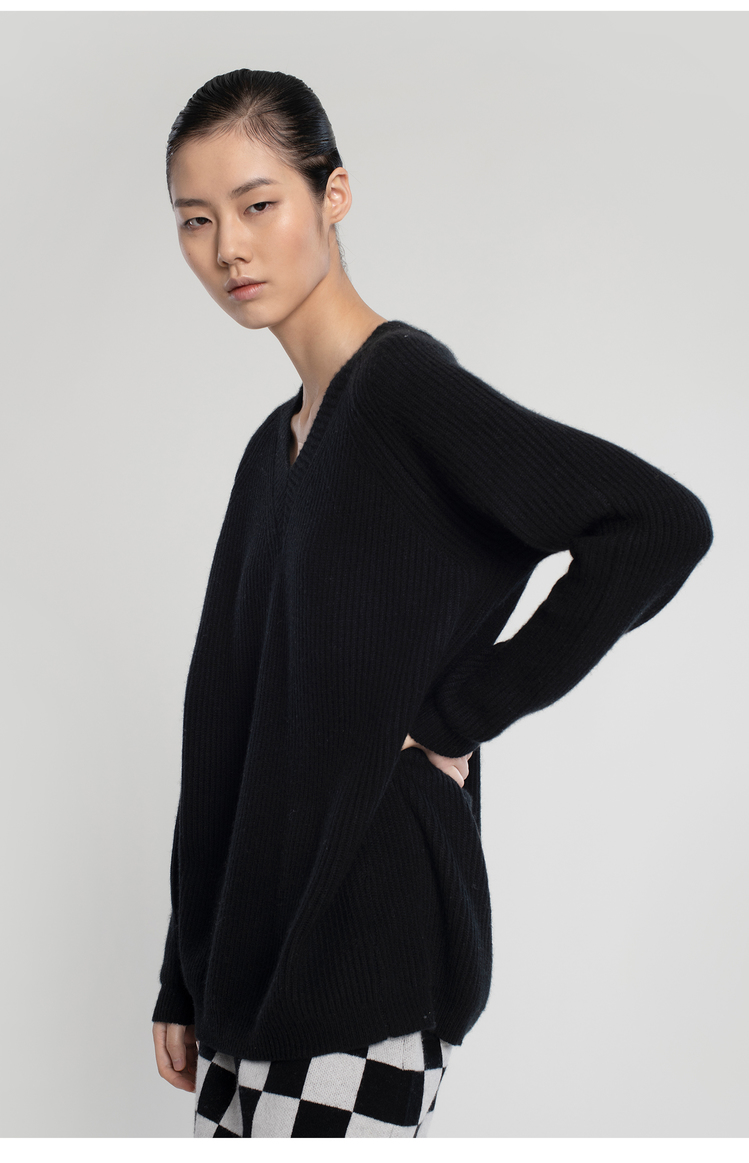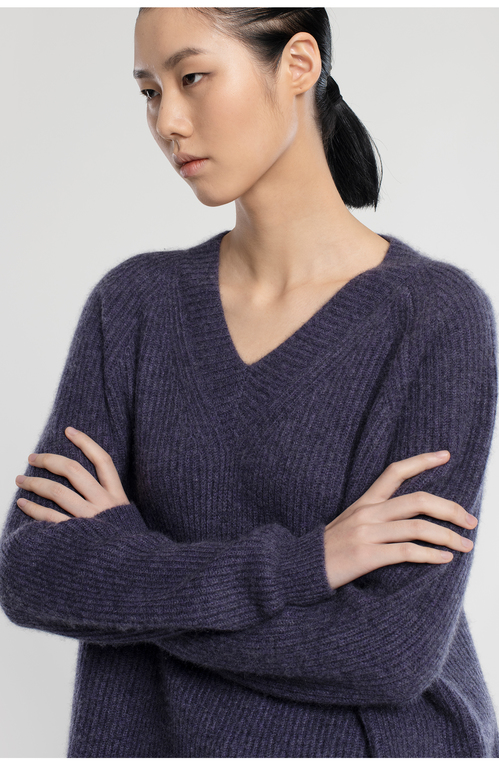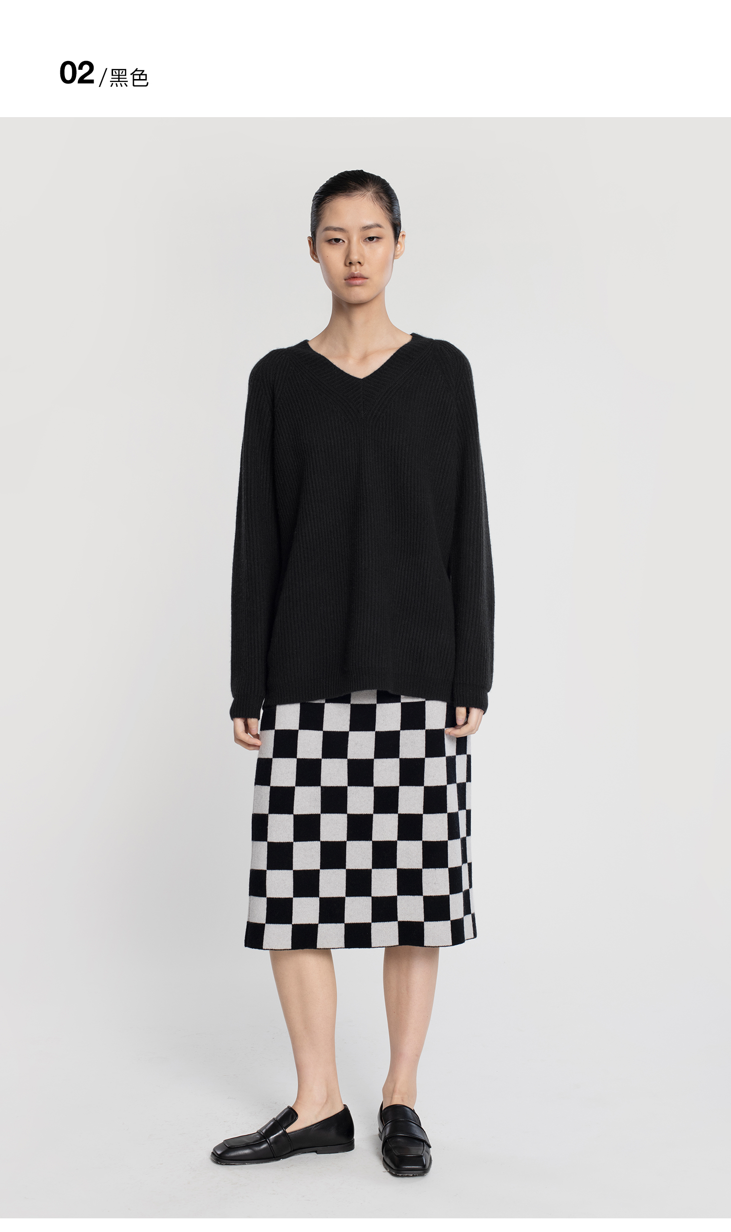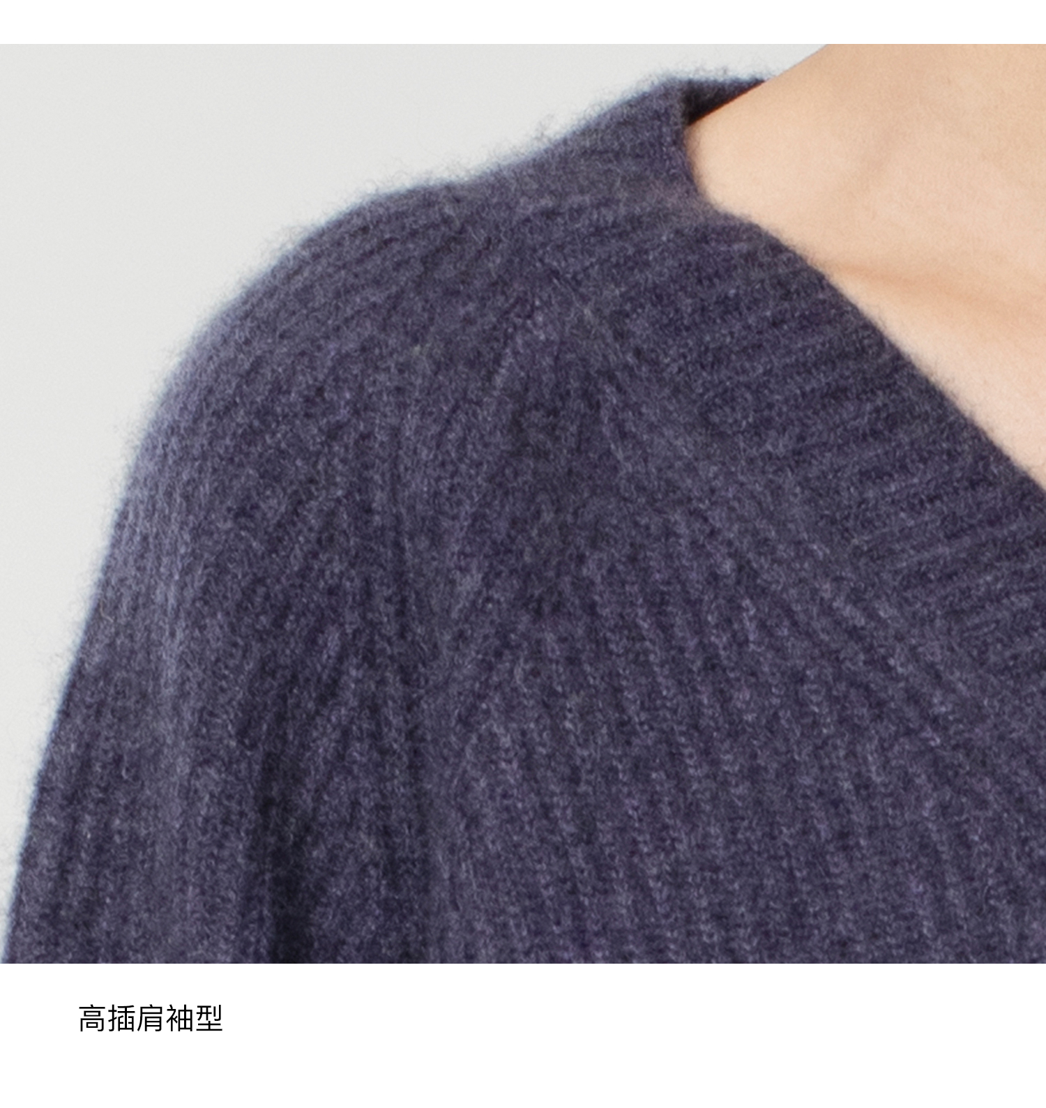 女士2021新款纯山羊绒双股加厚打花V领套头衫