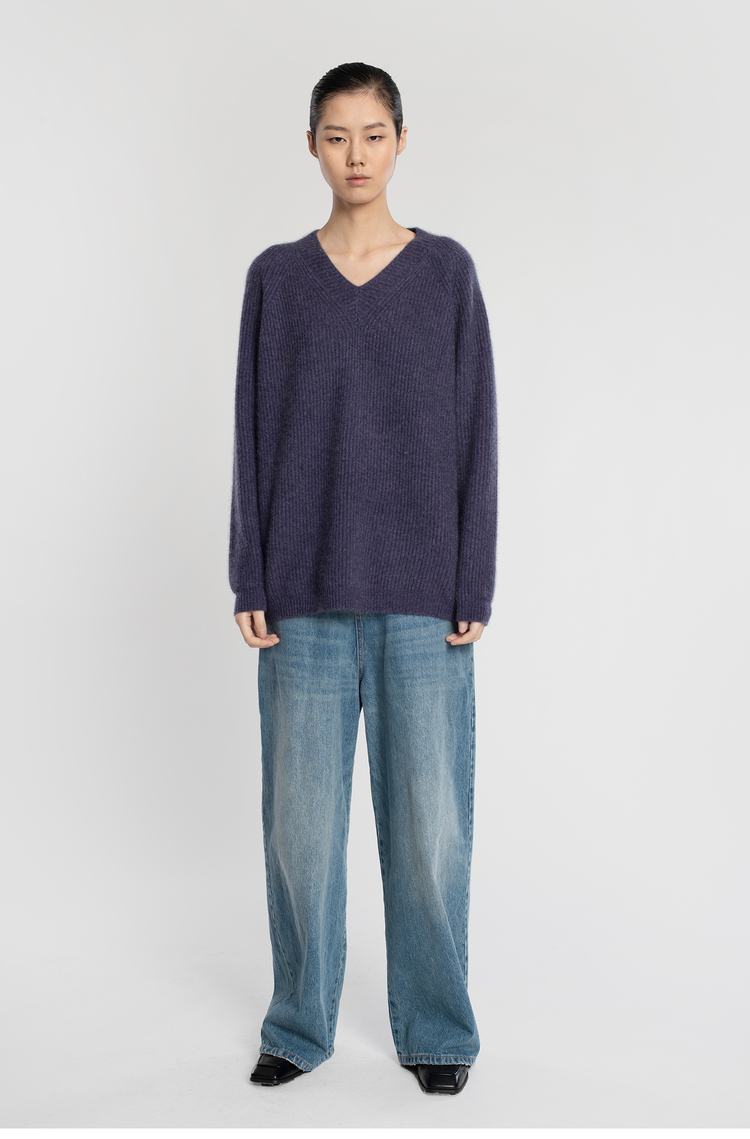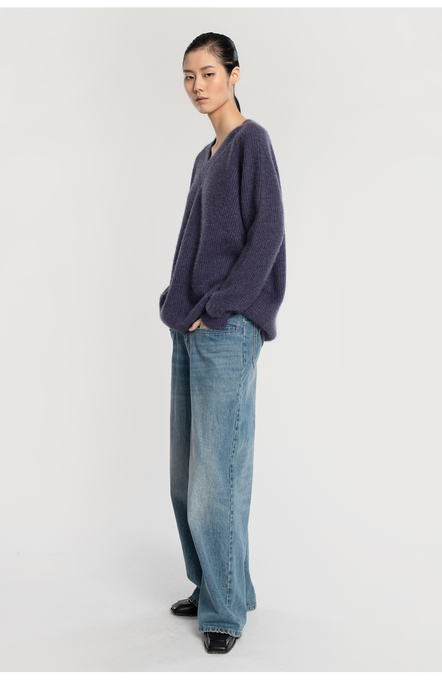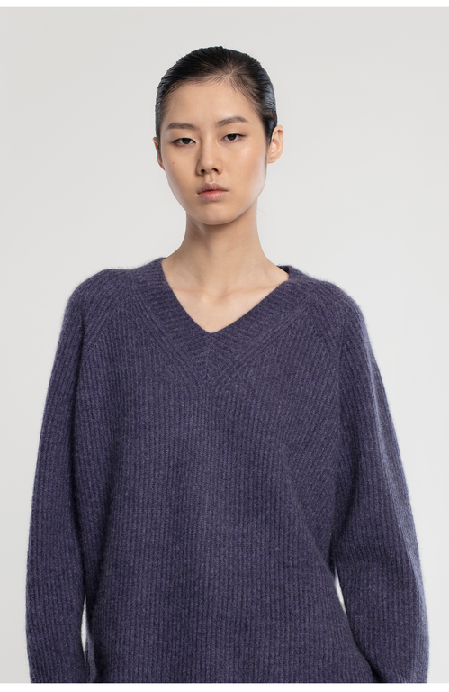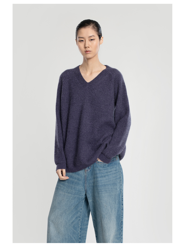 女士2021新款纯山羊绒双股加厚打花V领套头衫