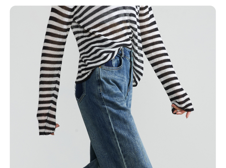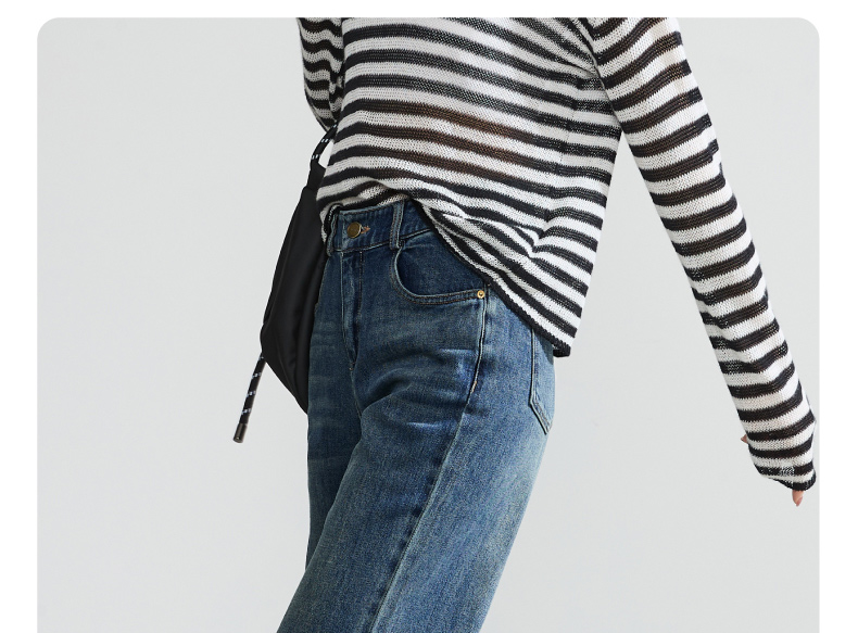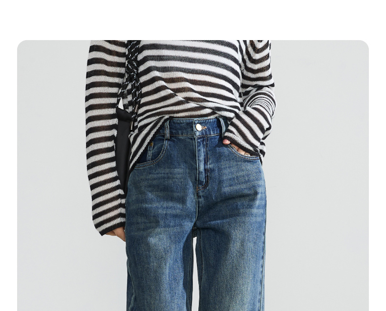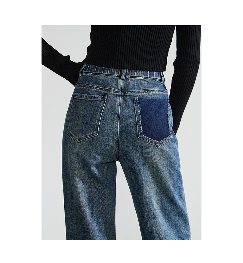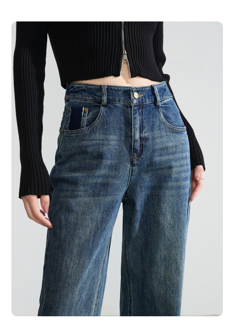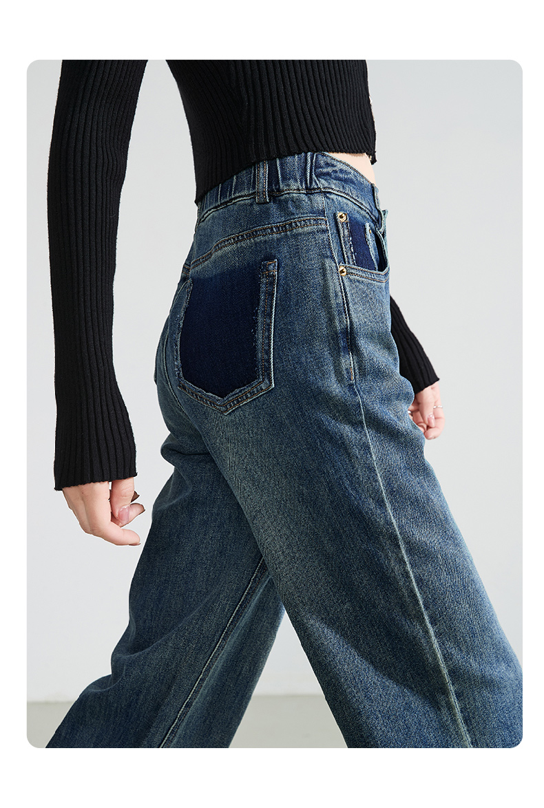 逸阳直筒牛仔裤女2024年秋季新款宽松弹力高腰显瘦阔腿长裤子4245