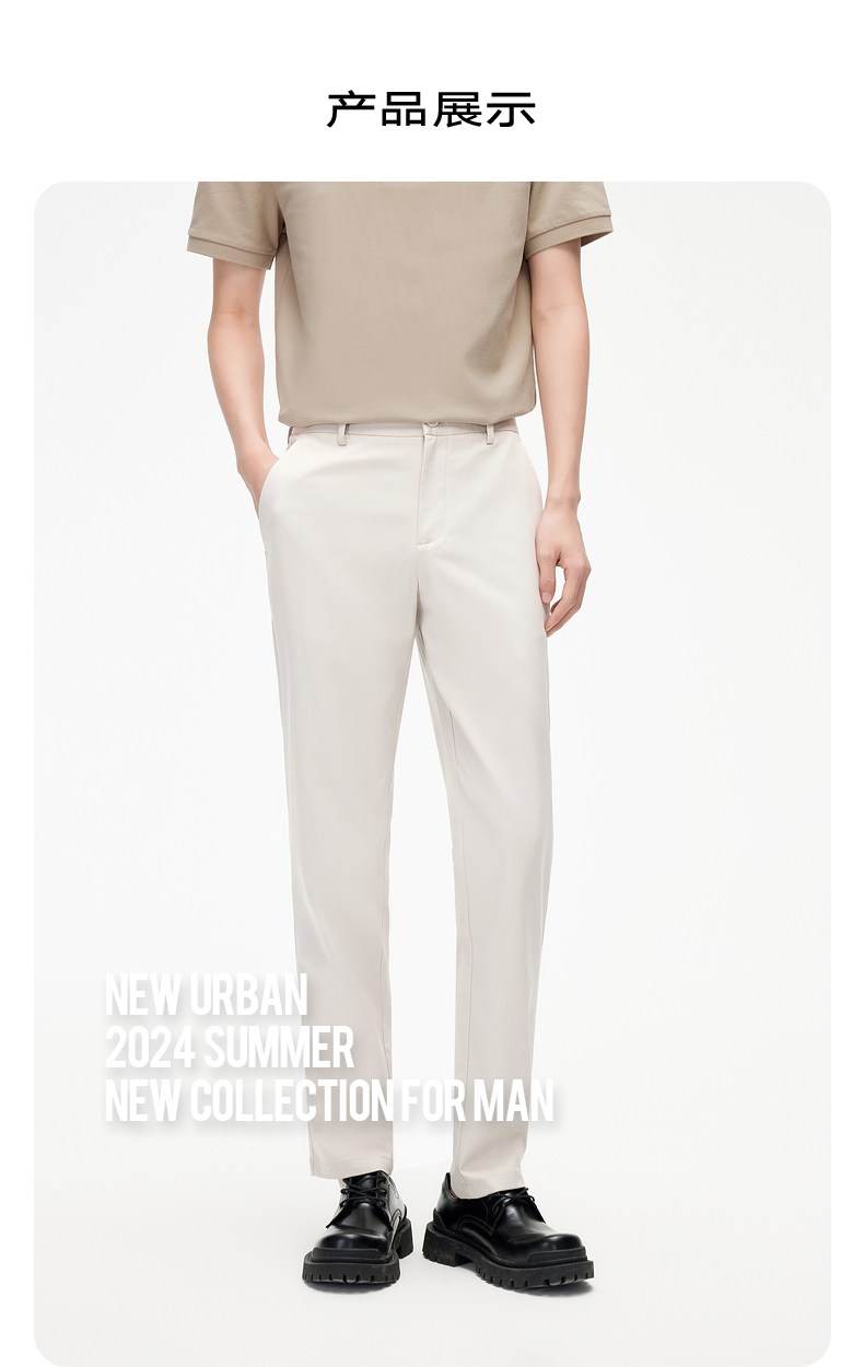 GXG男装 黑色百搭简约休闲直筒长裤2024夏季热卖爆款休闲裤#G24D022034