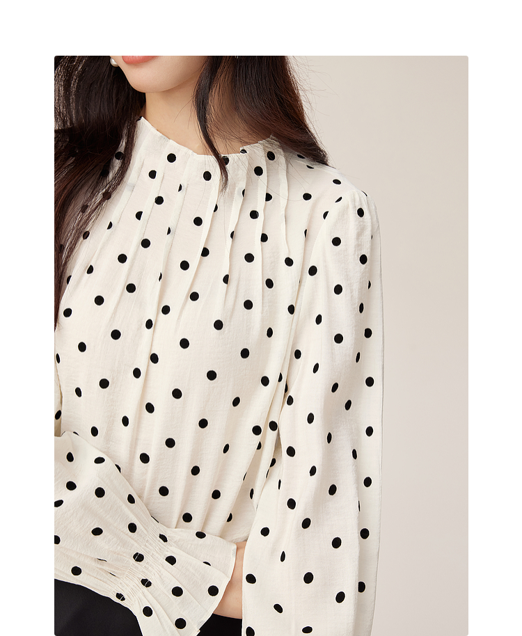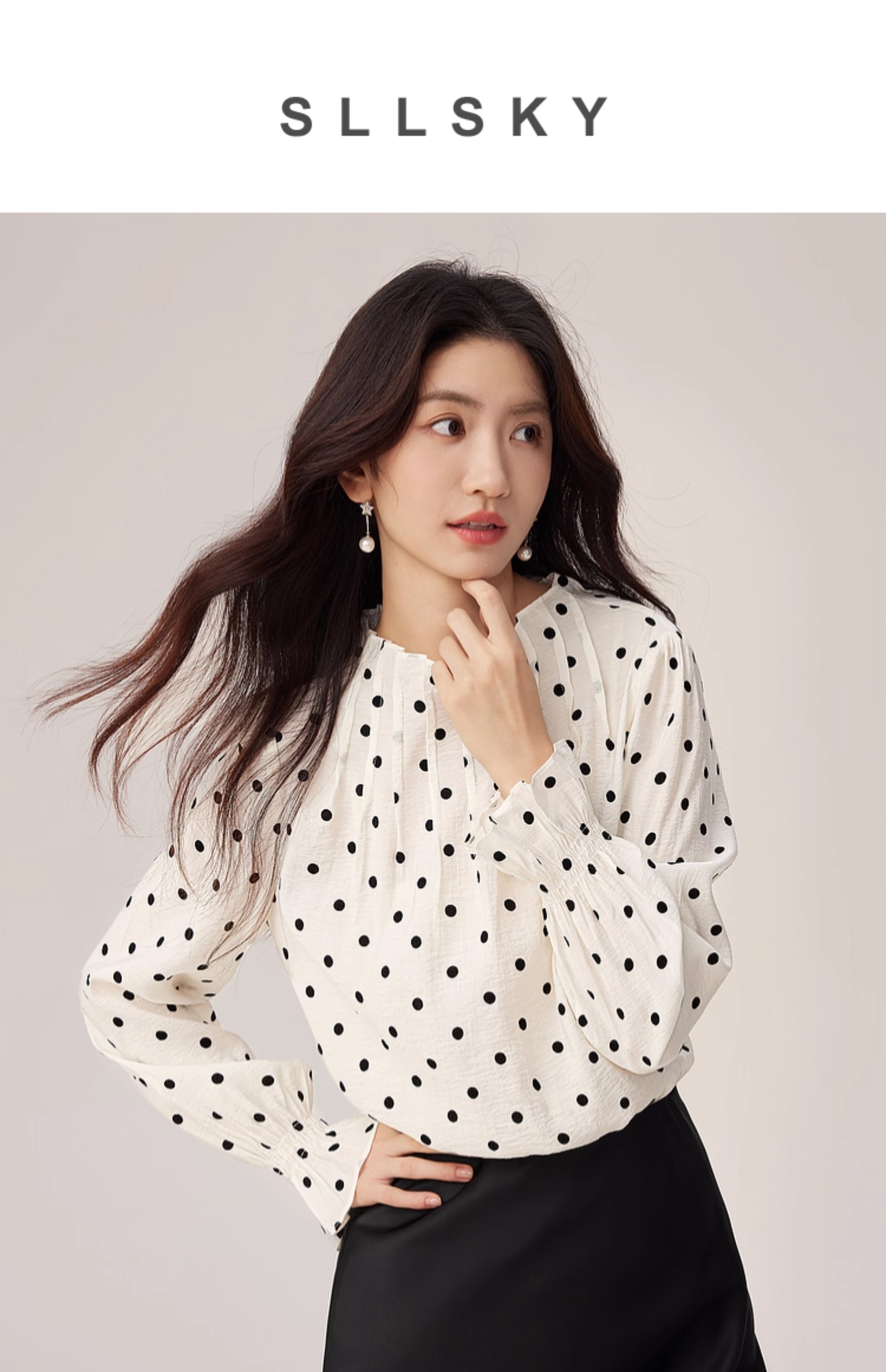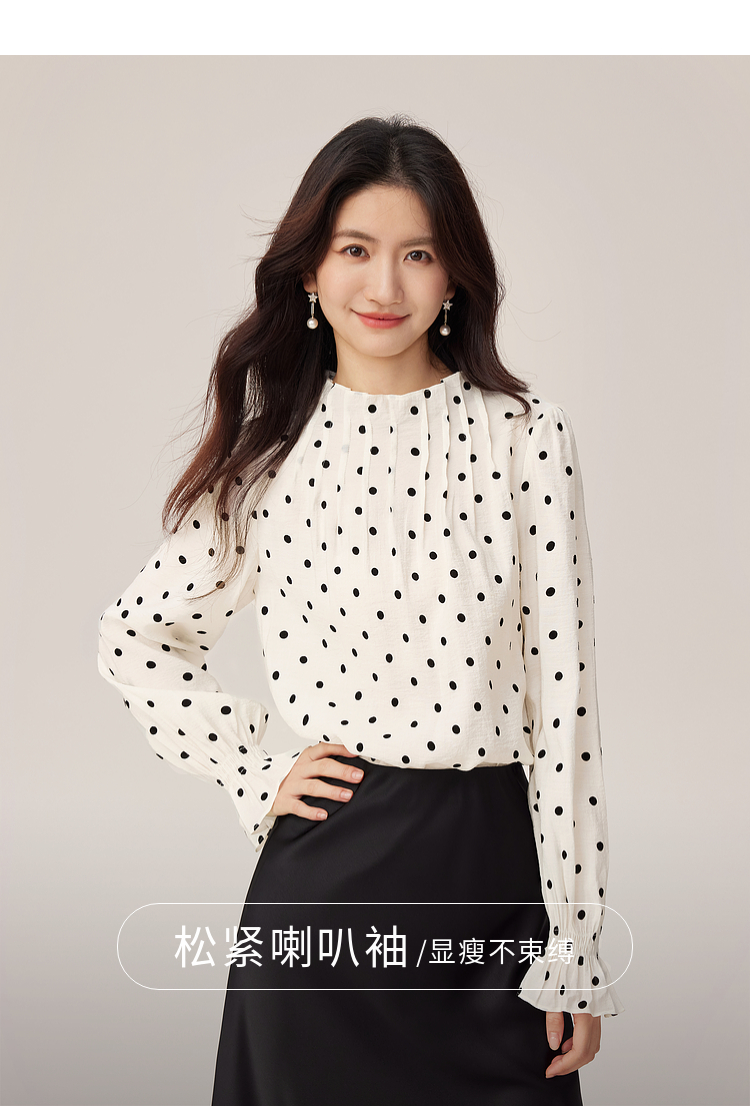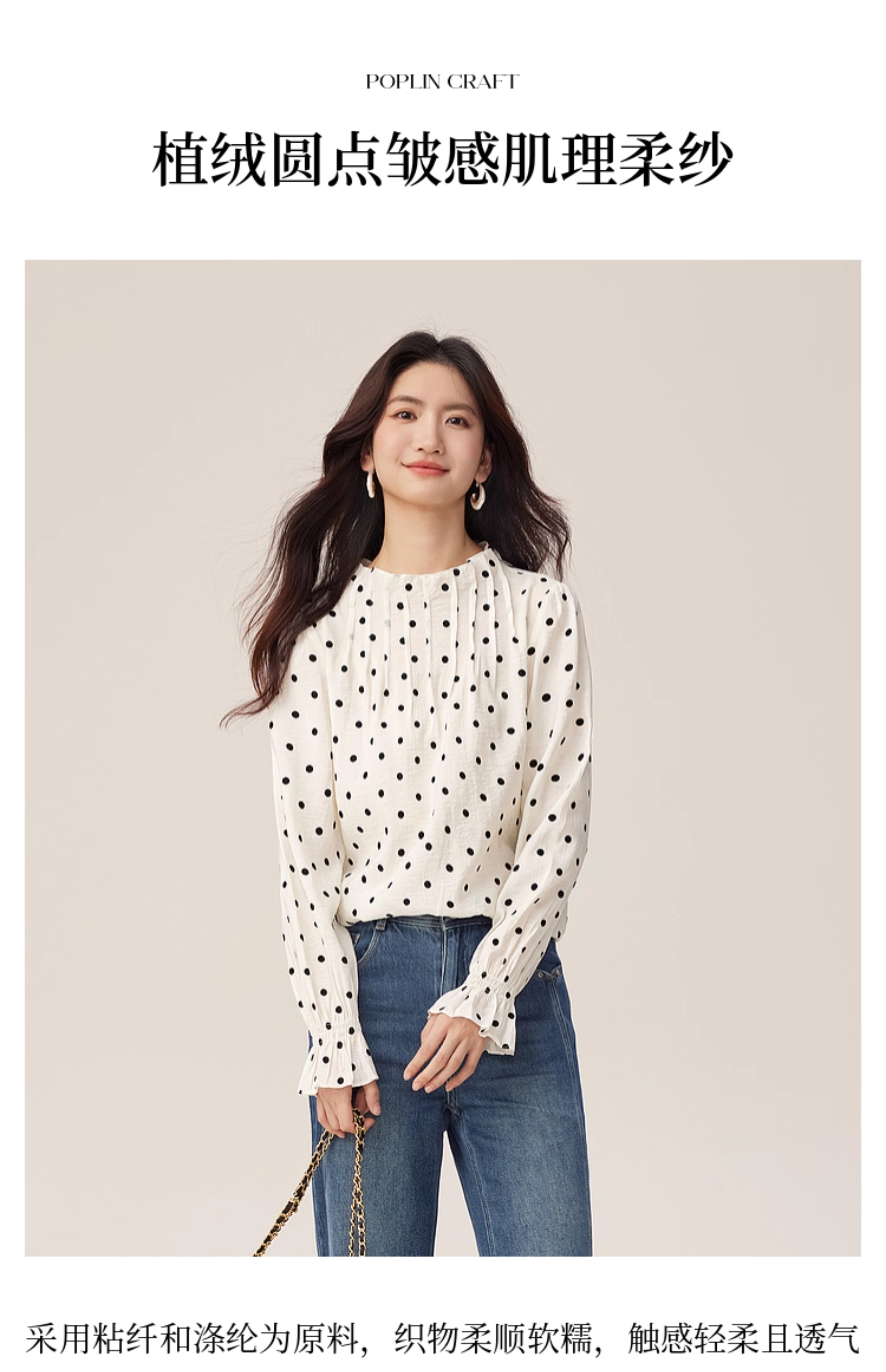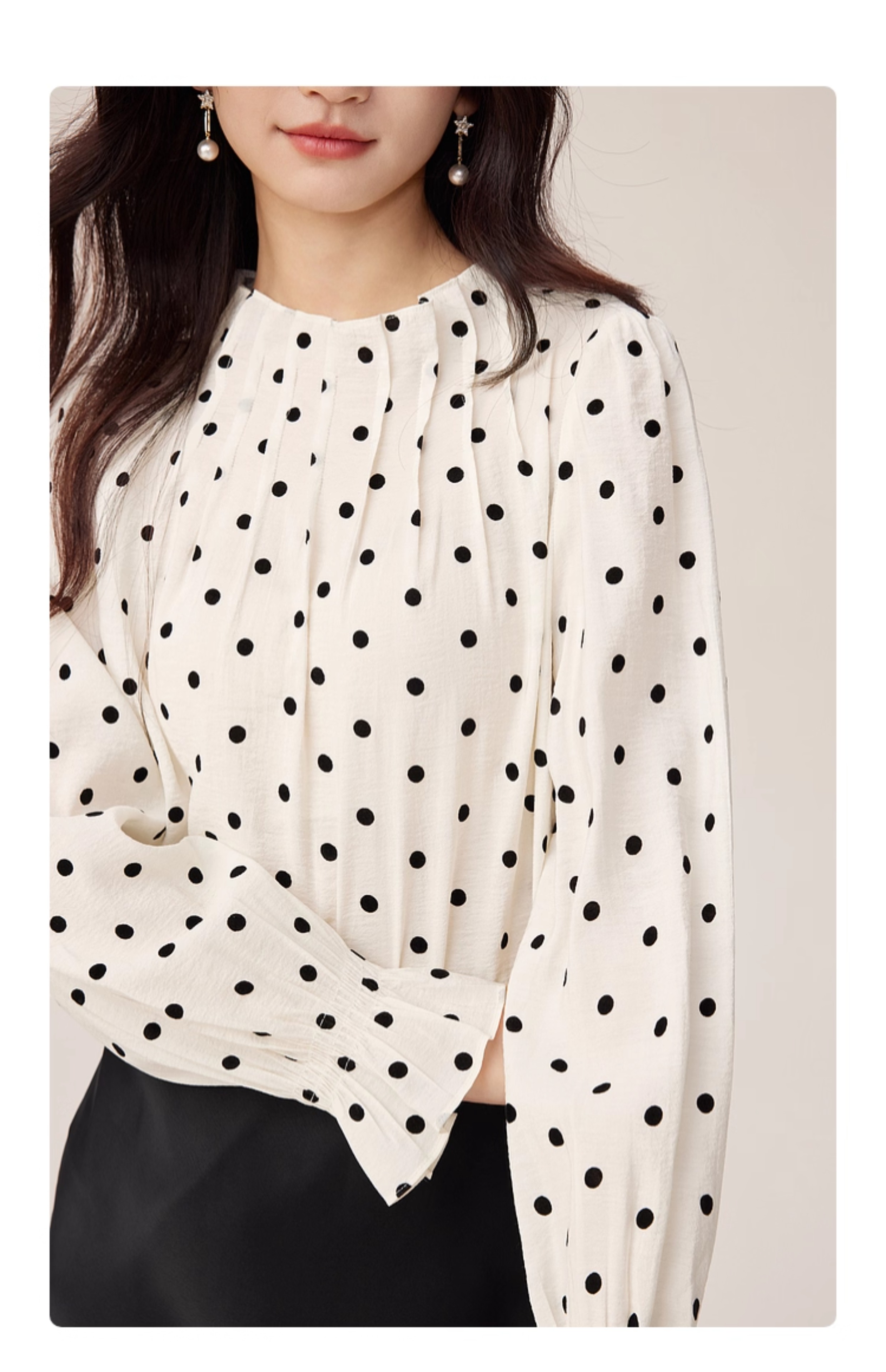 【周四狂欢价】熙世界法式复古波点雪纺衫女2025年新款秋季休闲套头喇叭长袖衬衫