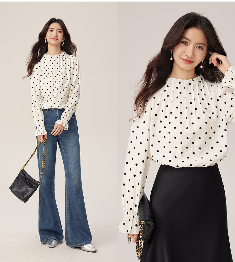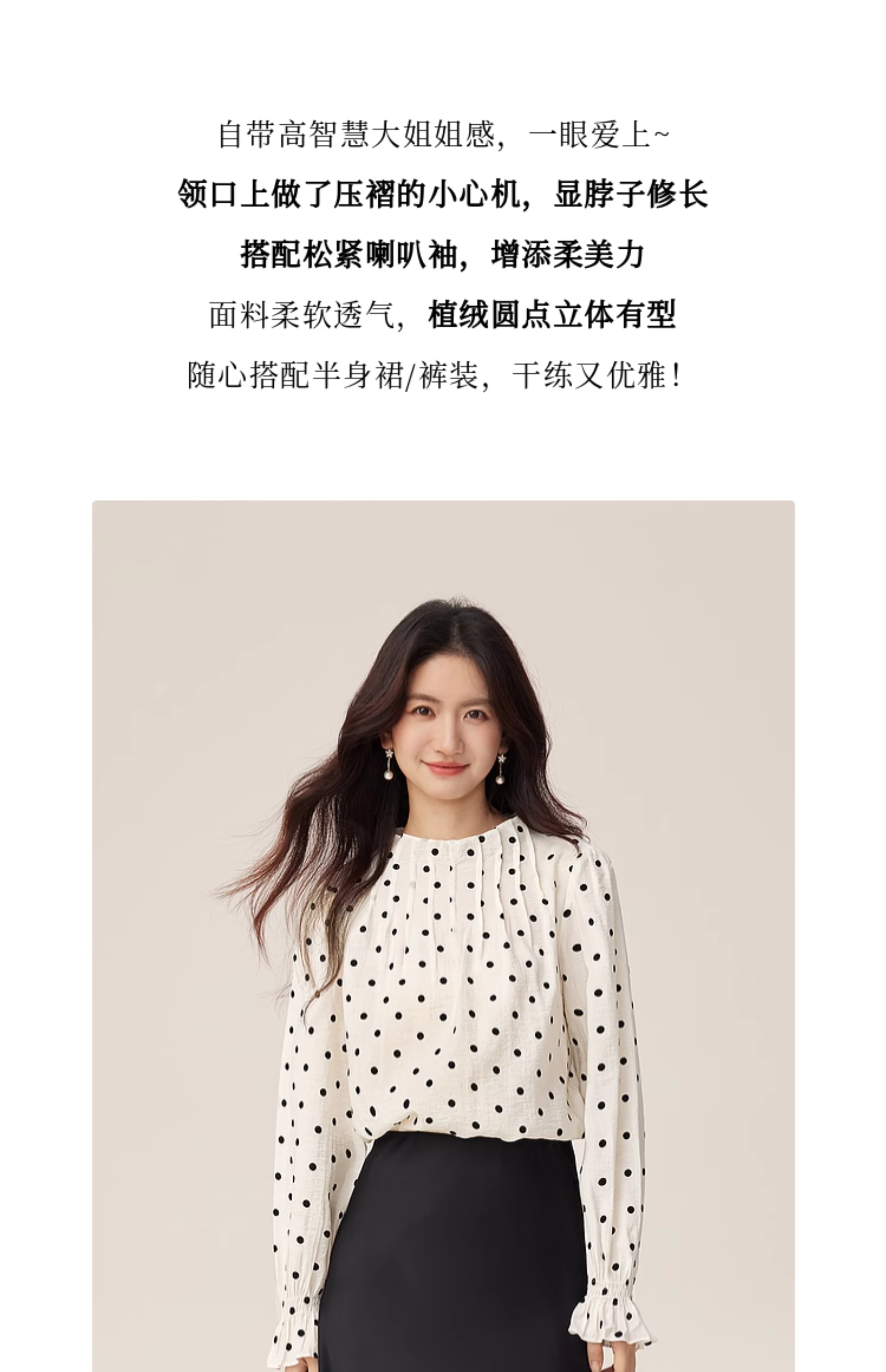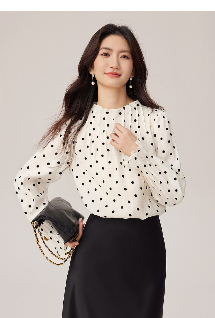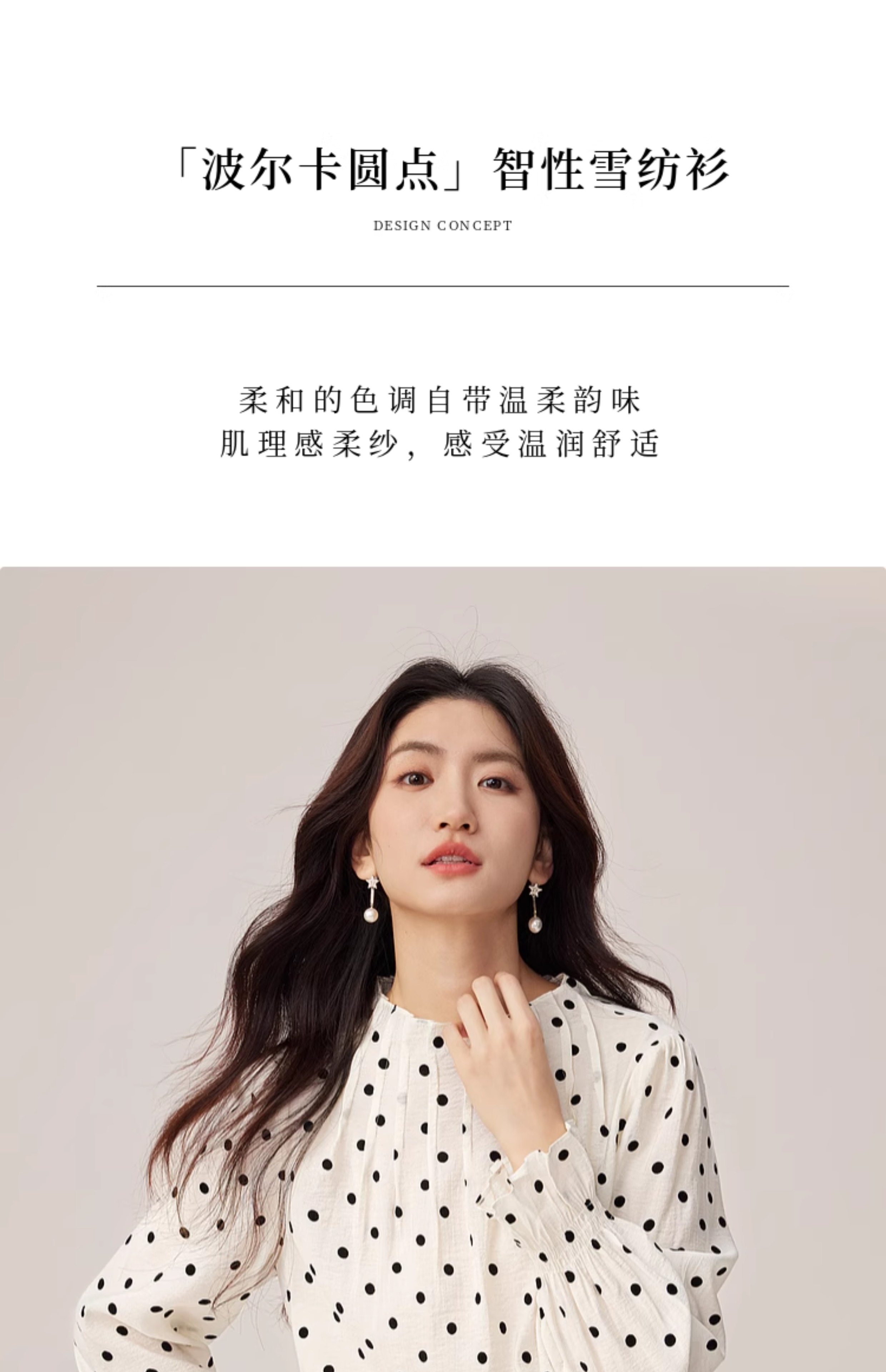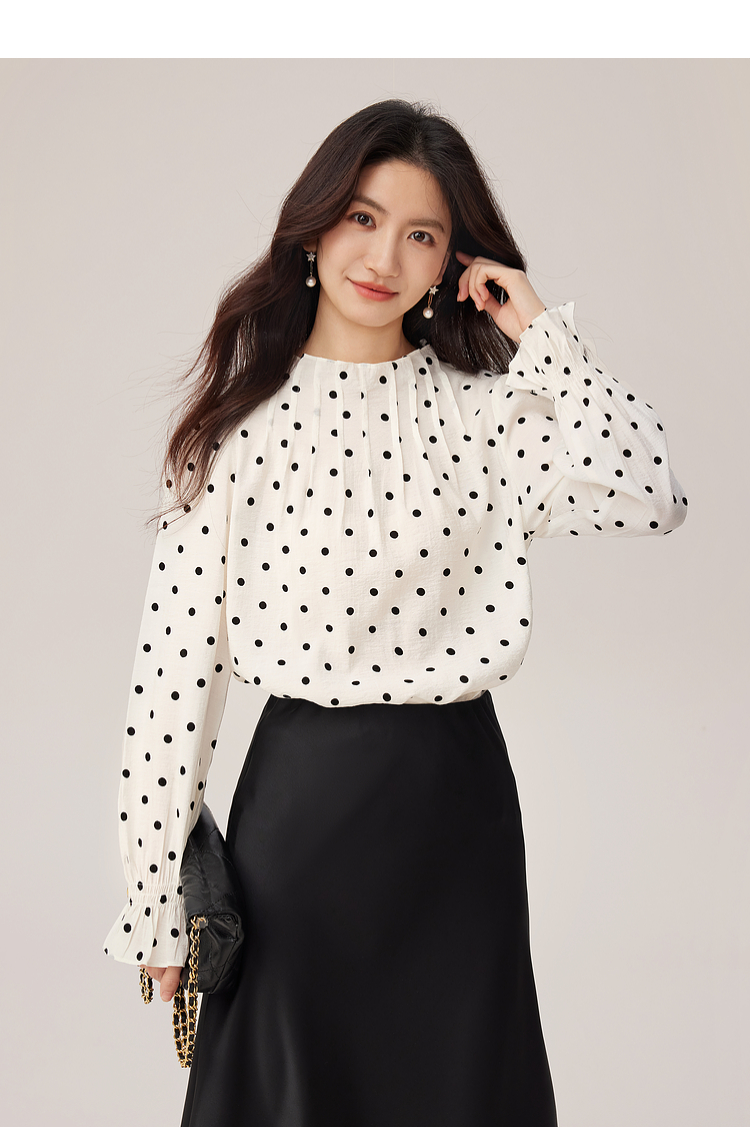 【周四狂欢价】熙世界法式复古波点雪纺衫女2025年新款秋季休闲套头喇叭长袖衬衫