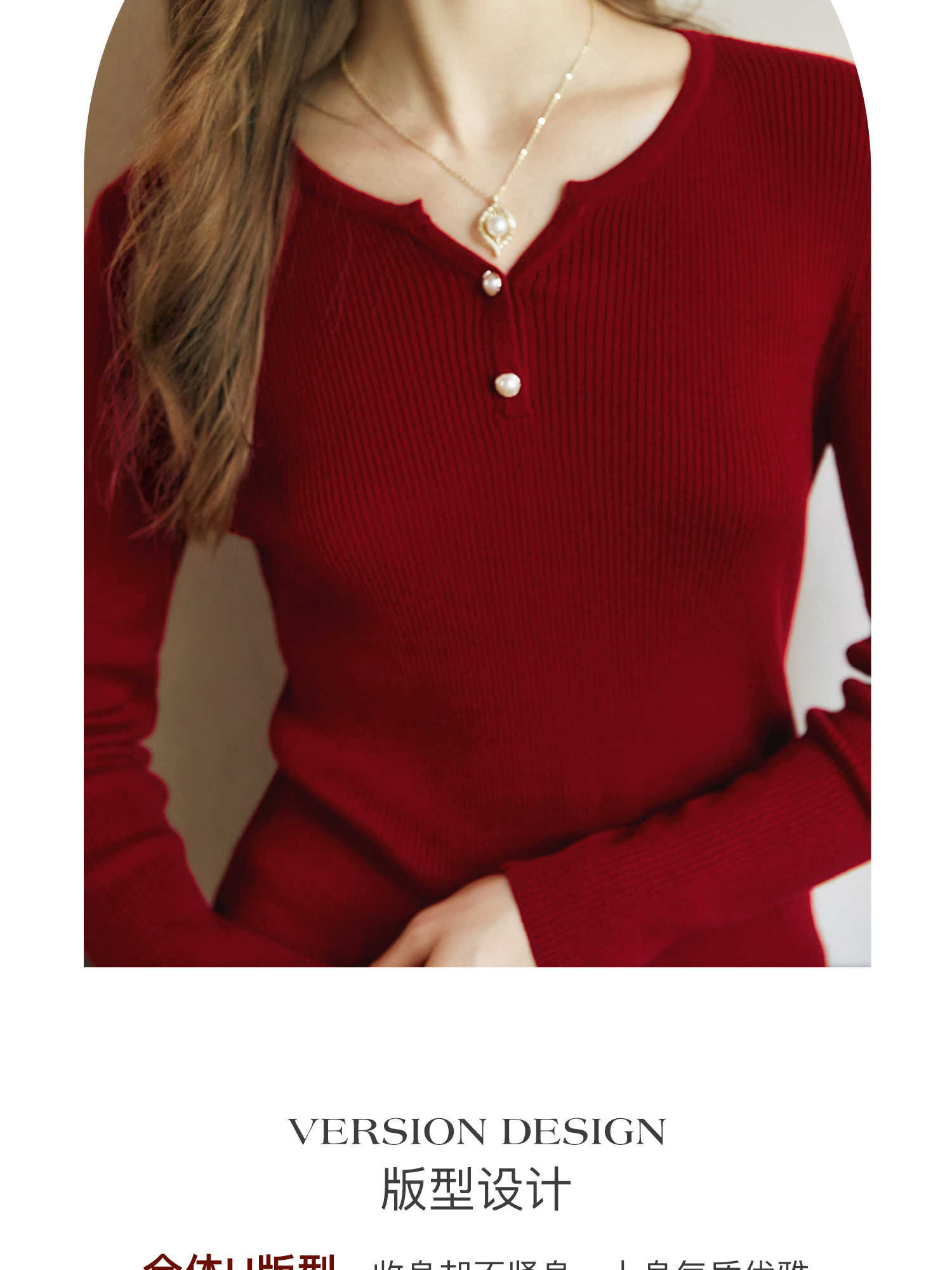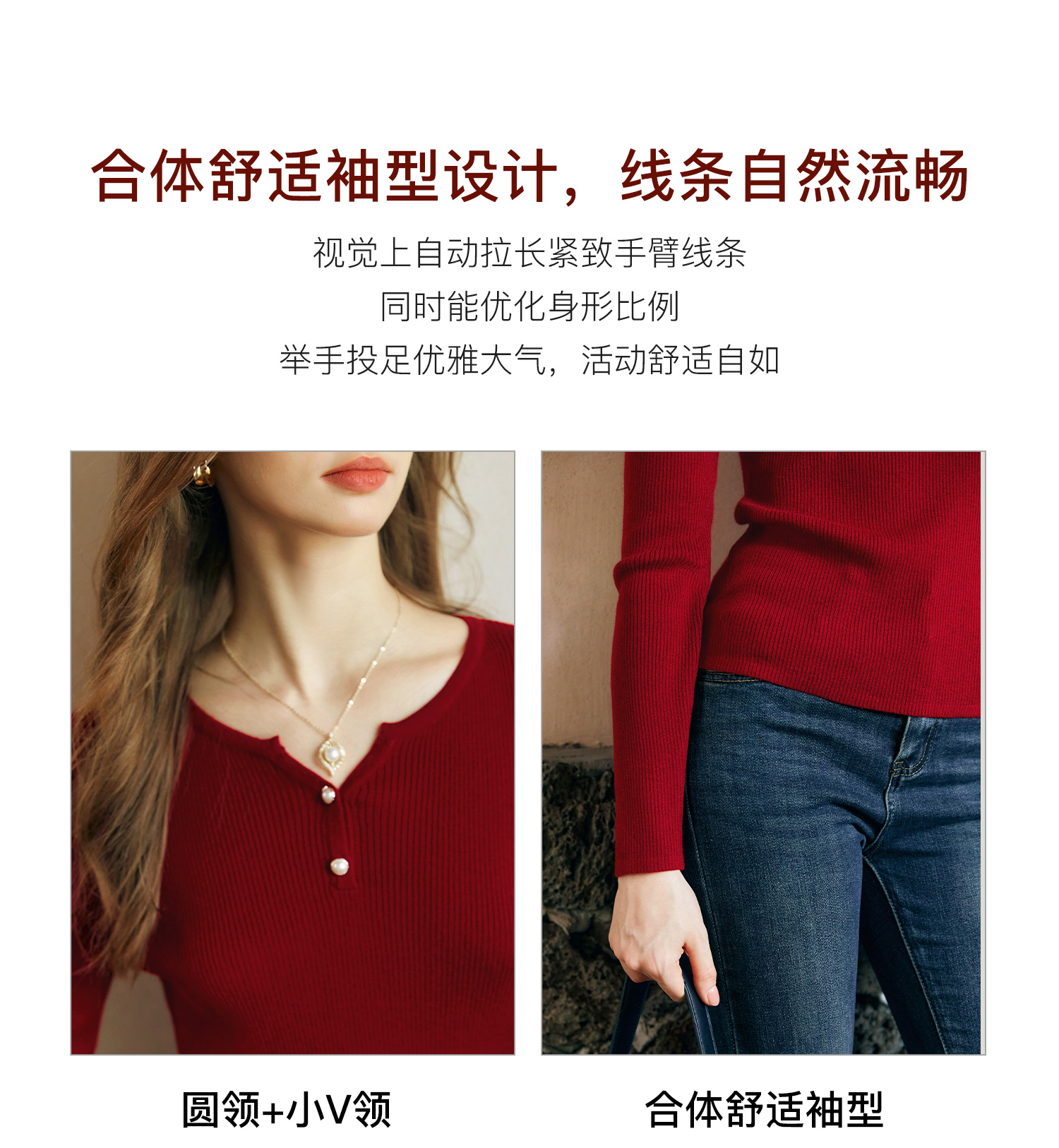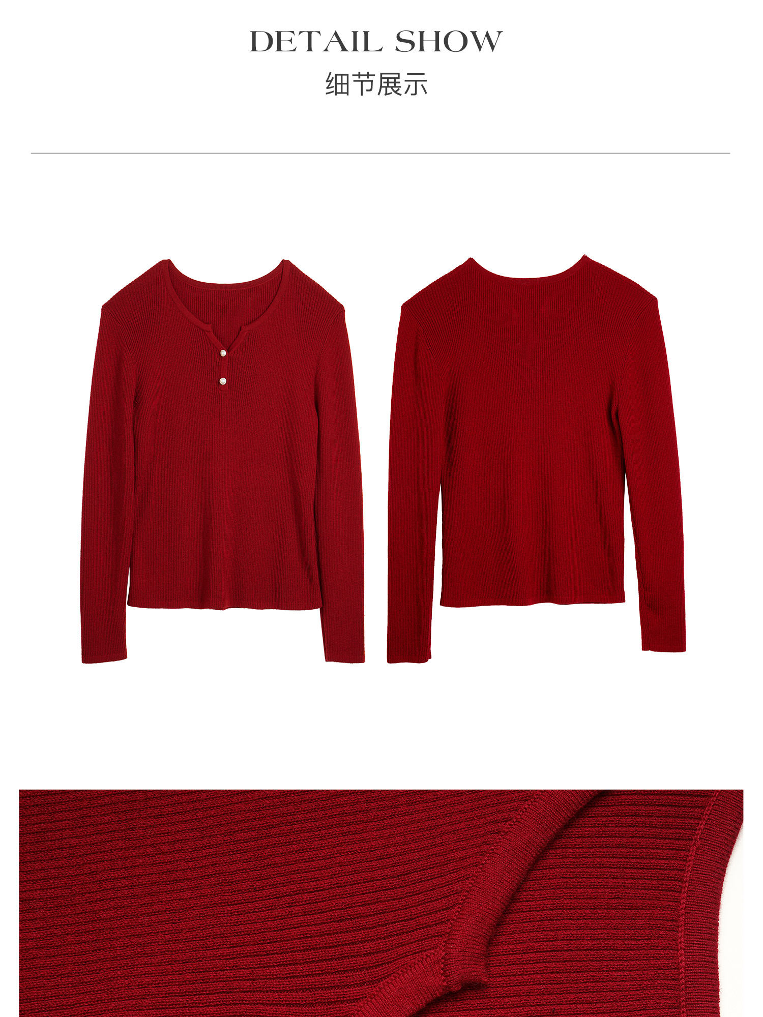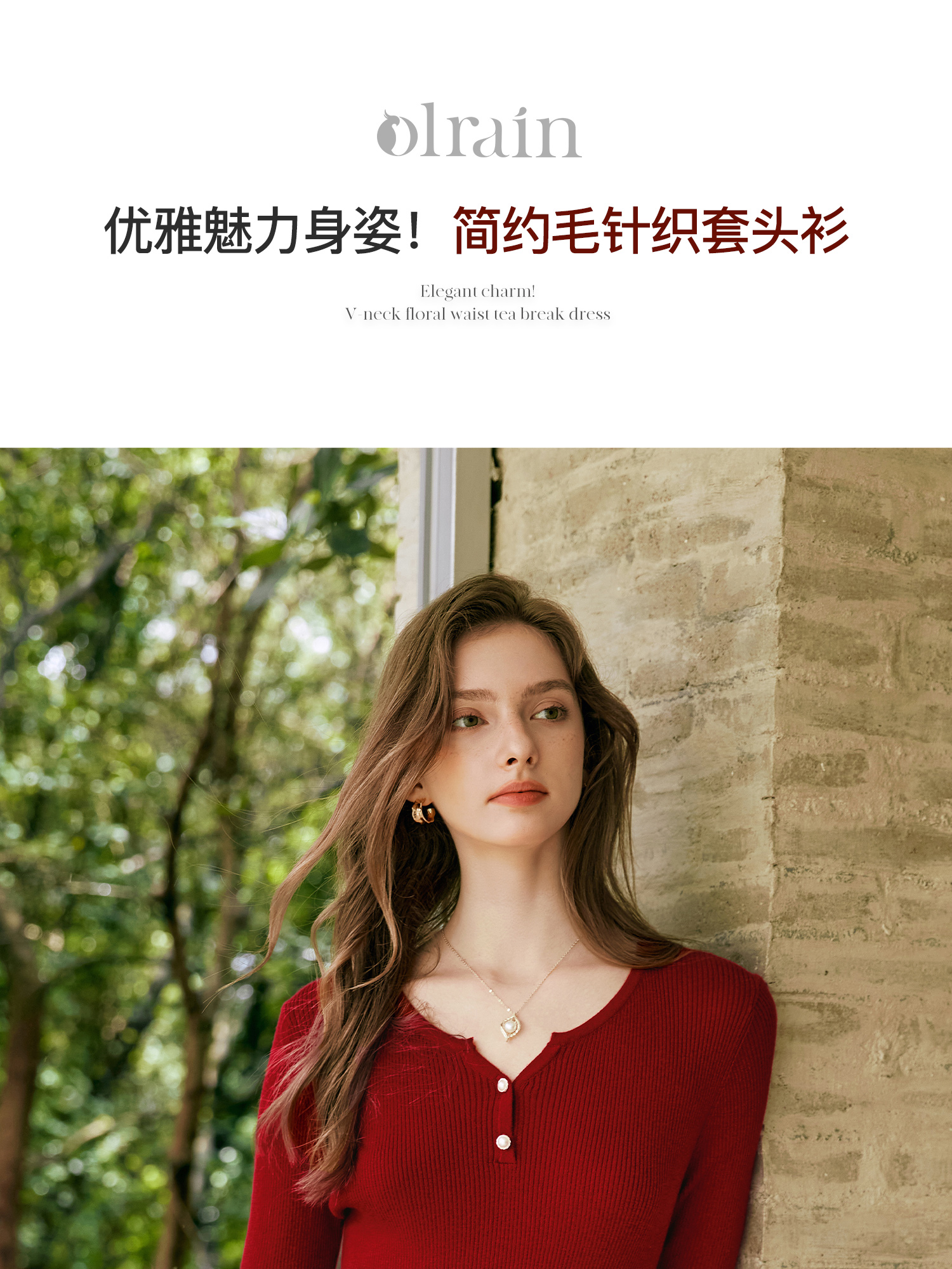 OLrain欧芮儿法式红色薄款针织衫女早秋2024新款修身套头打底上衣