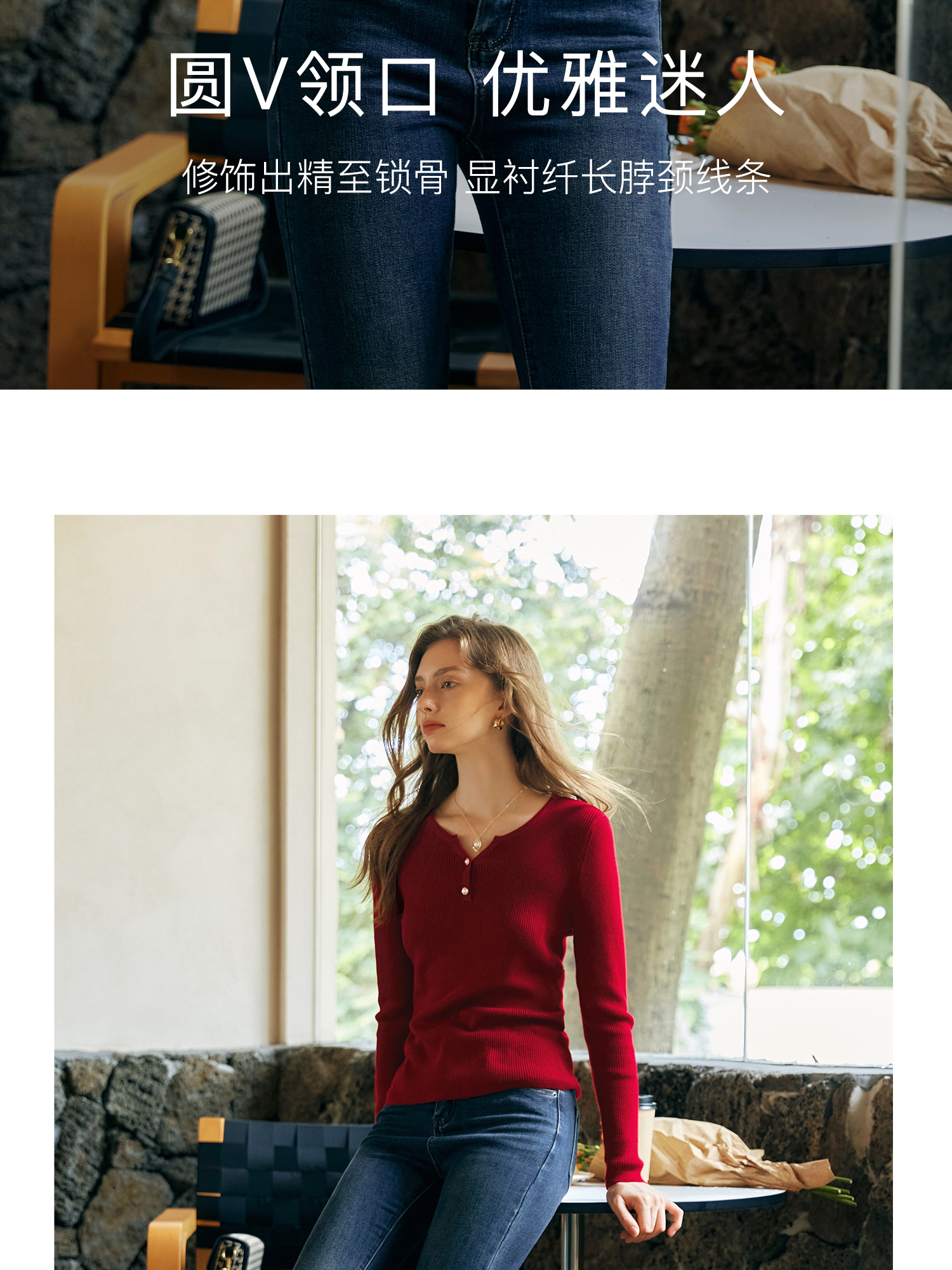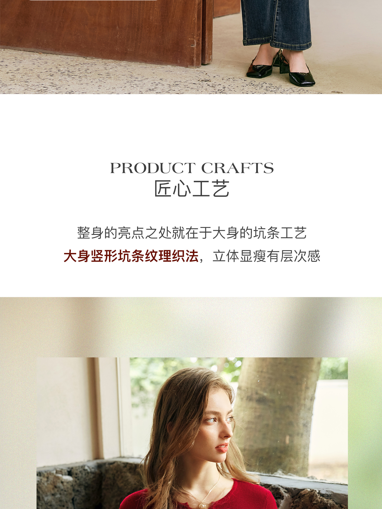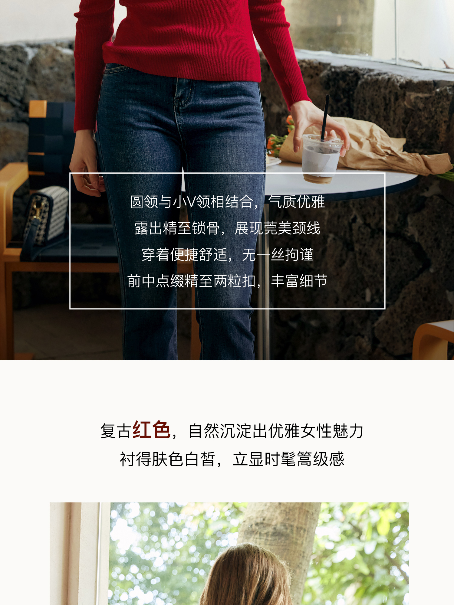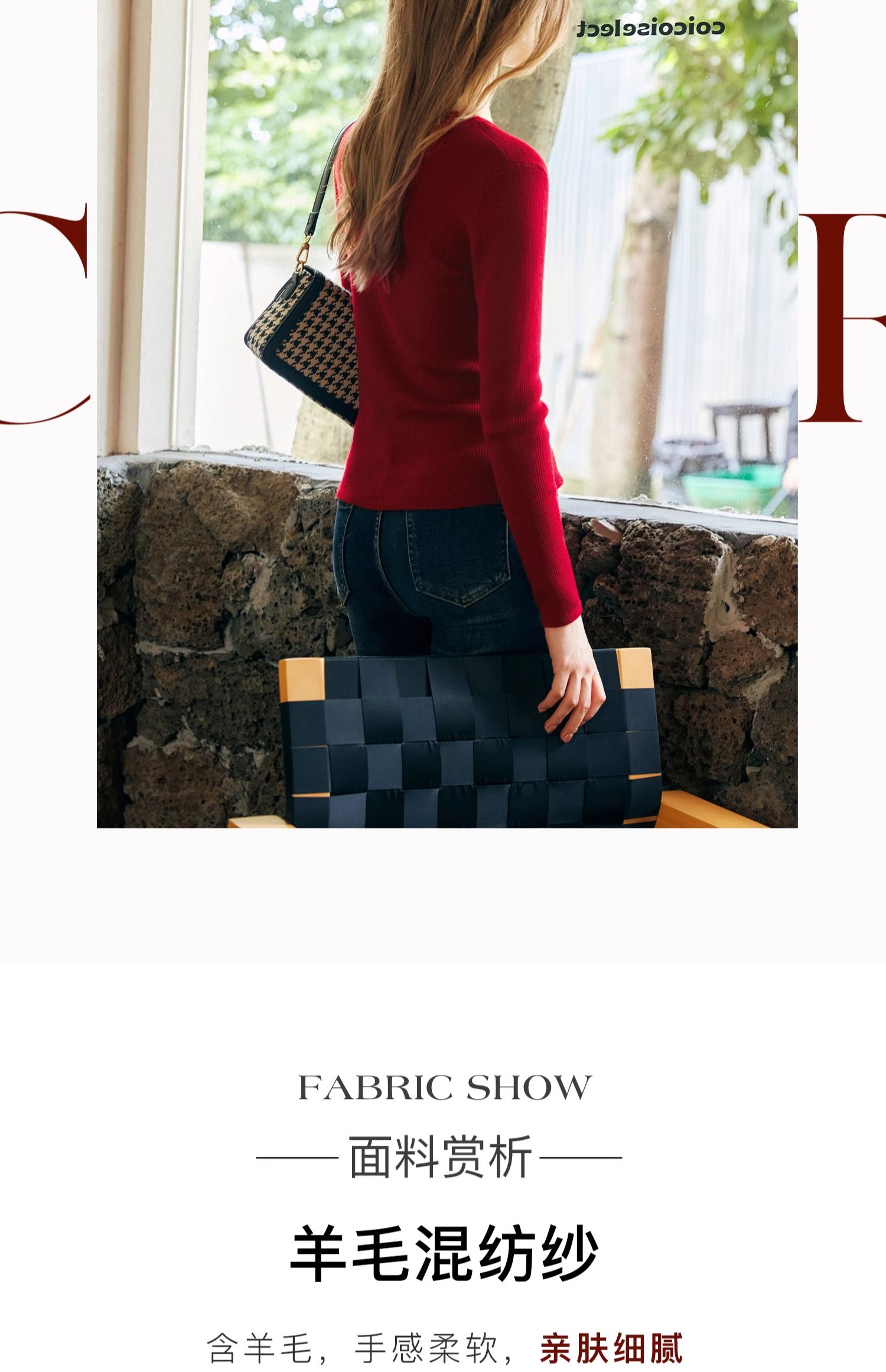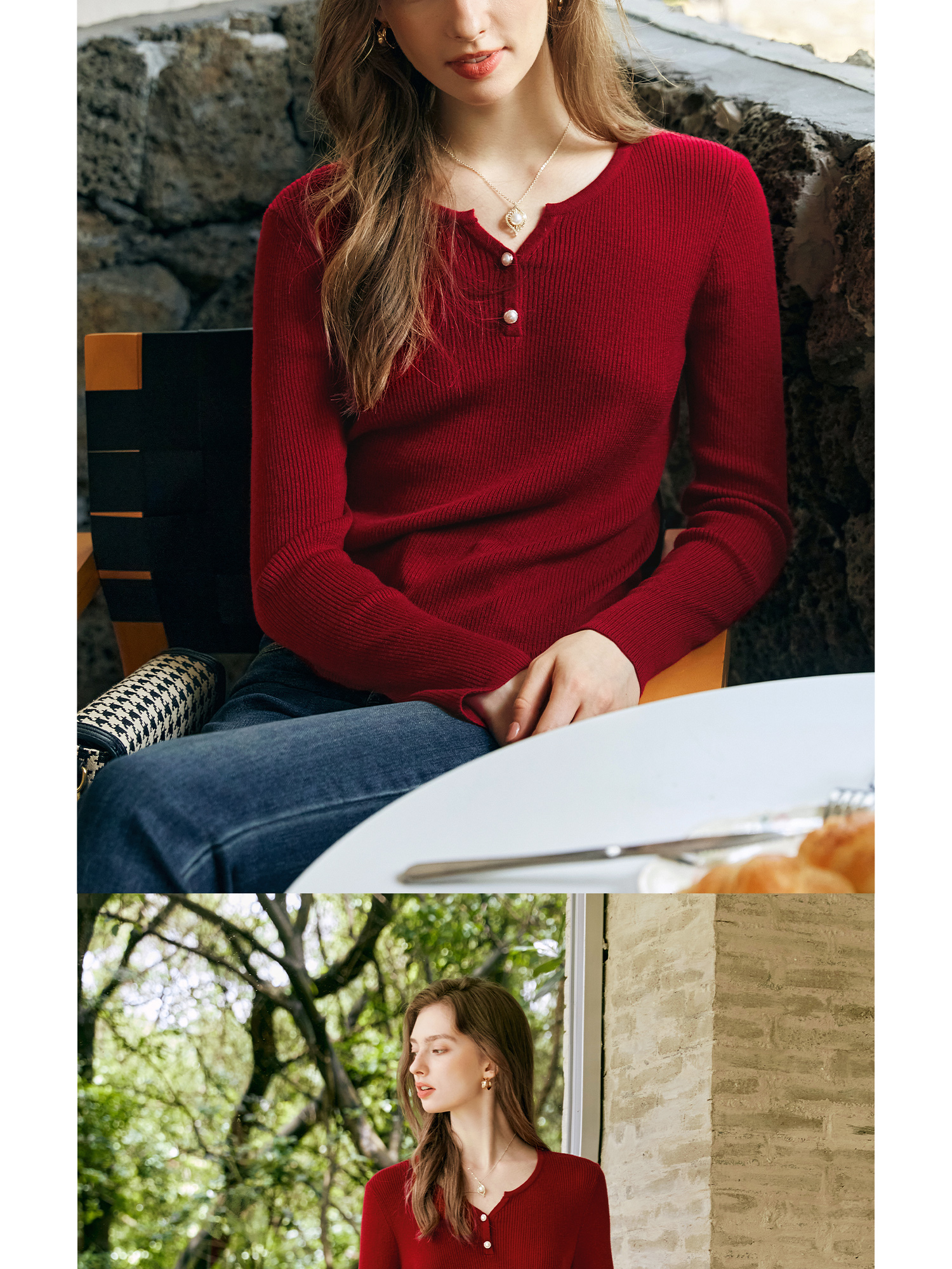 OLrain欧芮儿法式红色薄款针织衫女早秋2024新款修身套头打底上衣