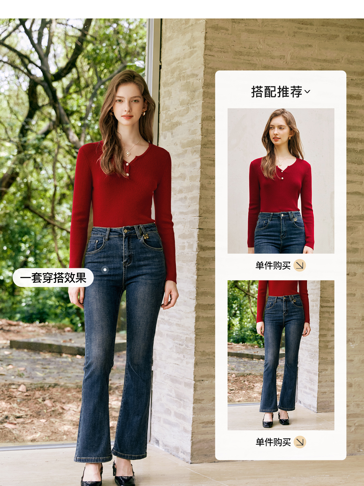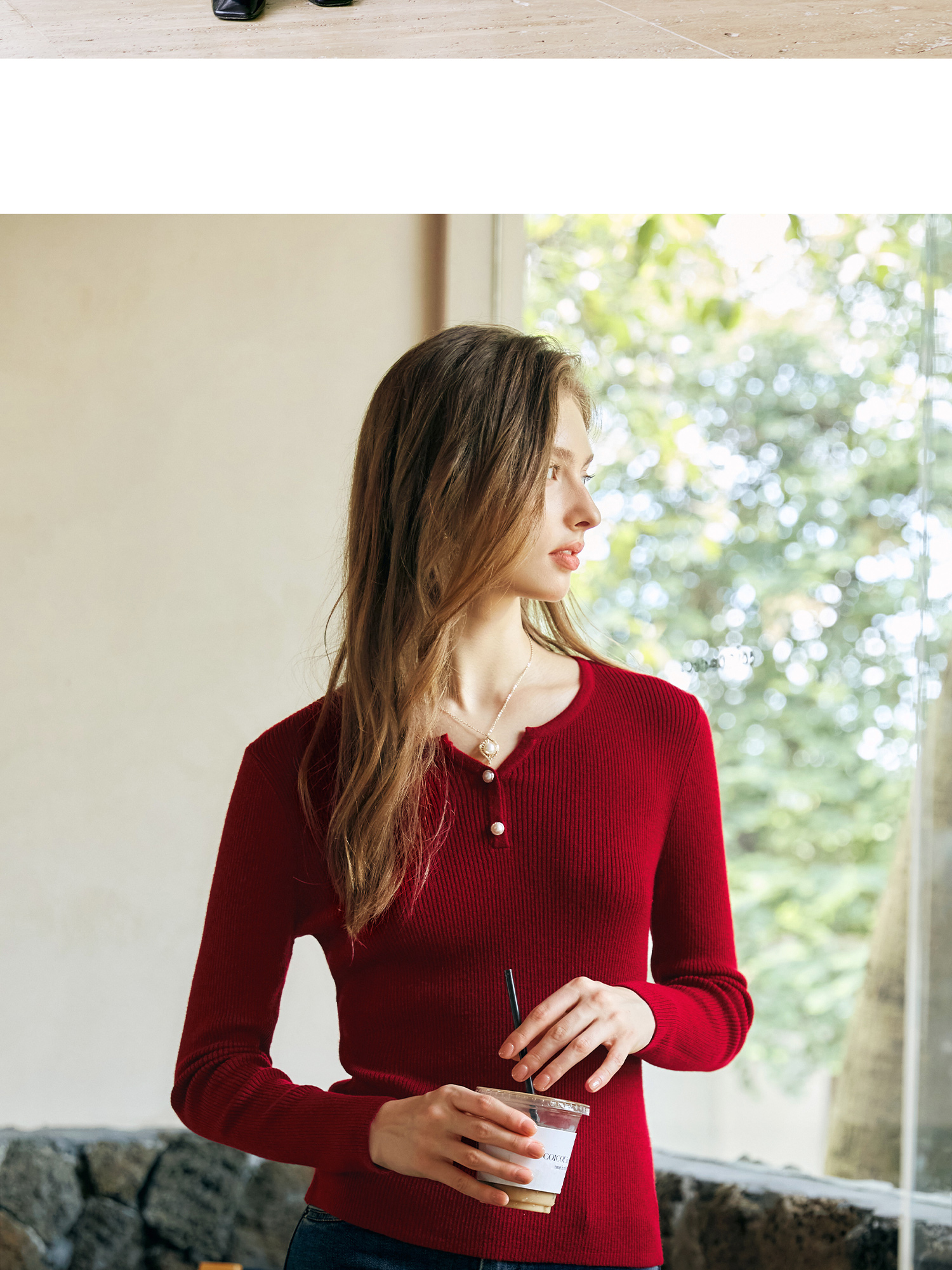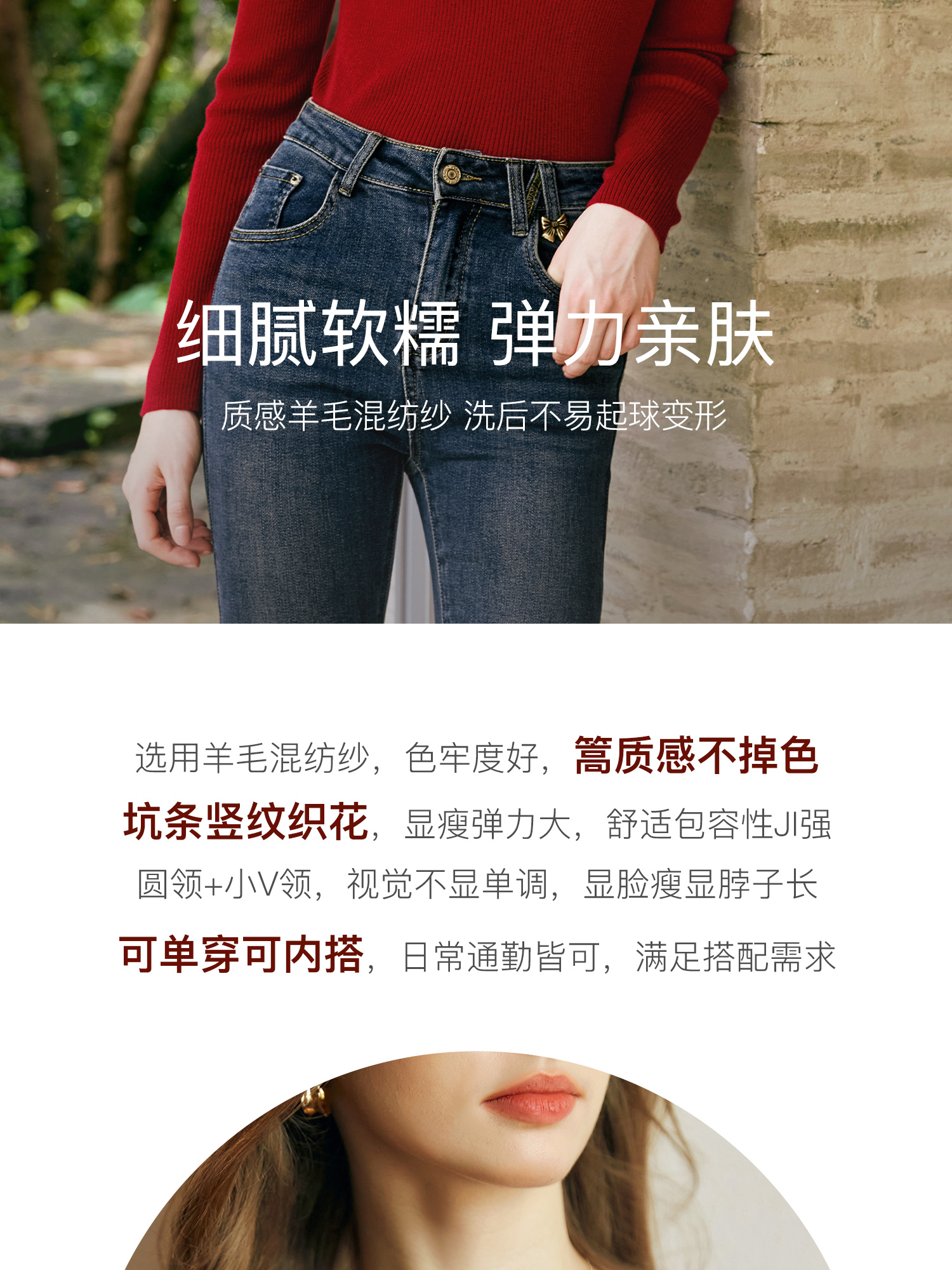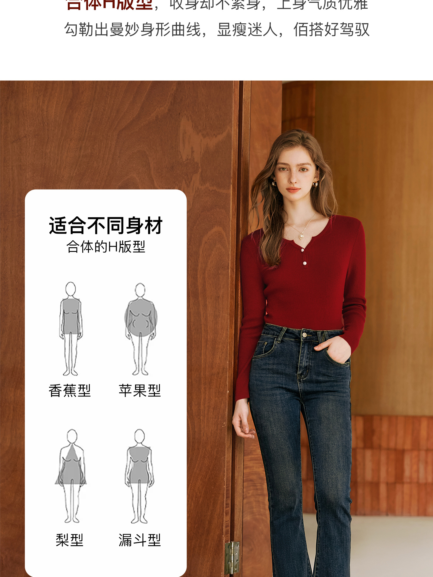 OLrain欧芮儿法式红色薄款针织衫女早秋2024新款修身套头打底上衣