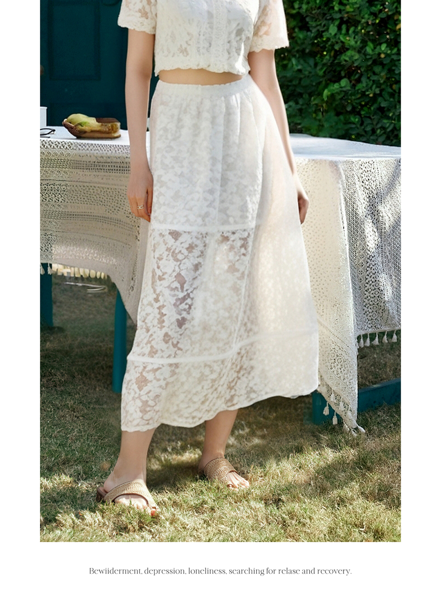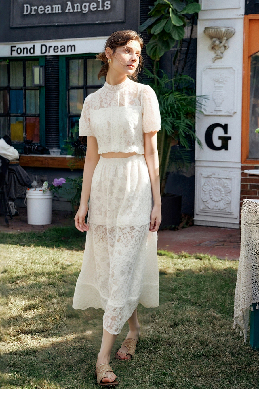0lrain欧芮儿蕾丝小众短袖两件套装裙2025新款法式浪漫时尚套装女
