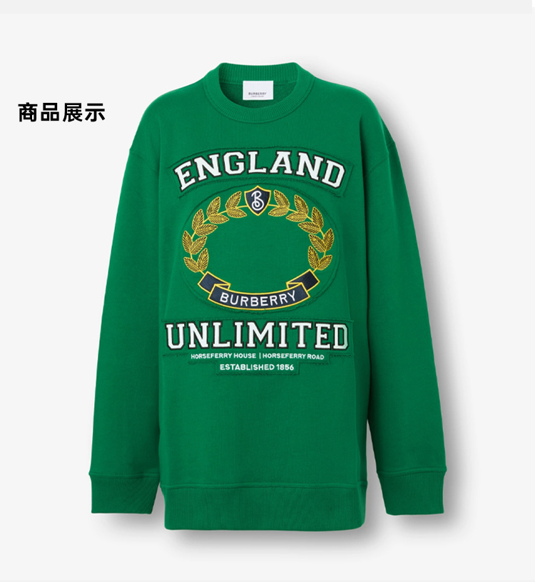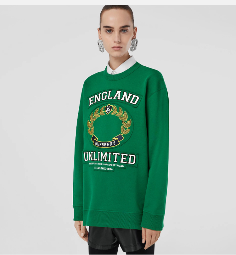 BURBERRY 巴宝莉 女士学院风图案棉质宽松运动卫衣 绿色 8065047 B3603