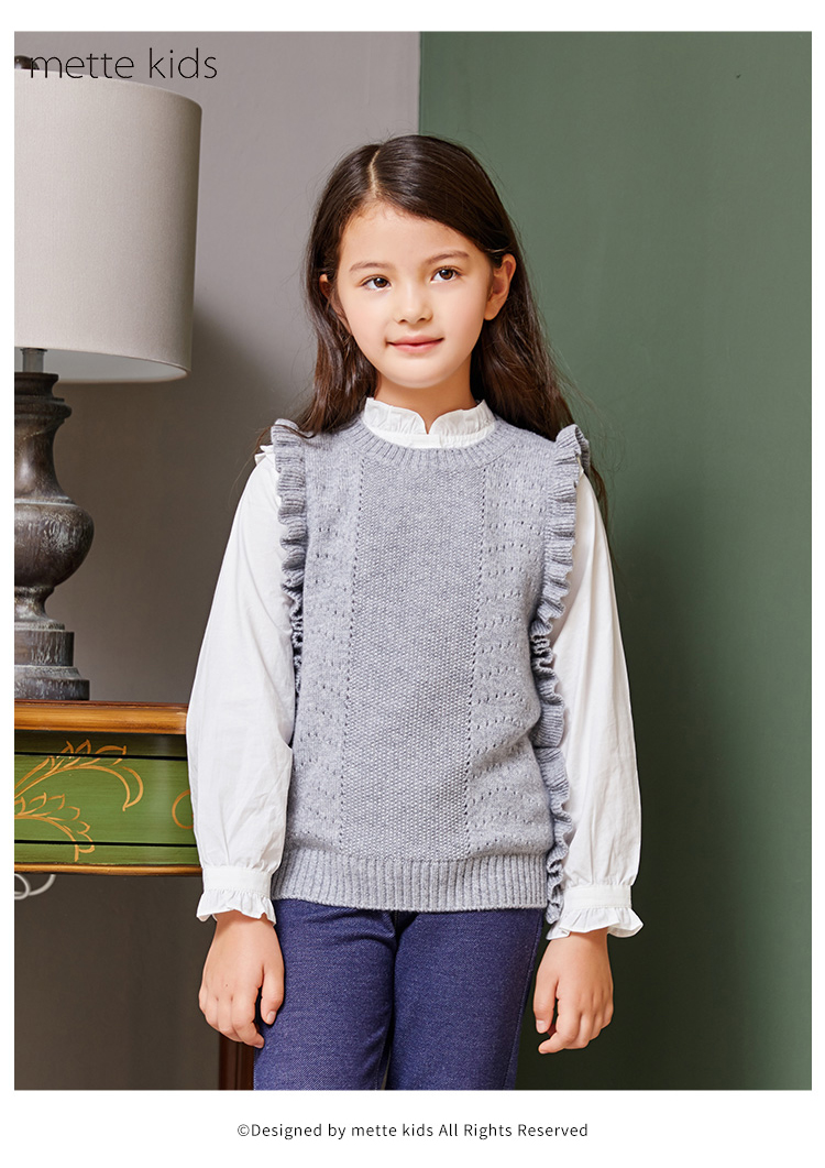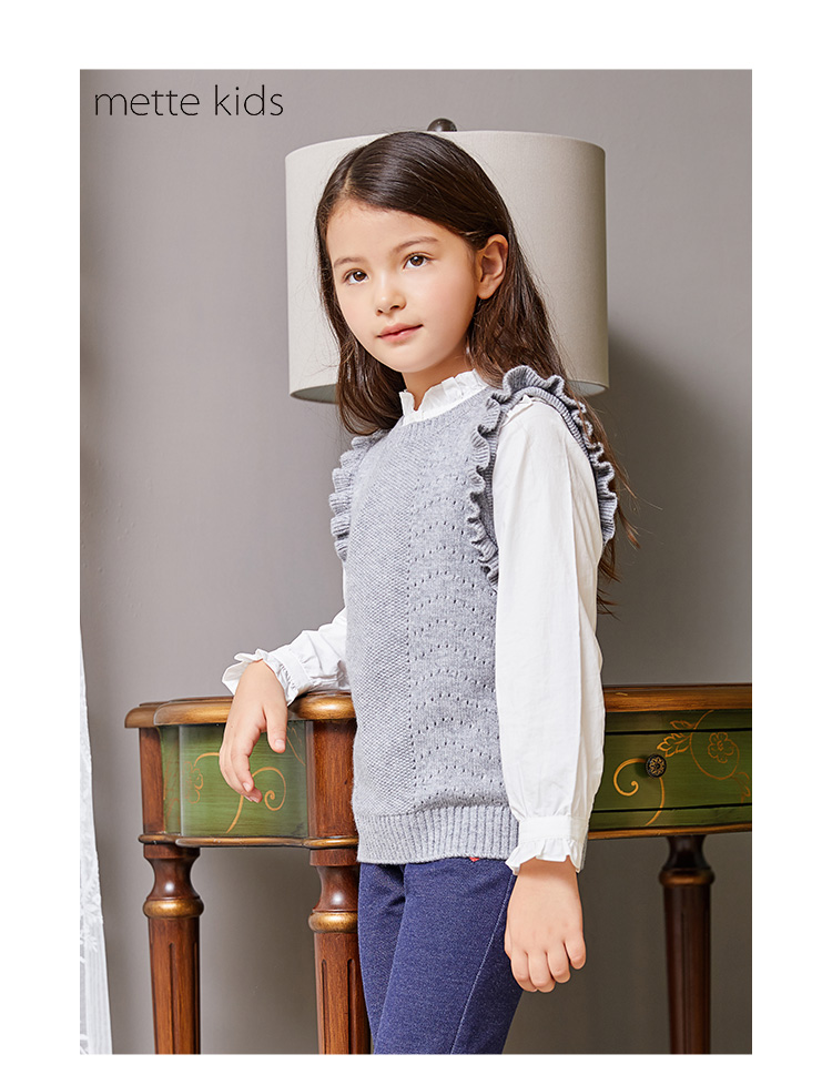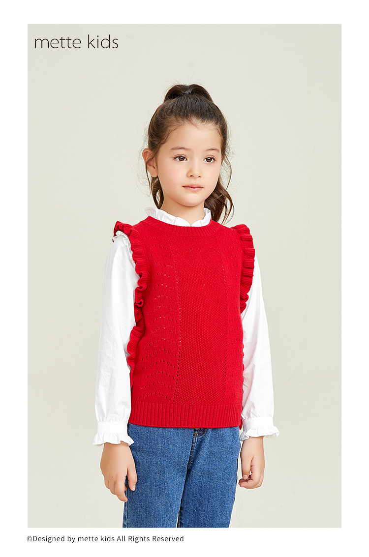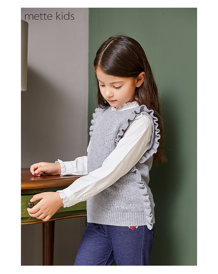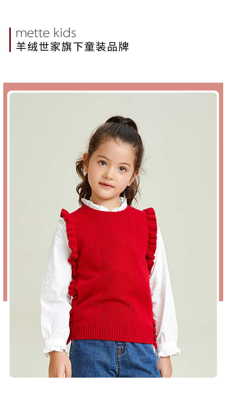 METTE羊绒世家女童中大童2020秋新品100%山羊绒背心无袖保暖毛衣