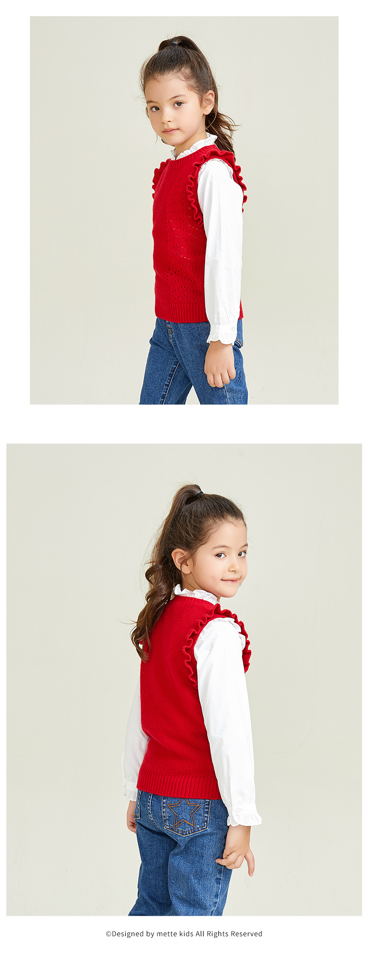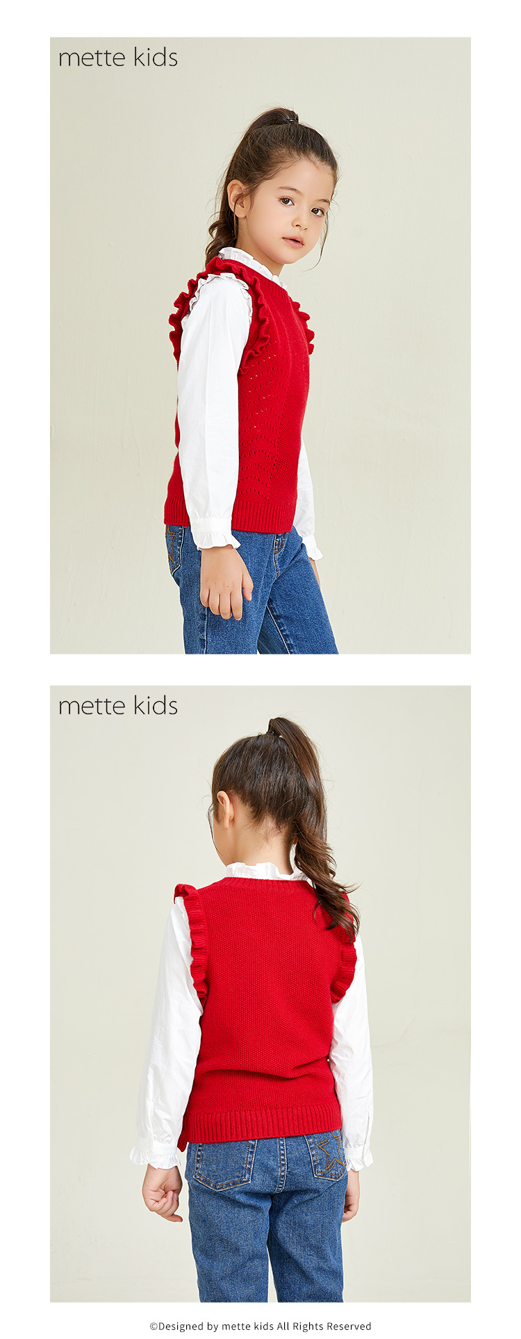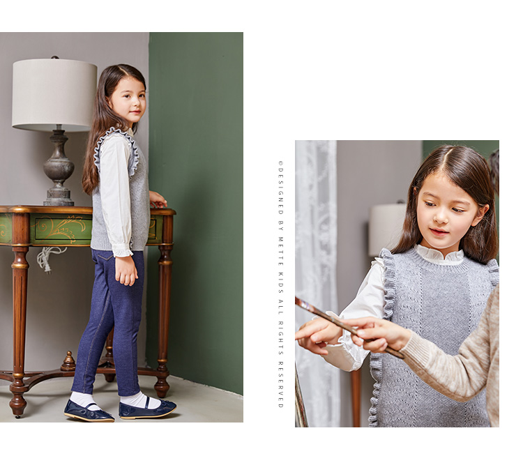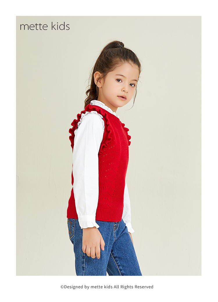 METTE羊绒世家女童中大童2020秋新品100%山羊绒背心无袖保暖毛衣
