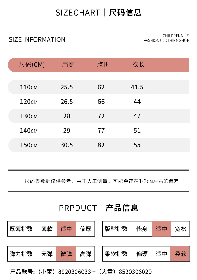 | 参考身高: 110/52 120/56 130/60 140/64 150/68 | 适用季节: 春秋 |
