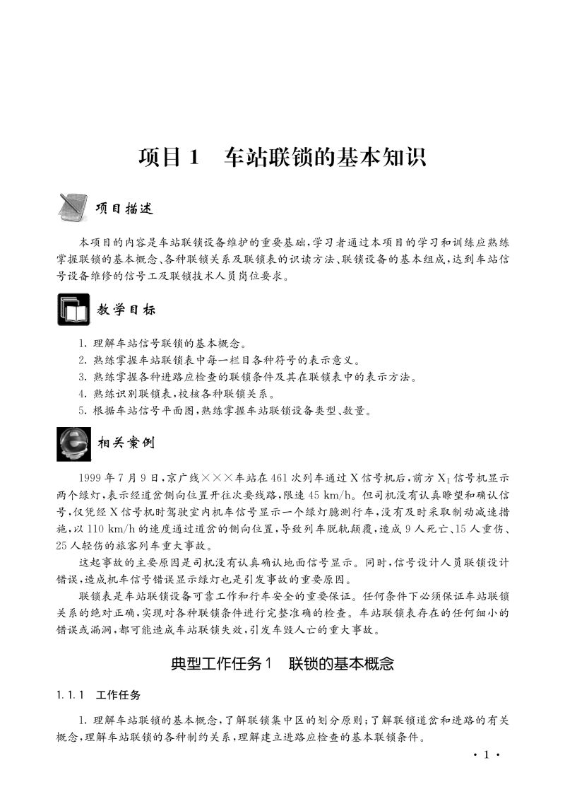 本书为全国铁道职业教育教学指导委员会规划教材、高等职业教育铁道信号自动控制专业系列规划教材之一。目前,铁路现场绝大多数车站都已应用计算机联锁控制系统,经过近30年的应用实践和不断完善,计算机联锁技术已完全成熟,各项技术标准已经规范。全书按照项目教学方法系统地介绍了车站信号自动控制系统的工作原理、维修作业方法、程序和要求,主要包括:车站联锁的基本知识、6502电气集中系统及维护、计算机联锁系统及检修维护、工程图纸的识读、计算机联锁系统故障处理和车站信号联锁试验。
