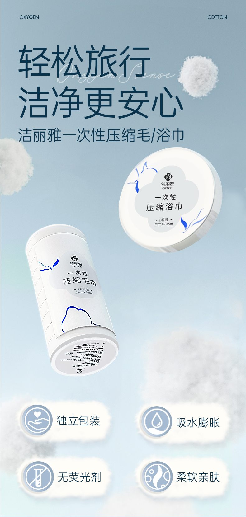 洁丽雅一次性洗脸巾压缩浴巾毛巾旅行用品酒店干湿两用吸水独立装#专享券