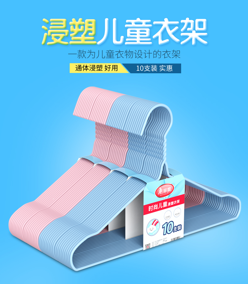 【批发】美丽雅时尚儿童浸塑衣架10支入