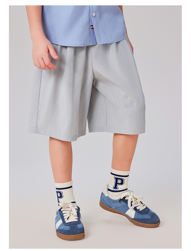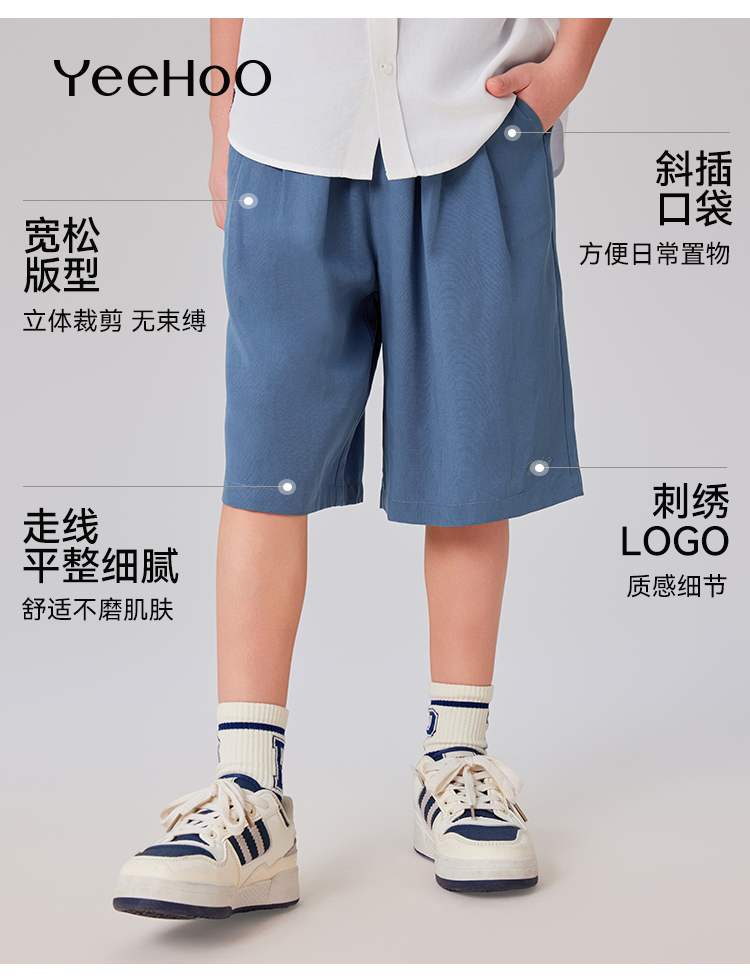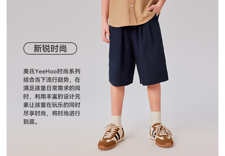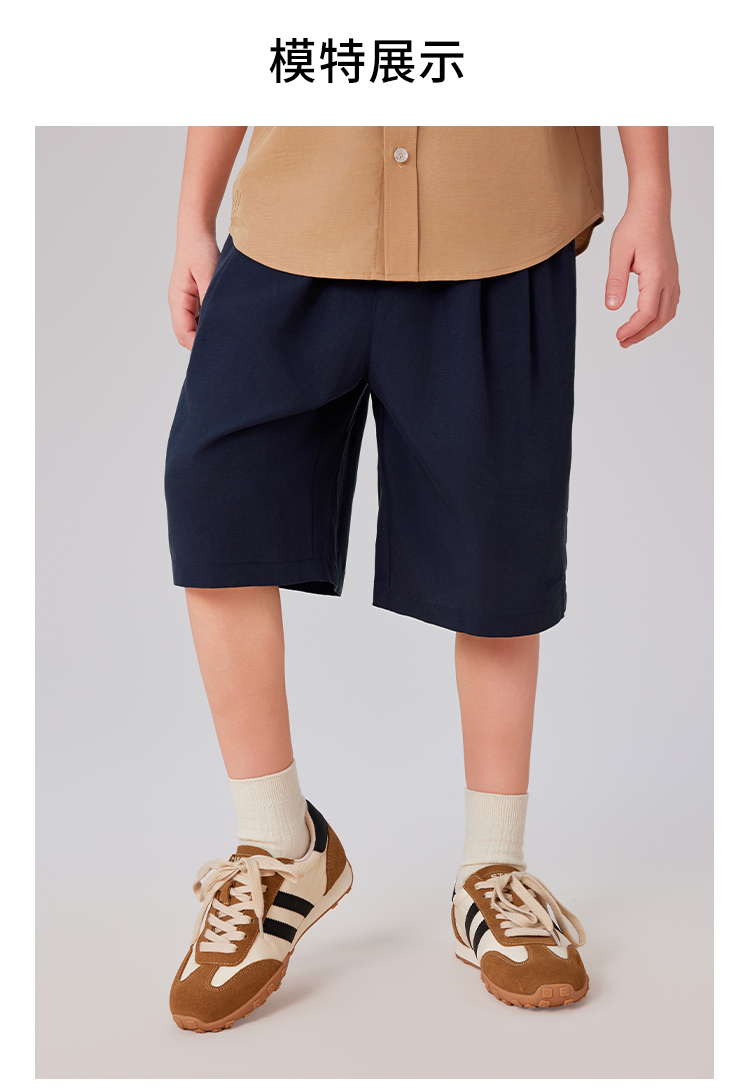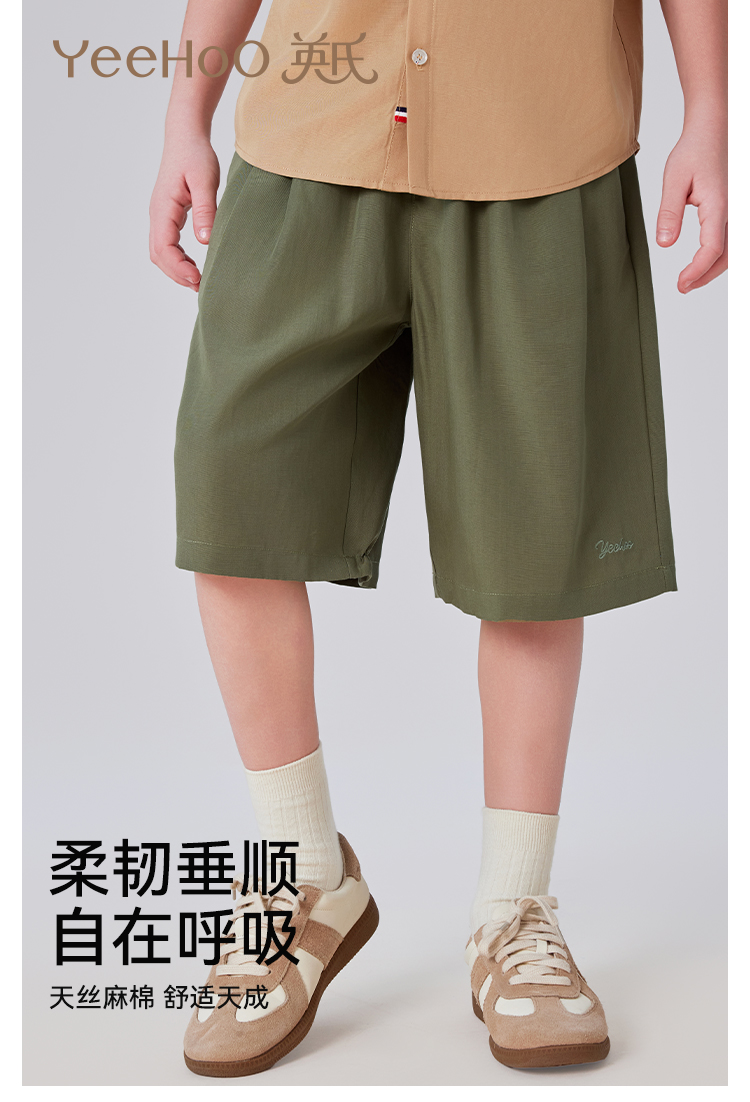 【英氏】【莱塞尔+亚麻】【110-175】男童短裤儿童薄款五分裤