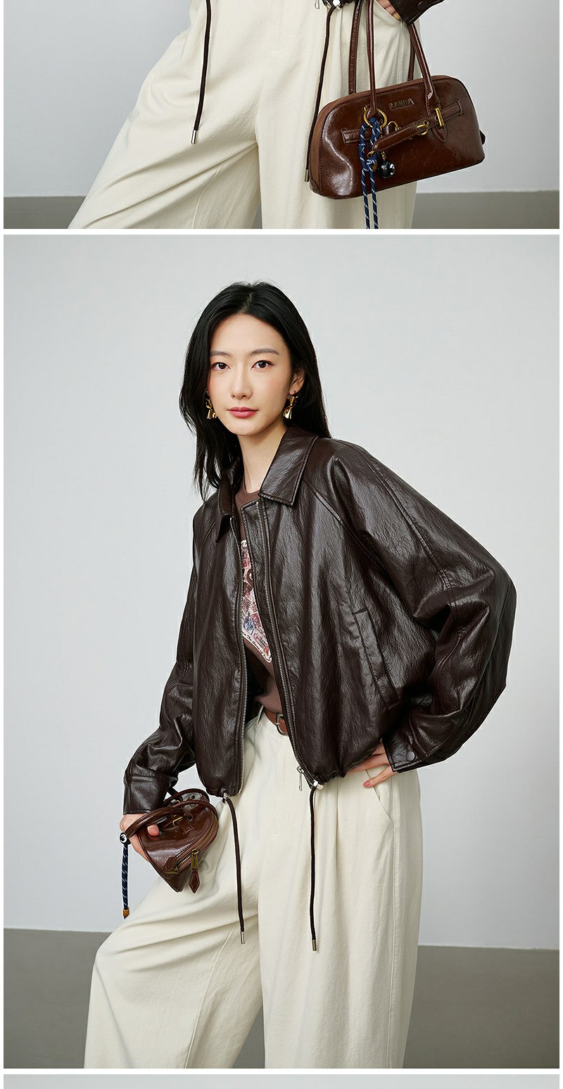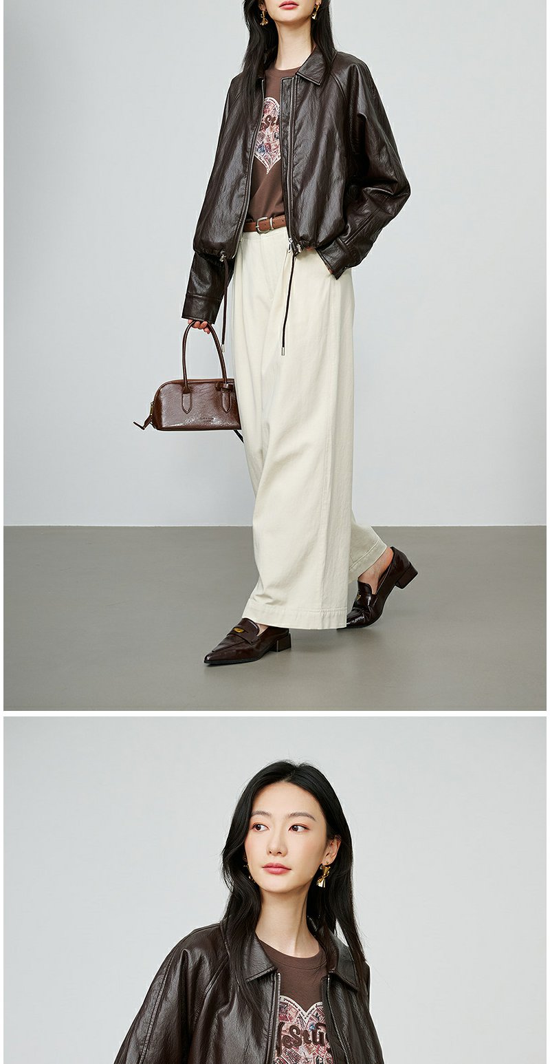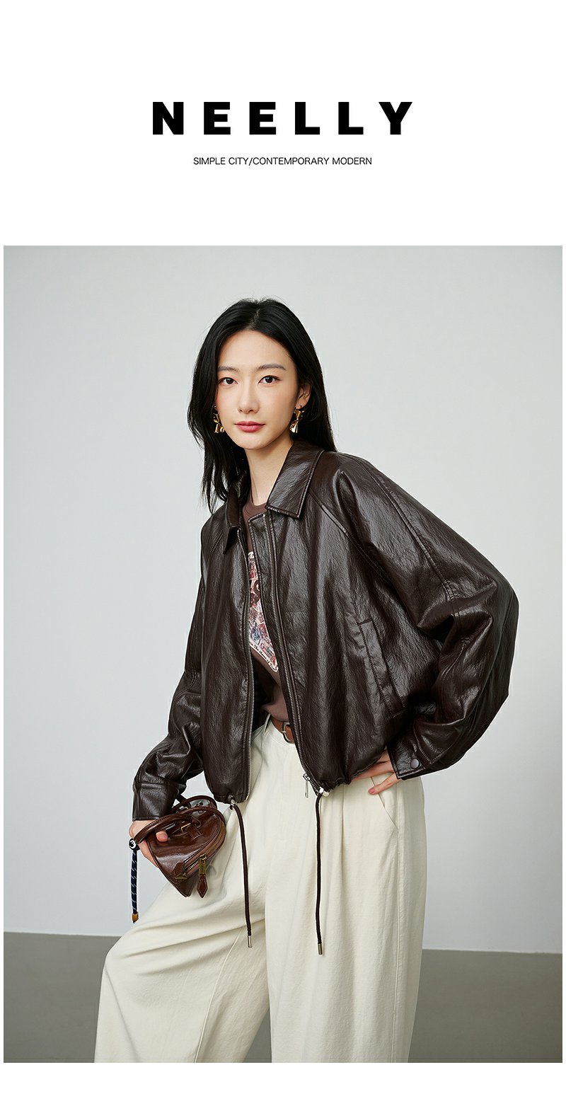 NEELLY纳俪商场同款秋季新款简约机车短款皮衣女休闲松弛短外套N25084C05506