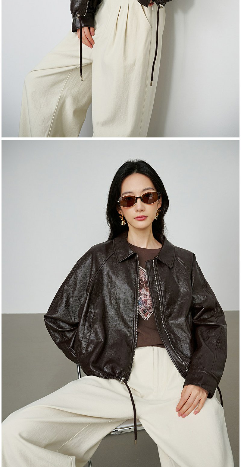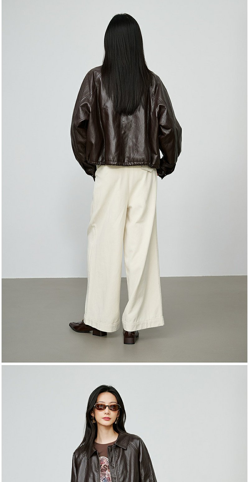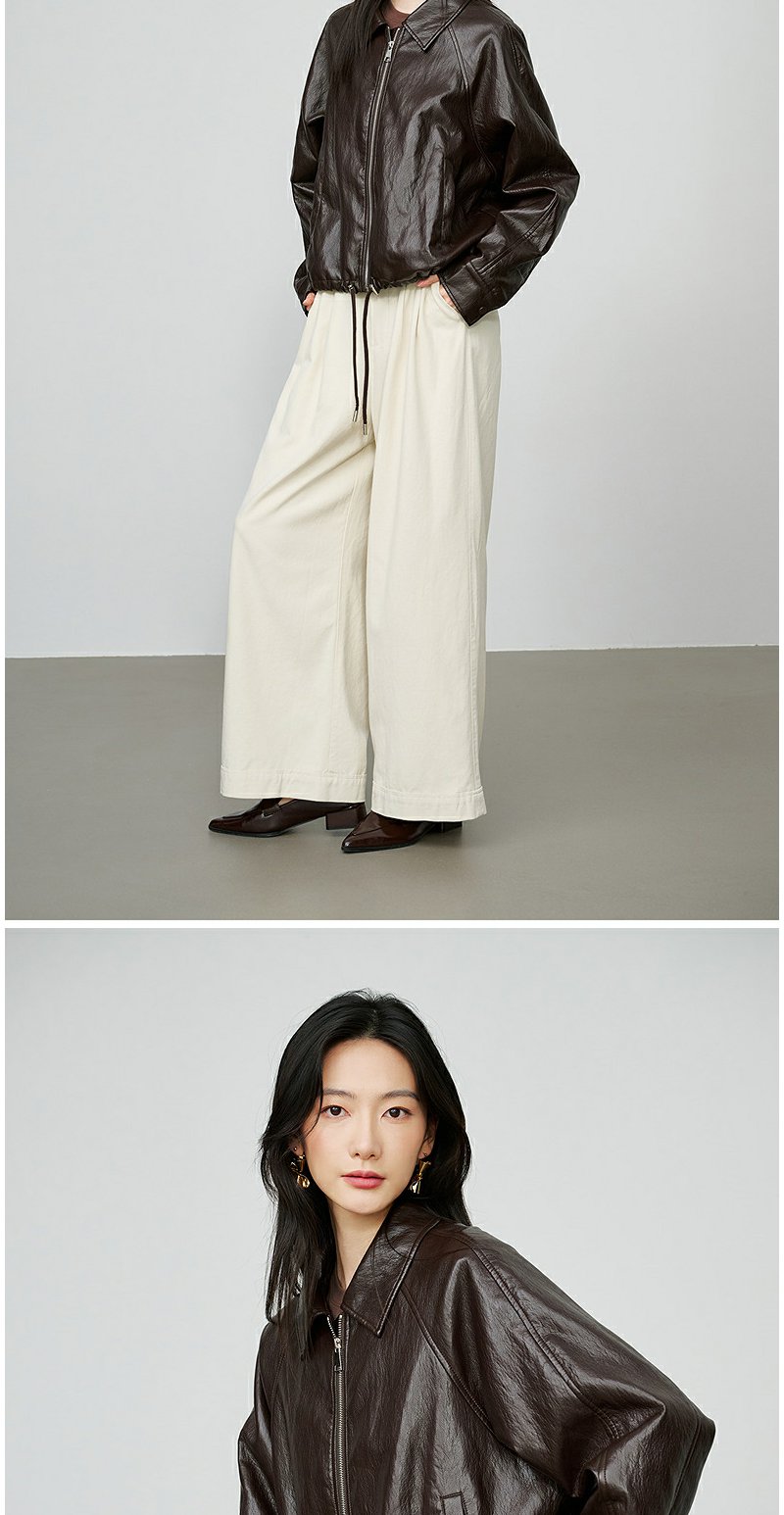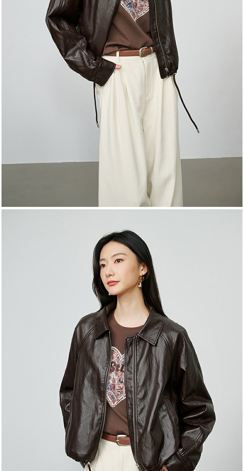 NEELLY纳俪商场同款秋季新款简约机车短款皮衣女休闲松弛短外套N25084C05506