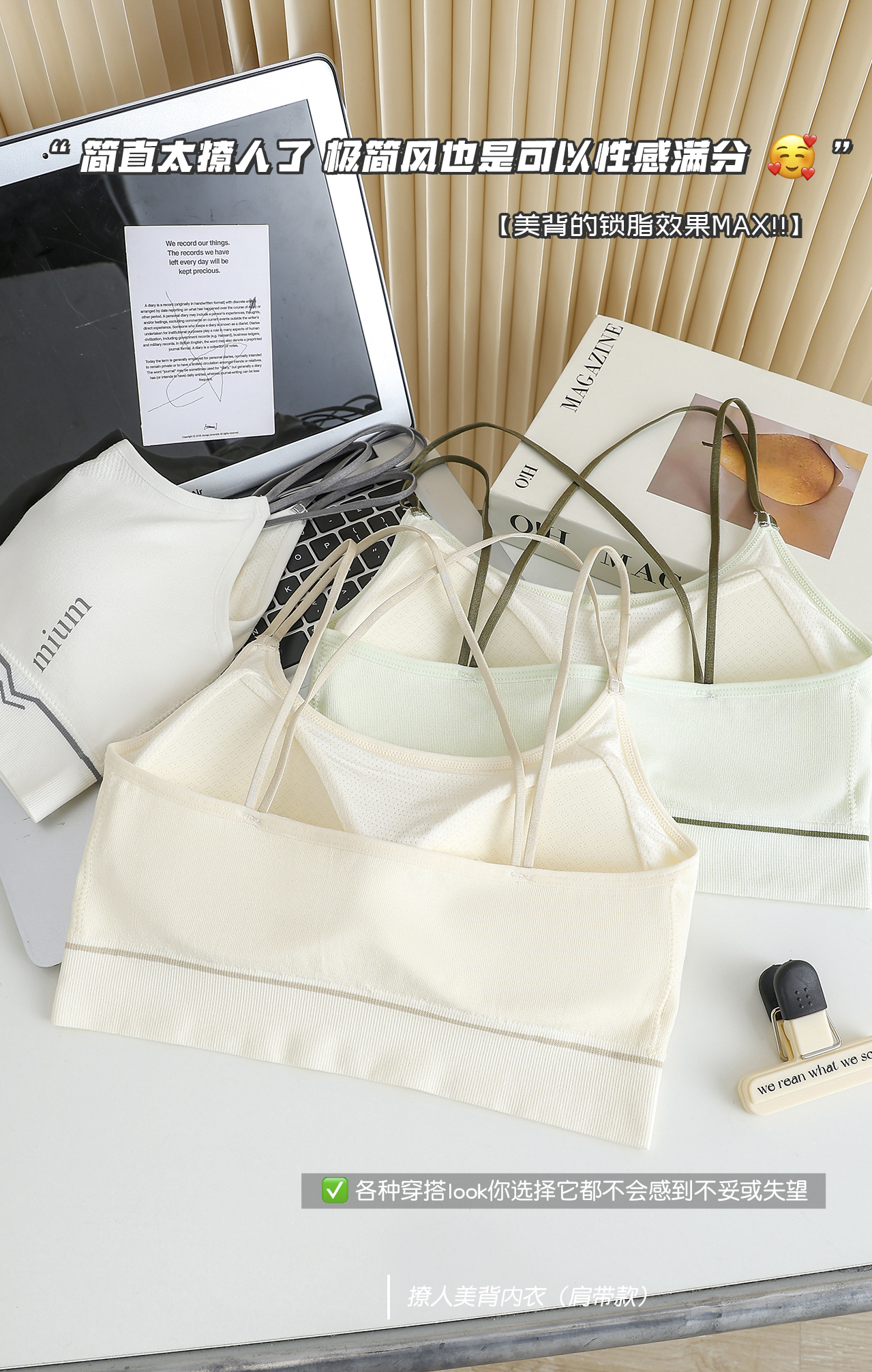 皇家丽美 薄款交叉性感抹胸内衣透气无钢圈运动背心式美背文胸BXM5153