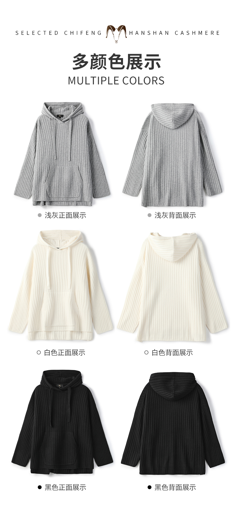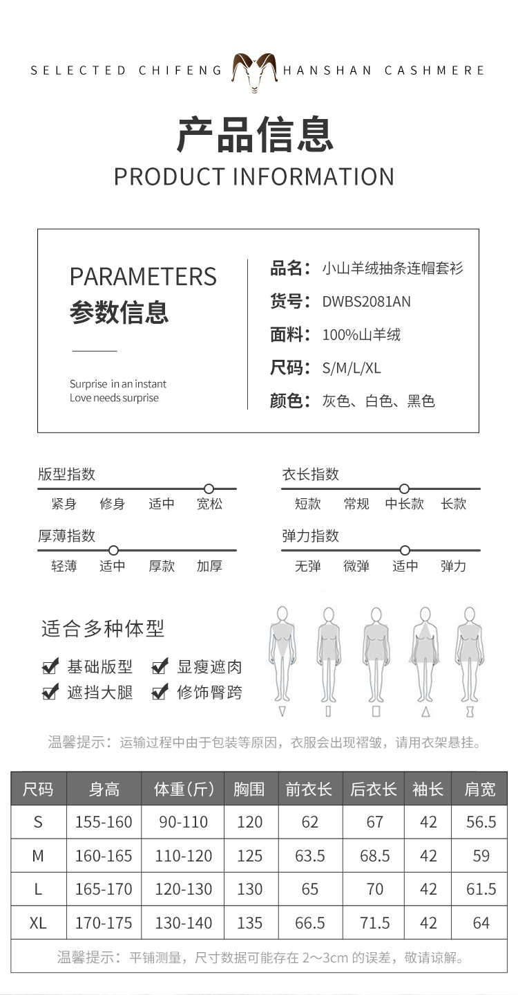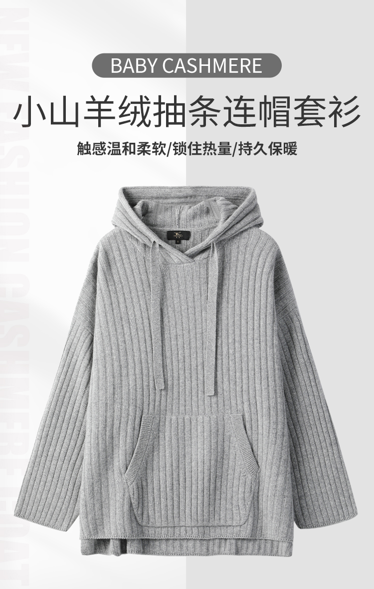东黎 • 小山羊绒女士秋季抽条慵懒连帽套衫 2081