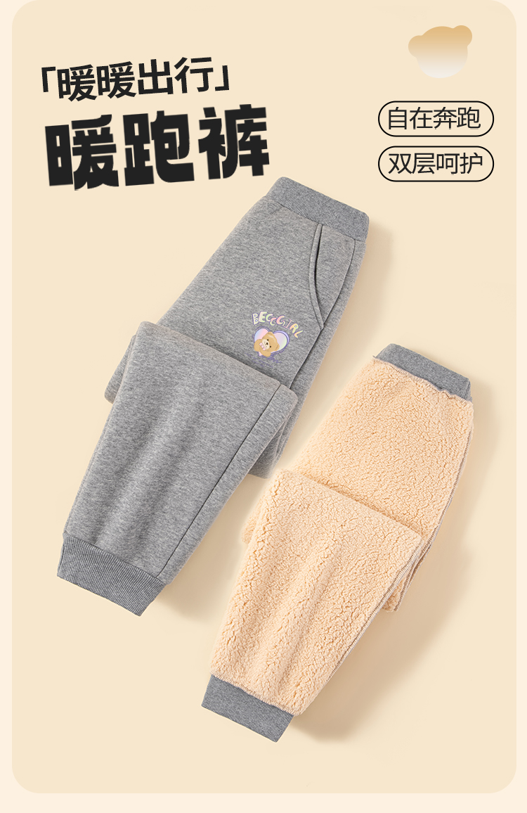 【清仓捡漏】【羊羔绒】【100 110 160】【精典泰迪】男童冬款加绒加厚保暖休闲卫裤