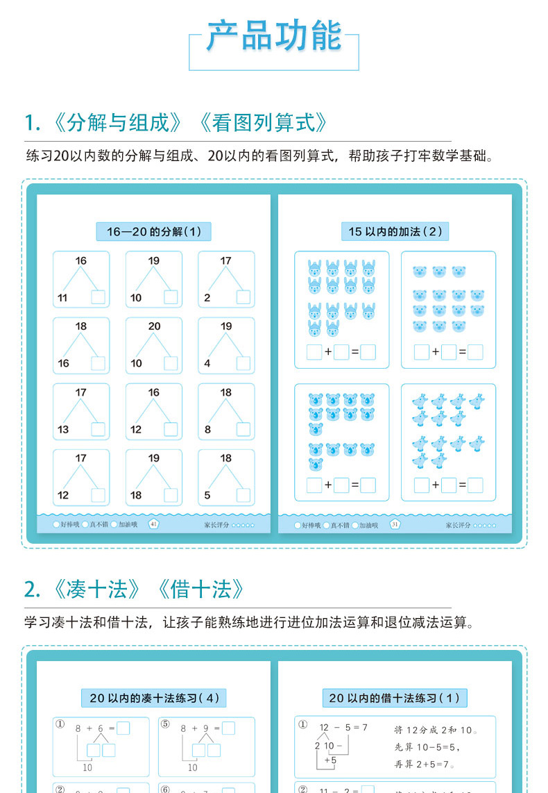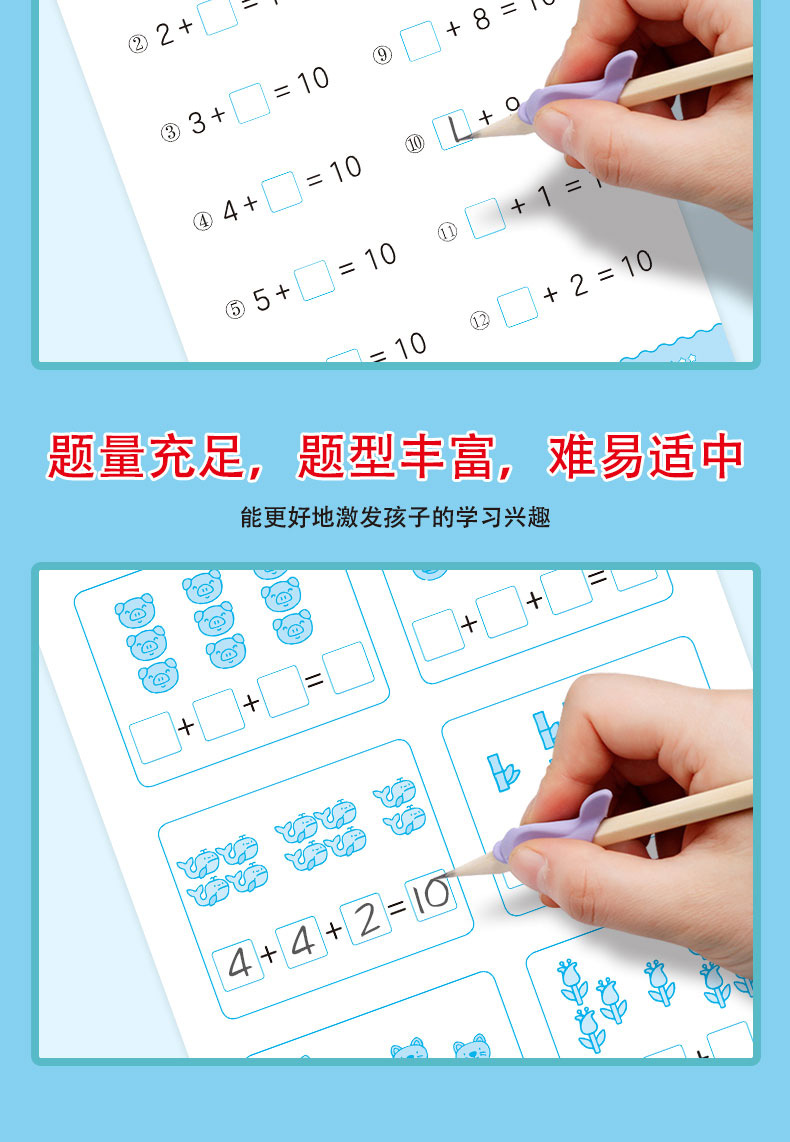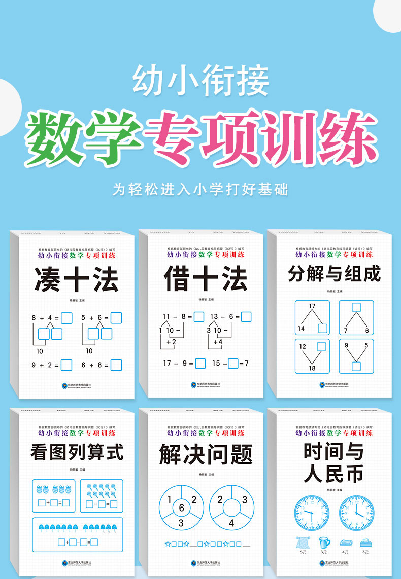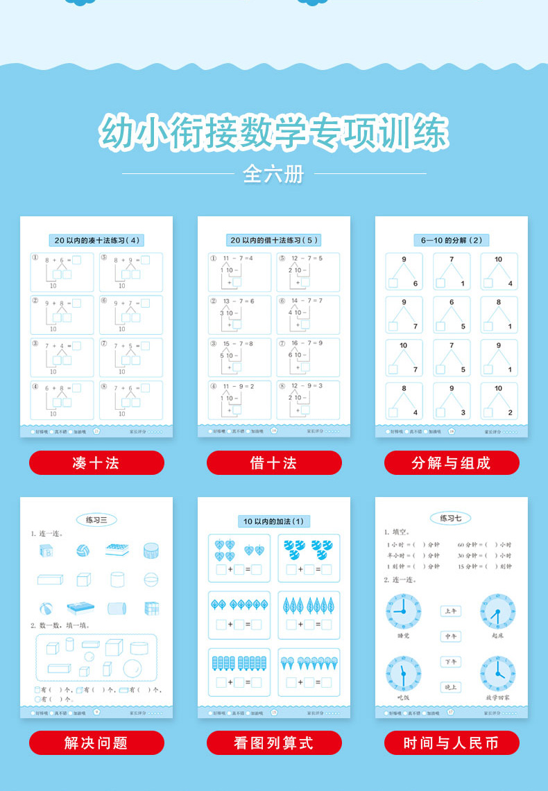 【优惠套装】幼小衔接数学专项练习6册 借十法凑十法数学综合练习题训练教材10以内数的分解与组成看图列算式幼儿园一年级思维训练