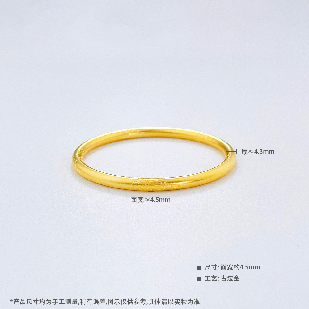 【限时克减150元】足金999.9 #超轻 古法空心固口超轻祥云纹手镯(面宽约4.3-4.7mm,厚约4.3mm)(ANWGFSZ00751)预售产品下单后不退款不退货不换货不补差价