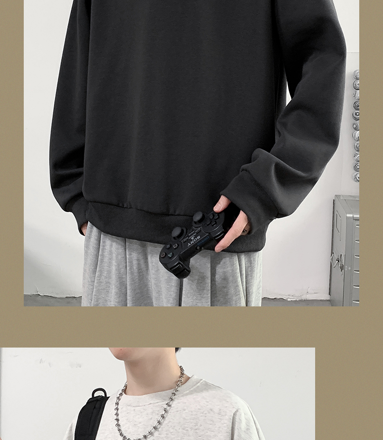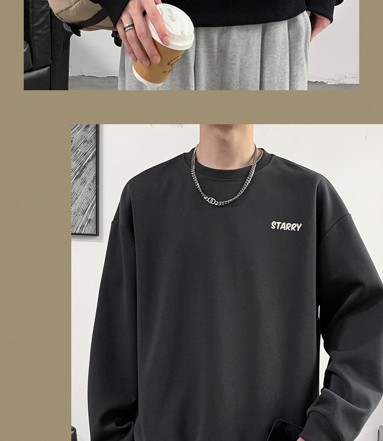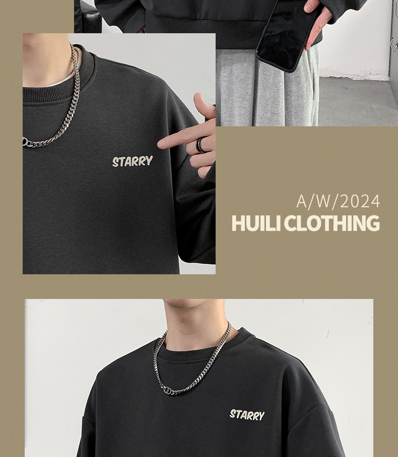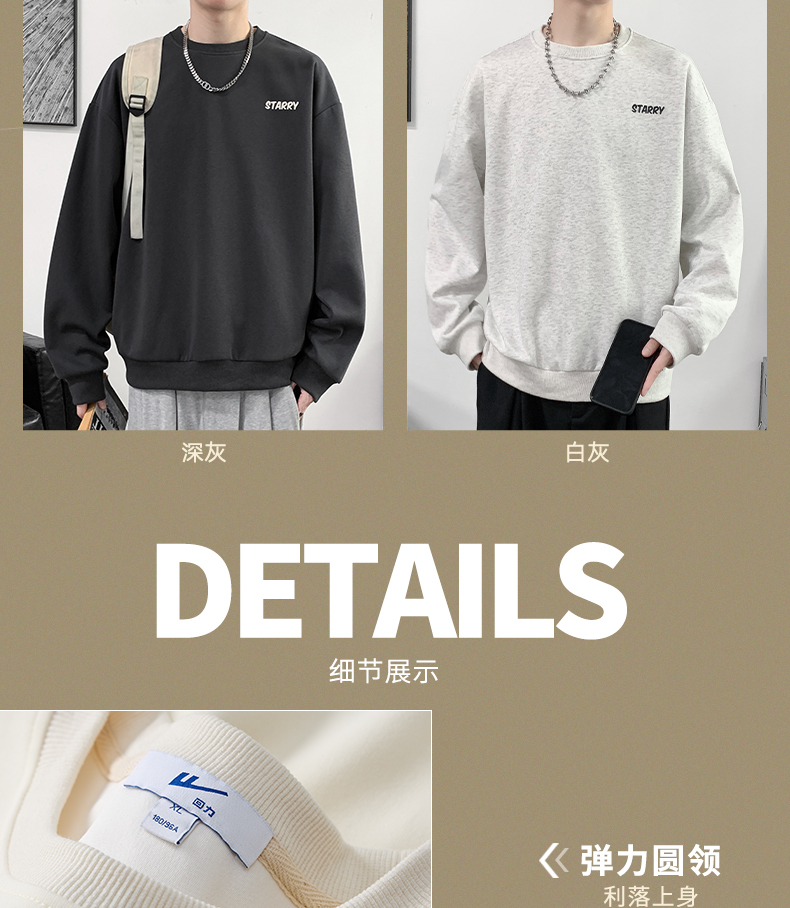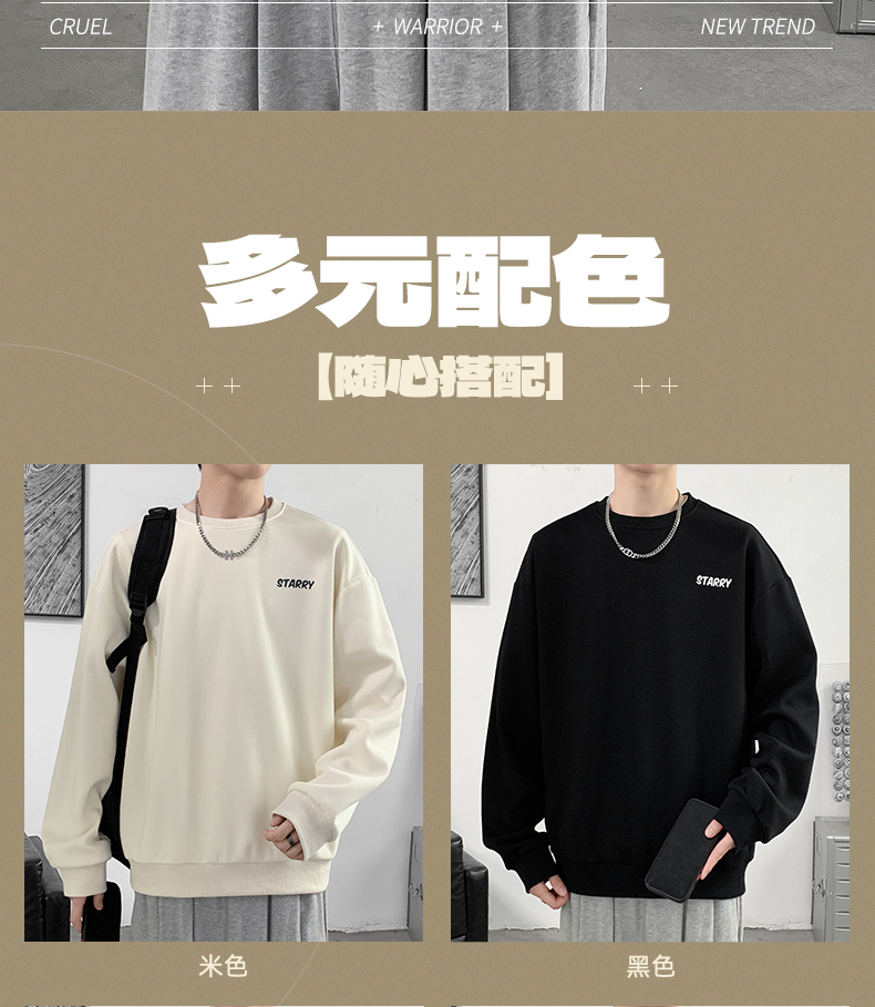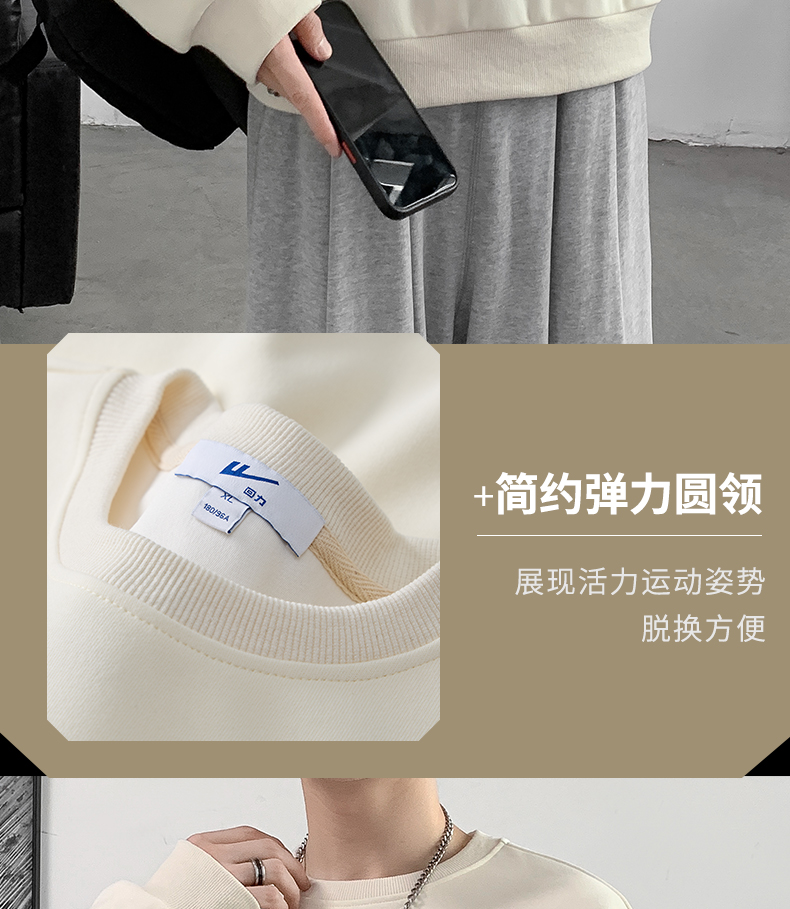 回力卫衣男2025春秋新款宽松圆领长袖T恤打底衫重磅休闲男士上衣
