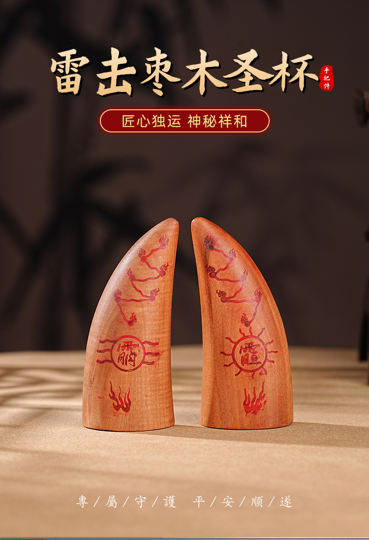 雷击木圣杯摆件手工圣卦天然枣木原木雕手把件一对
