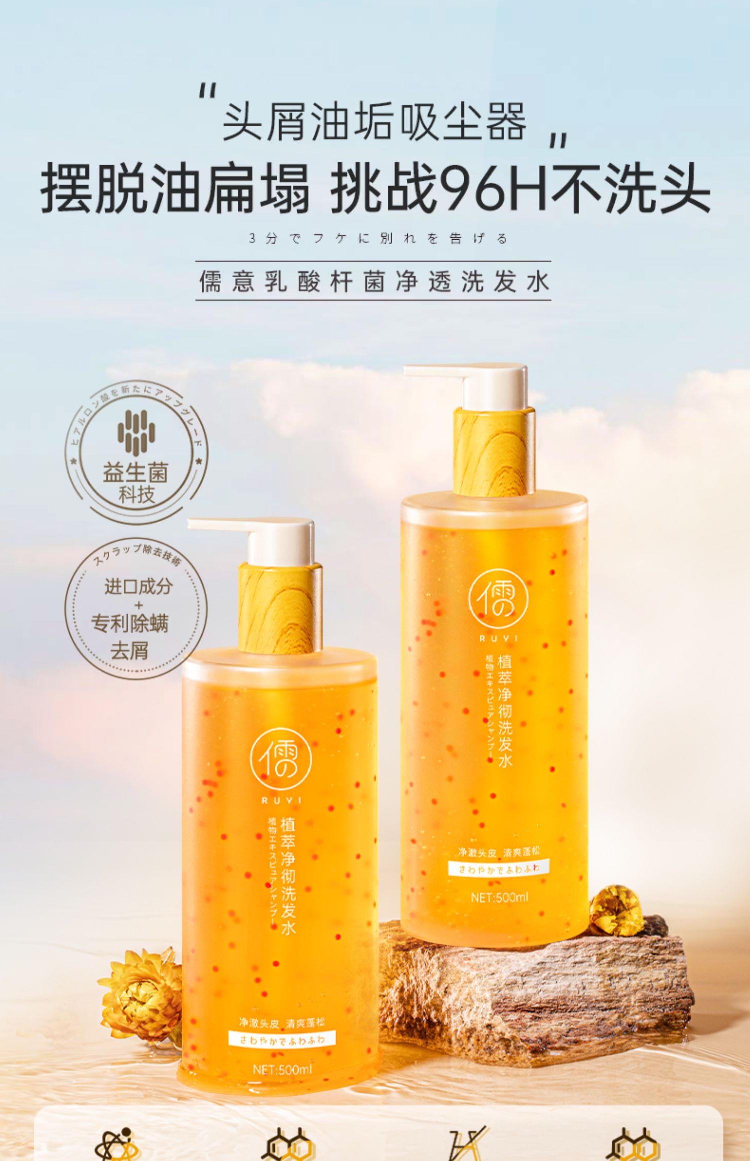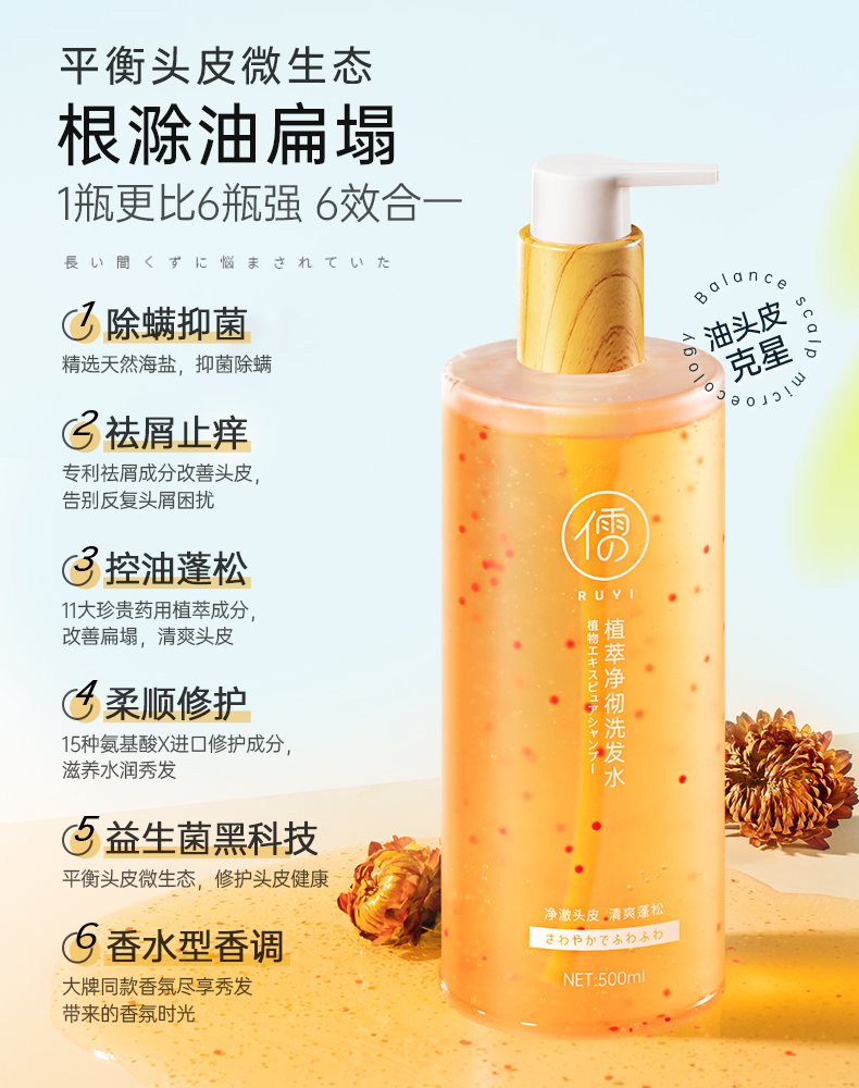 儒意植萃净彻洗发水500ml 控油蓬松 去屑止痒 益生菌洗头膏露男女 | 儒意官方商城