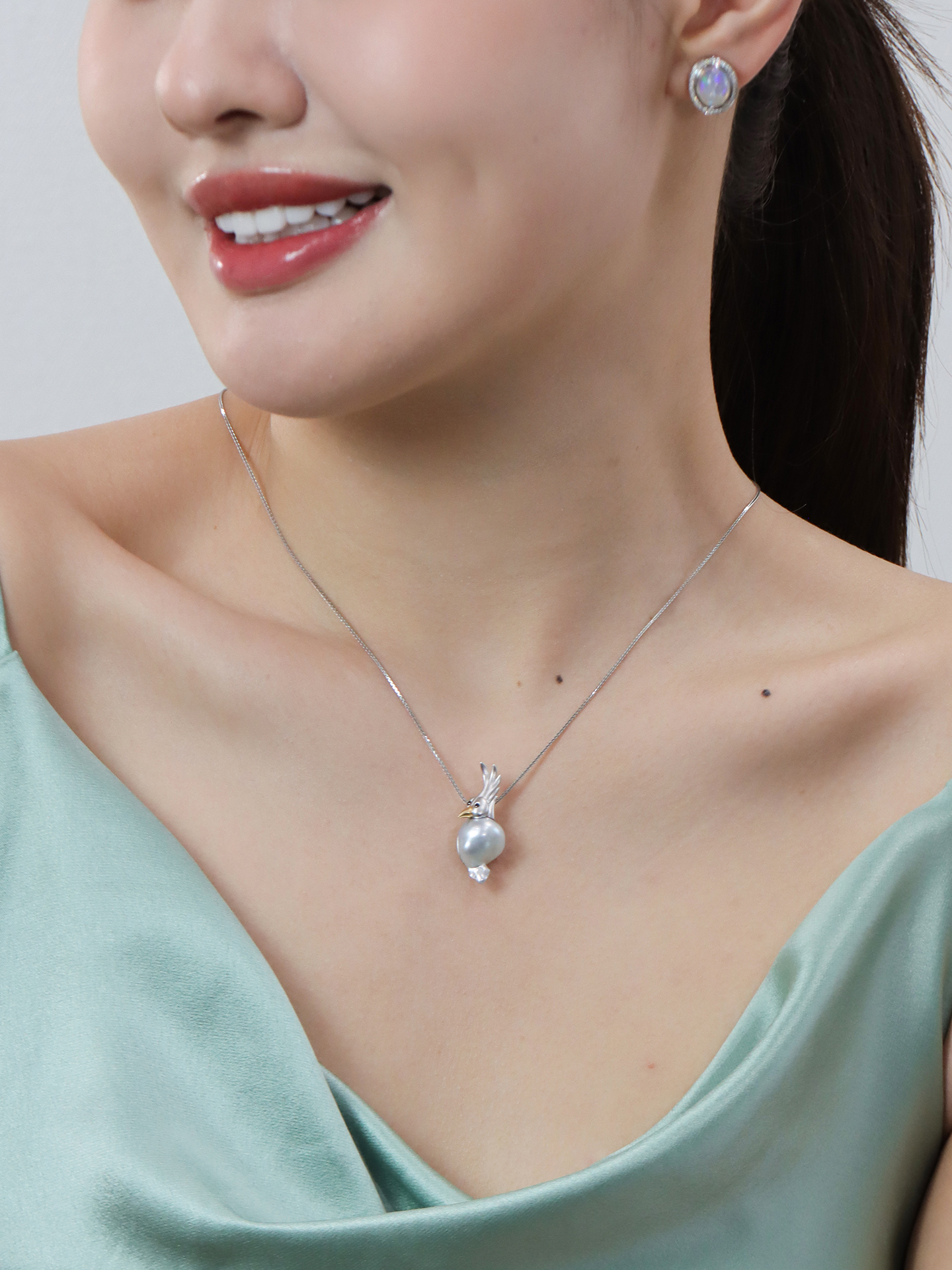 【日本溯源之旅】鹦鹉18k金澳白keshi珍珠钻石吊坠 吊坠尺寸约12.8*30mm 钻石分数:0.021ct(展会产品拍下后不支持7天无理由退换货)
