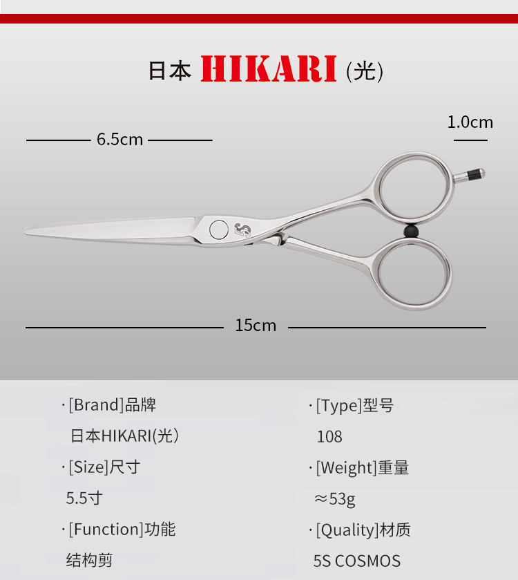 HIKARI光剪5S COSMOS 108 锋利/沙宣/直发/刘海/结构剪/平剪/5.5寸/A字剪