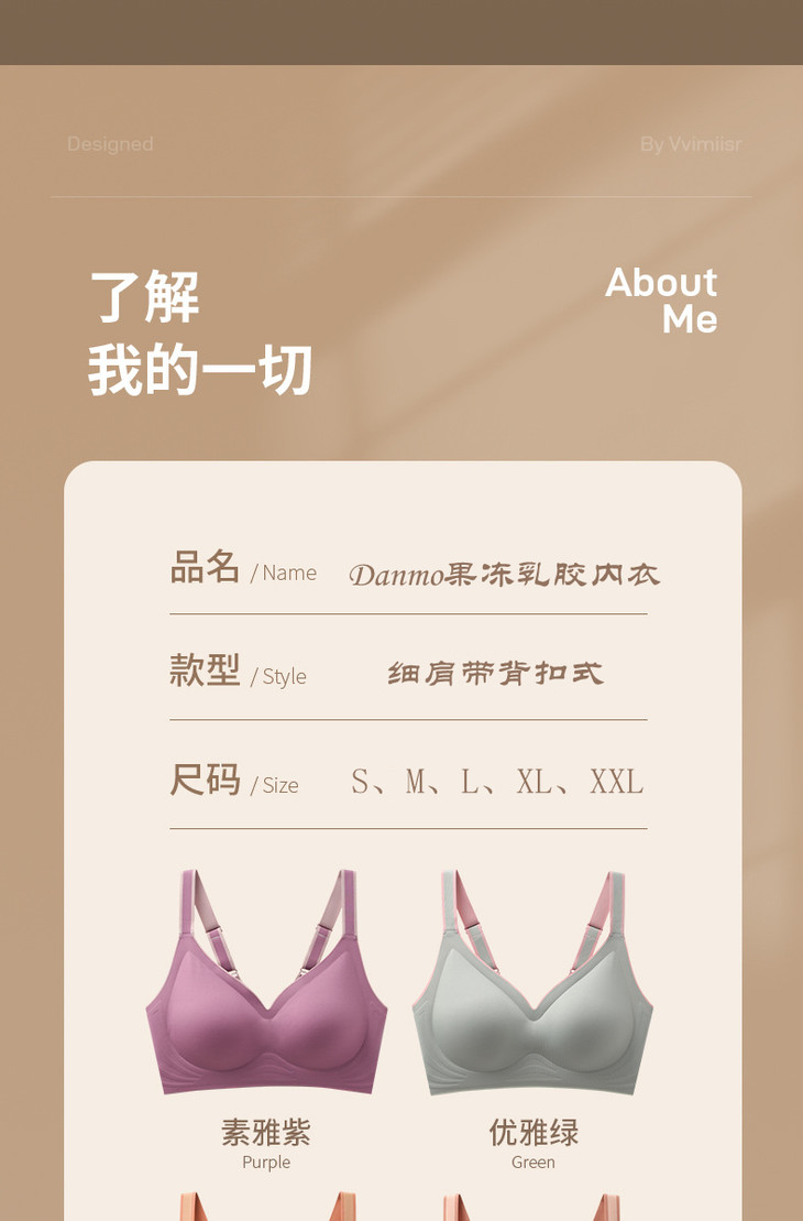 买1送1!Danmo乳胶果冻条 芭比文胸 乳胶水滴杯 软支撑技术 聚拢提拉 收副乳 防下垂 吸湿透气 亲肤无痕 文胸内衣超值两件装