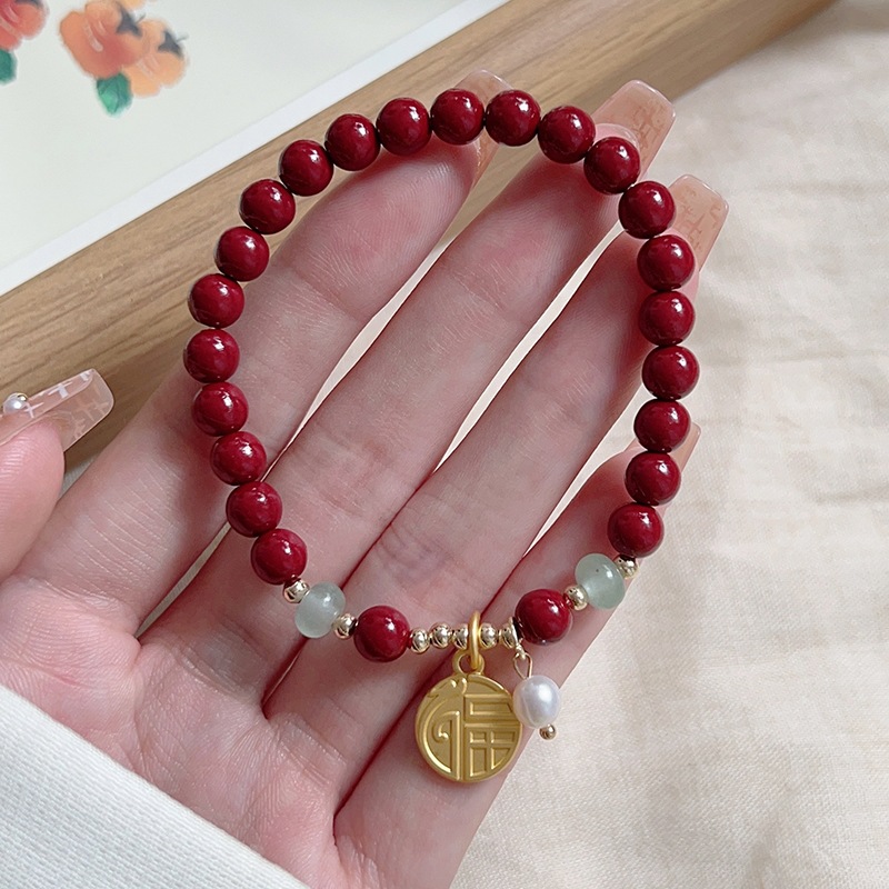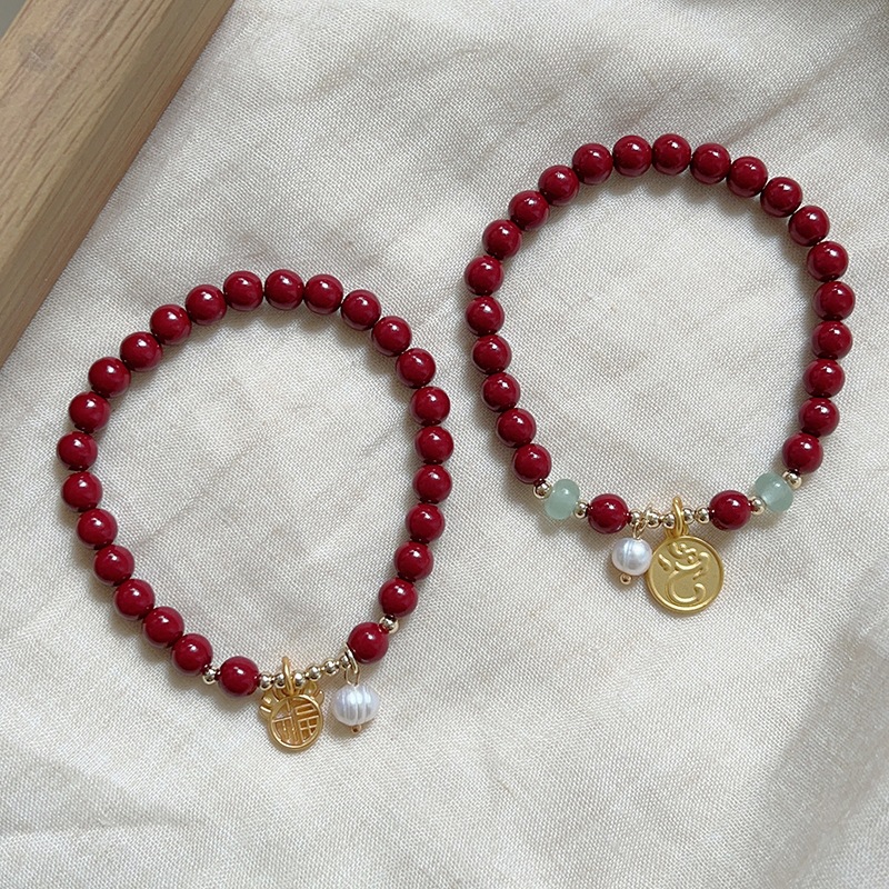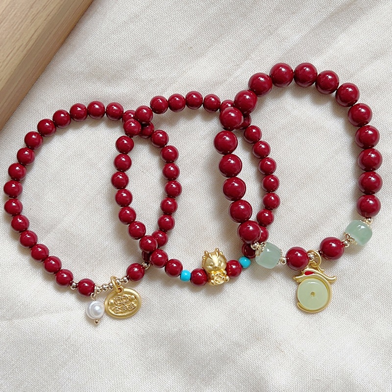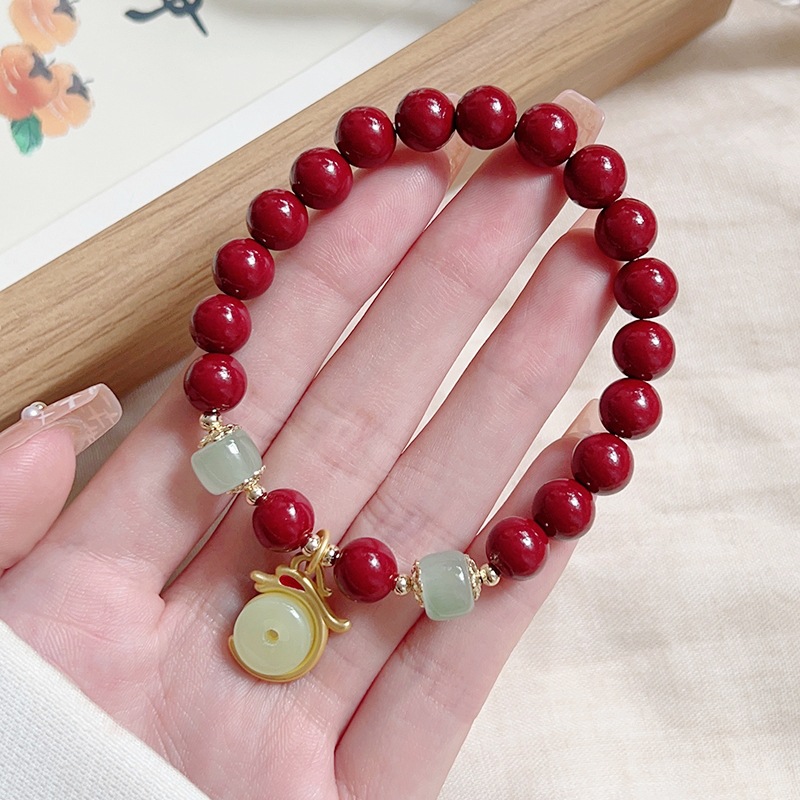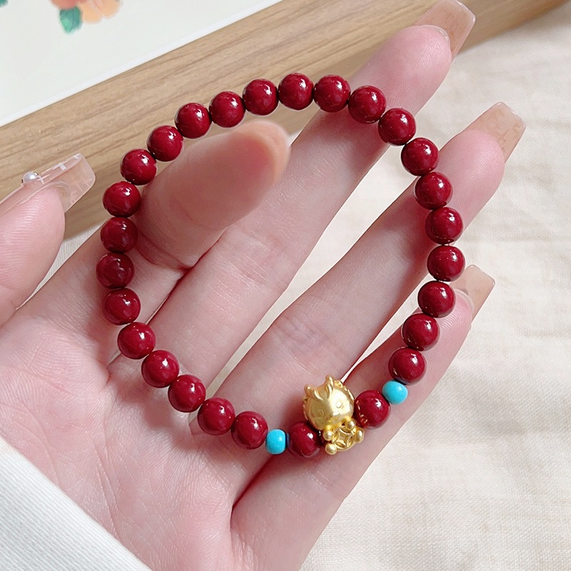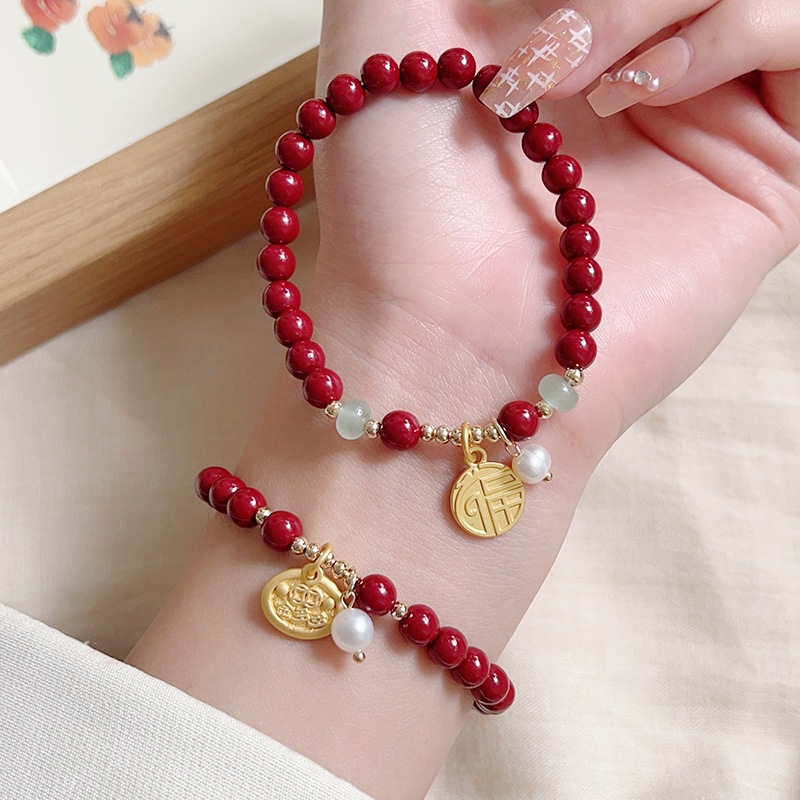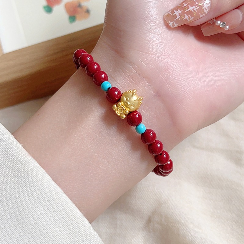 龙年大吉【龙年本命年 朱砂手链女】福牌铜钱 龙串珠手串 红色手链