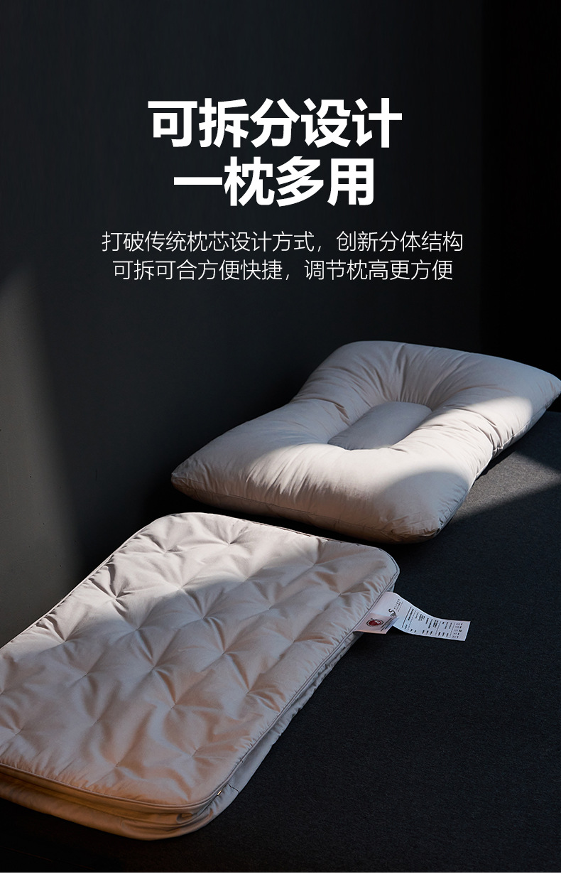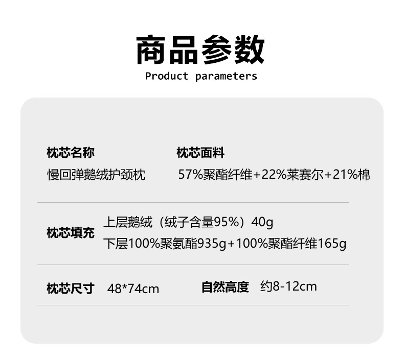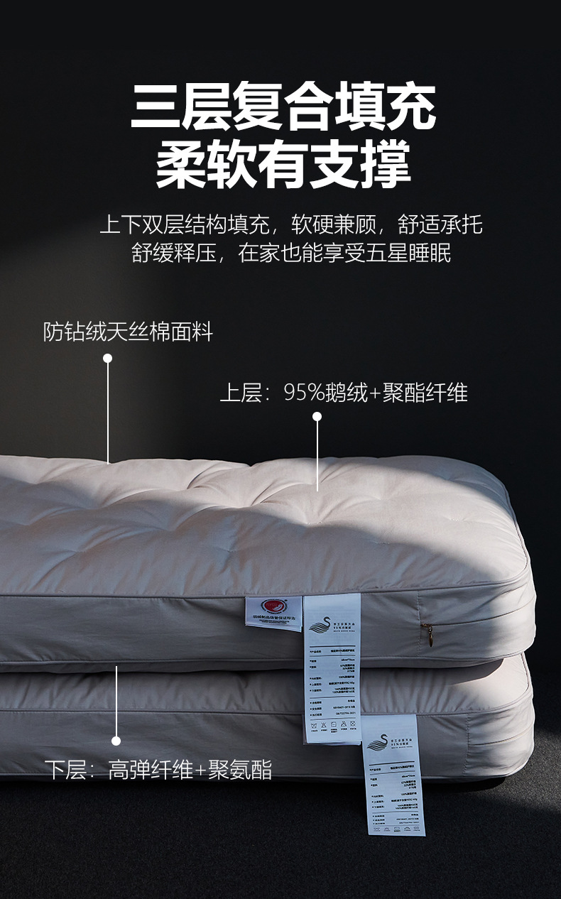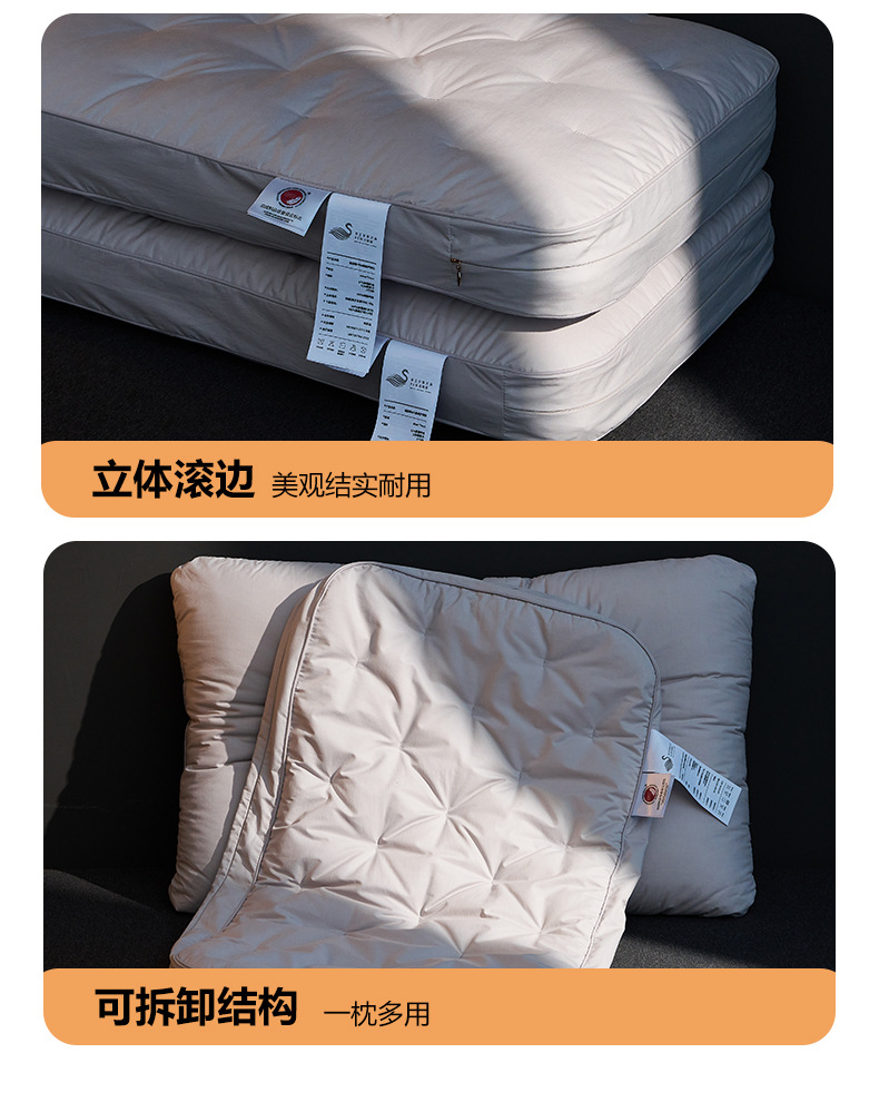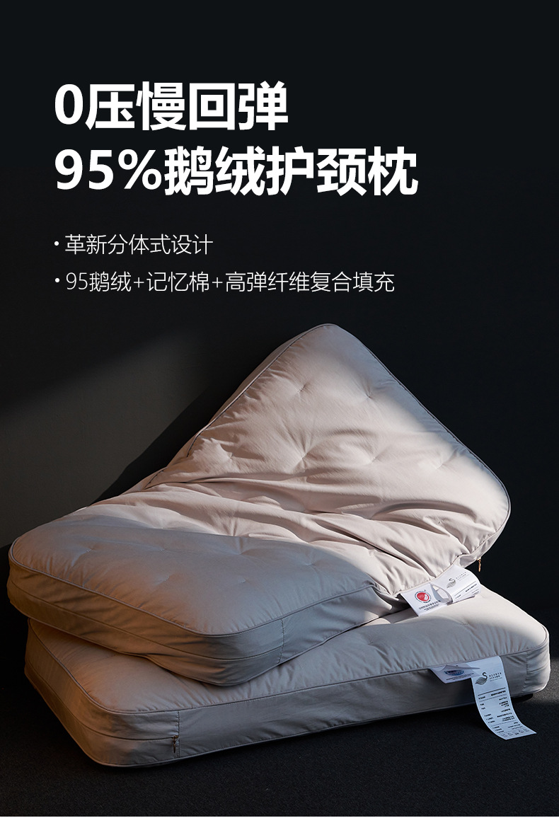 【可调节95白鹅绒H枕】95白鹅绒枕芯民宿酒店枕头慢回弹羽绒枕成人H护颈枕