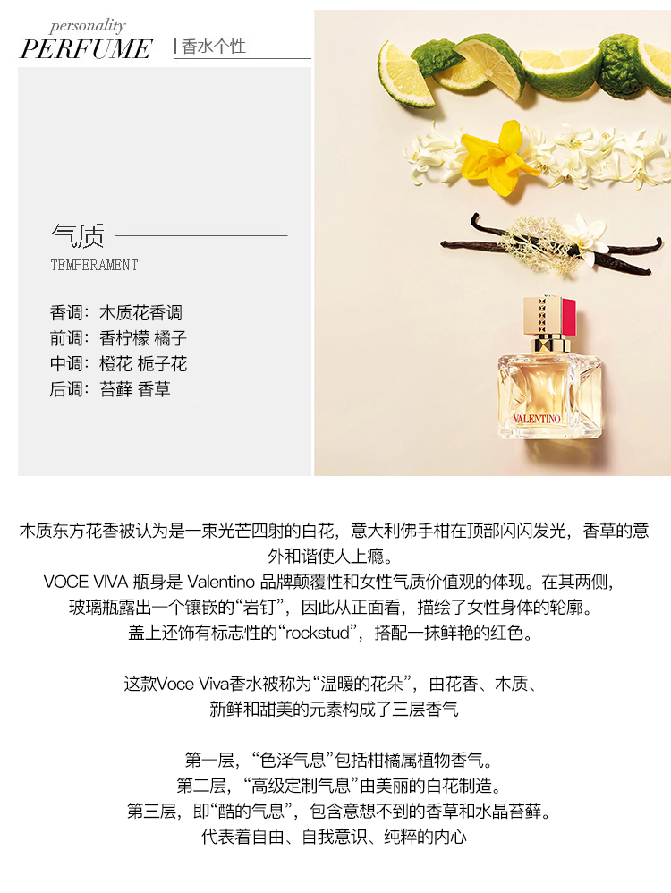 【品牌授权】【现货速发】Valentino华伦天奴Voce Viva女士香水30-50-100mlEDP 浓香水 木质花香调